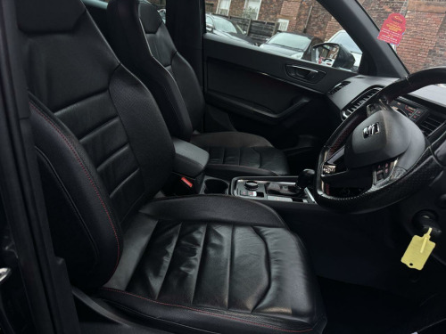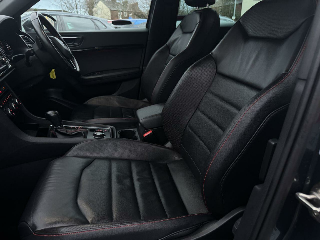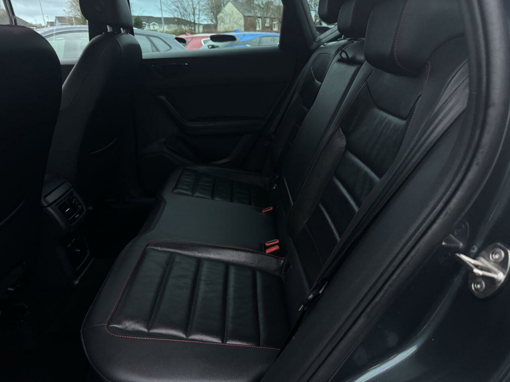 . 12V Socket in Front, 19in Alloy Wheels - Exclusive Machined with Decorative Inserts, Active Front Head Restraints, Advanced Multi Colour Interior Ambient Lighting and LED Interior Illumination, Alarm - Perimeter and Interior Monitoring, Anti-Lock Braking System - ABS, Armrest with Air Outlet in Rear, Comfort Suspension, Convenience Pack, Cruise Control, Dark Tinted Rear Windows, Digital Clock, Digital Cockpit, Door Mirrors with Welcome Light Silhouette, Driver and Front Passenger Airbags, Driver and Passenger Seat with Lumbar Adjustment, Driver and Passenger Sun Visor with Covered and Illuminated Mirror - Driver Sun Visor with Card Holder, Drivers Knee Airbag, Dual Zone Climate Control, Electric Drivers Seat, Electric Parking Brake Including Autohold Function, Electrically Adjustable Folding and Heated Door Mirrors, Electronic Differential Lock System - XDS, Electronic Stability Control - ESC, Frameless Interior Mirror, Front and Rear Electric Windows, Front and Rear Seatbelt Reminder, Front Armrest - Adjustable with Storage Compartment, Front Assist - City Emergency Braking and Pedestrian Protection, Front Grille Frame - Chrome, Front LED Fog Lights with Cornering Function, Front Passenger Airbag De-Activation, Front Seat Back Storage Pockets, Front Side Airbags, Full LED Headlights, Full Link Smartphone Integration, Gear Recommendation Indicator, Height Adjustable Front Headrests, Height Adjustable Passenger Seat, Height-Adjustable Drivers Seat, High Gloss Black Grille, Hill Hold Control, Illuminated Aluminium Front Door Sill with Trim Logo, Instrument Lighting with Brightness Control, Interior Chrome Detailing, Interior Lighting, ISOFIX Points in Outer Rear Seats with Top Tether Anchorage Points, Leather Gear Knob, Leather Steering Wheel, Lights Left On Warning Buzzer, Locking Wheel Bolts, Low Fuel Warning Light, Navigation System, Outside Temperature Gauge, Park Assist, Pedals in Aluminium, Rack Electric Power Steering - R-EPS, Rear Armrest and Easy Back Seat Release Mechanism From Boot, Rear Fog Light, Rear Spoiler, Roof Rails - Chrome, RPM Counter, SEAT Drive Profile with Driving Experience Button, Split Folding Rear Seats - 60-40, Steering Wheel-Mounted Gearshift Paddles, Storage Box Under Drivers Seat, Sunglasses Storage Compartment in Roof Console, Tiredness Recognition System, Traction Control System - ASR, Trip Computer, Two Curtain Airbags, Tyre Pressure Monitoring System, Visible Twin Exhaust Pipes, Wheel Arch Surrounds - Body Colour, Window Surrounds - Chrome, Winter Pack.