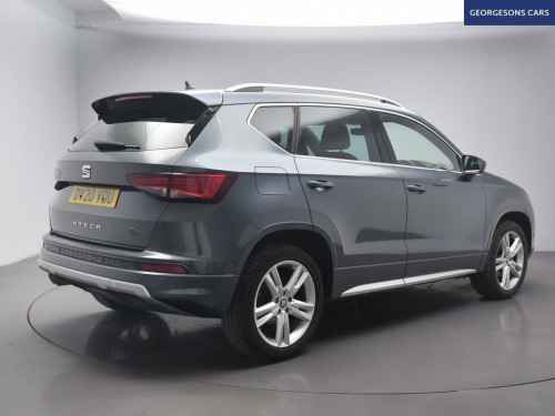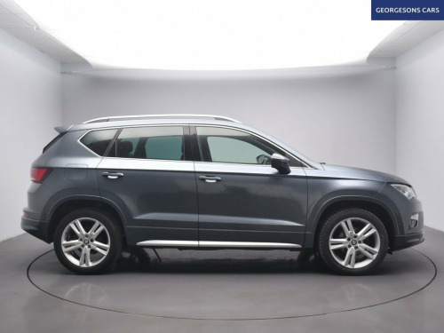 Discover the dynamic SEAT Ateca 1.5 TSI EVO FR SUV 5dr Petrol DSG, a sporty and versatile compact SUV. Powered by a responsive 1.5-litre TSI petrol engine with 150hp, this front-wheel-drive model paired with a smooth 7-speed DSG automatic transmission accelerates from 0-62mph in just 8.5 seconds while delivering up to 47.1mpg for efficient performance on city streets or open roads. The FR trim brings bold styling with 18-inch alloy wheels, LED headlights, and a sporty chassis for an engaging ride. With only one owner and three services, this Ateca is in excellent condition, ready for its next adventure. Stay connected effortlessly with Apple CarPlay, Bluetooth, and DAB radio, while parking sensors and park assist make maneuvering a breeze. Dual-zone climate control keeps everyone comfortable, paddle shift gears offer precise control, and cruise control with speed limiter ensures relaxed highway journeys. Selectable drive modes let you switch between efficiency and sporty dynamics, complemented by start-stop technology for optimal fuel savings. The spacious 510-litre boot and practical five-door design make it ideal for families or weekend escapes. 12V Socket in Front, 18in Alloy Wheels - Performance, 3.5in Drivers Display, Active Front Head Restraints, Advanced Multi Colour Interior Ambient L, Alarm - Perimeter and Interior Monitorin, Anti-Lock Braking System - ABS, Armrest with Air Outlet in Rear, Comfort Suspension, Convenience Pack, Cruise Control, Dark Tinted Rear Windows, Digital Clock, Door Mirrors with Welcome Light Silhouet, Driver and Front Passenger Airbags, Driver and Passenger Seat with Lumbar Ad, Driver and Passenger Sun Visor with Cove, Drivers Knee Airbag, Dual Zone Climate Control, Electric Parking Brake Including Autohol, Electrically Adjustable Folding and Heat, Electronic Differential Lock System - XD, Electronic St