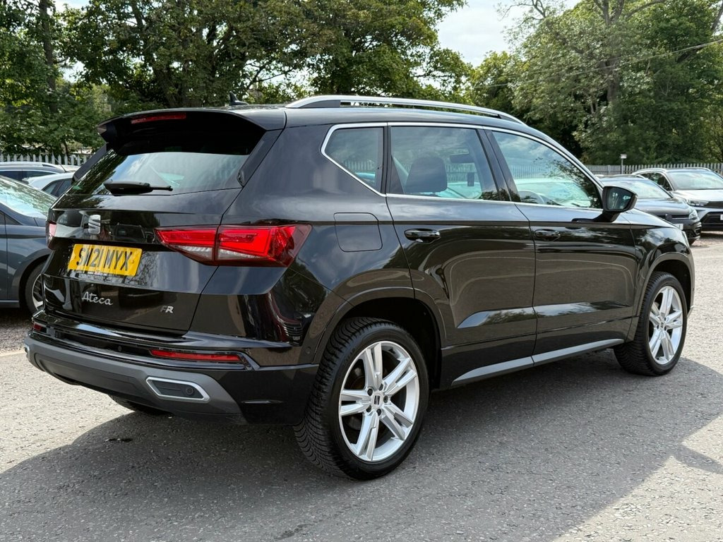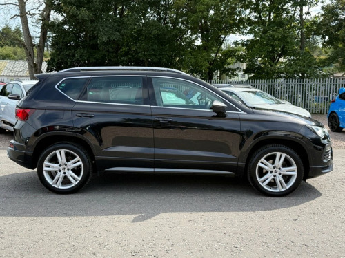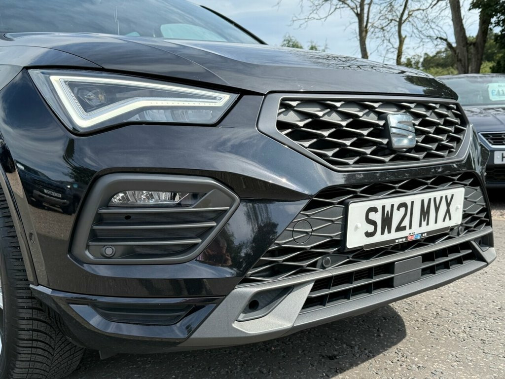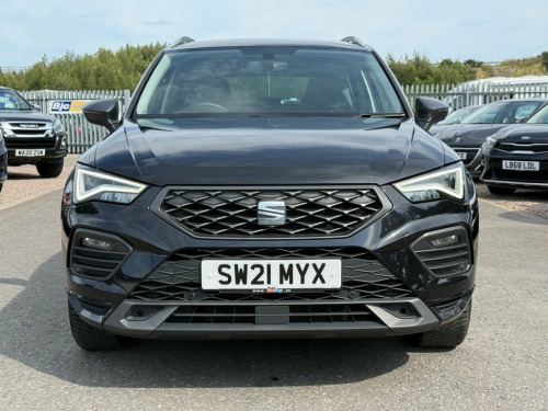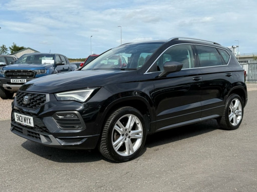 The 2021 SEAT Ateca 1.5 TSI EVO FR is a sporty and practical mid-size SUV, combining sharp styling with engaging driving dynamics and everyday usability. Powered by a 1.5-litre TSI EVO petrol engine producing 150 bhp, it's paired with a manual gearbox, delivering lively performance while achieving around 45–48 mpg combined thanks to cylinder deactivation technology for improved efficiency. The FR trim adds a sport-inspired edge, with sporty body styling, 18-inch alloys, FR sports seats, ambient interior lighting, a digital cockpit, and SEAT's advanced infotainment system with Apple CarPlay/Android Auto. It also includes driver-assistance features such as cruise control, lane-keeping assist, and parking sensors. As a 5-door SUV, the Ateca offers excellent interior space, comfortable seating for the family, and a versatile boot, making it equally suited for city driving and long journeys. Rivals include the Skoda Karoq, Volkswagen T-Roc, Kia Sportage, and Hyundai Tucson, but the Ateca FR stands out for its sporty handling, strong efficiency, and stylish design. Microsuede Sports Seats - Black, Black Magic, 12V Socket in Front, 18in Alloy Wheels - Brilliant Silver, Advanced Multi Colour Interior Ambient L, Alarm - Perimeter and Interior Monitorin, Anti-Lock Braking System - ABS, Convenience Pack, Cruise Control, Dark Tinted Rear Windows, Daytime Running Lights, Door Mirrors with Welcome Light Silhouet, Driver and Front Passenger Airbags, Driver and Passenger Seat with Lumbar Ad, Drivers Knee Airbag, Dual Zone Climate Control, Dynamic Headlight Range Control with Sel, Electric Parking Brake Including Autohol, Electrically Adjustable Folding and Heat, Electronic Differential Lock System - XD, Electronic Stability Control - ESC, Front Assist - City Eme