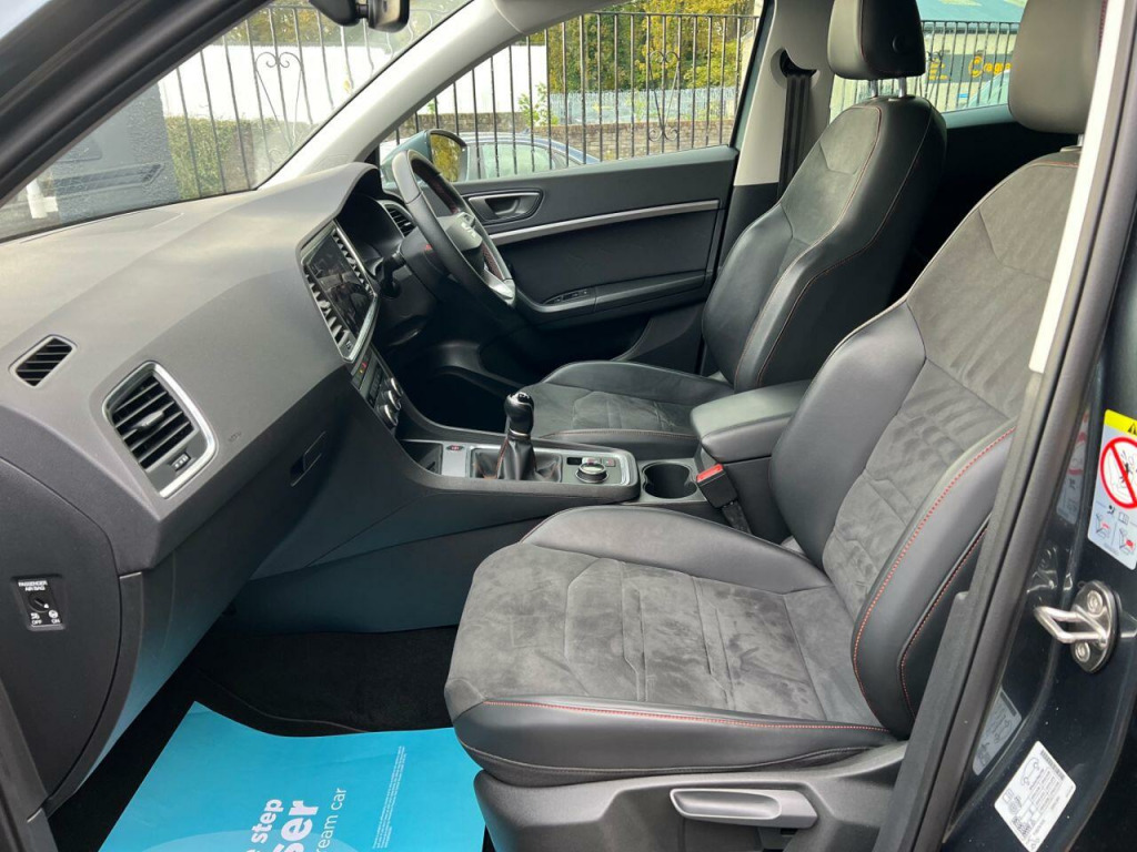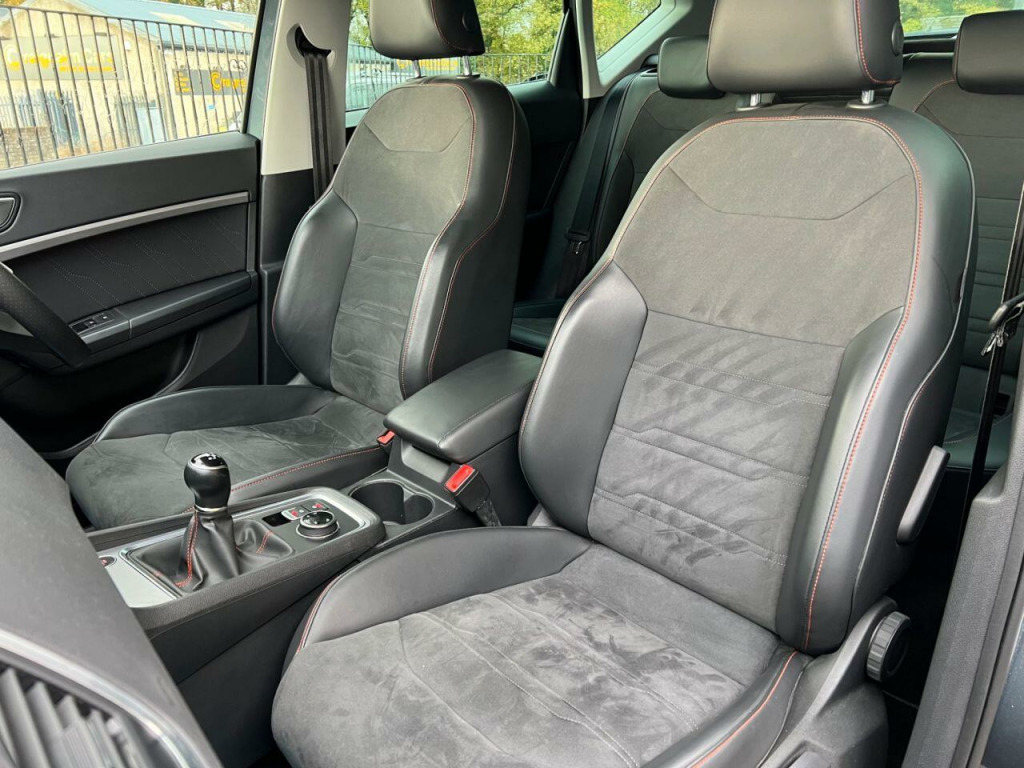 . 12V Socket in Front, 18in Alloy Wheels - Brilliant Silver, Advanced Multi Colour Interior Ambient Lighting and LED Interior Illumination, Alarm - Perimeter and Interior Monitoring, Anti-Lock Braking System - ABS, Convenience Pack, Cruise Control, Dark Tinted Rear Windows, Daytime Running Lights, Door Mirrors with Welcome Light Silhouette, Driver and Front Passenger Airbags, Driver and Passenger Seat with Lumbar Adjustment, Drivers Knee Airbag, Dual Zone Climate Control, Dynamic Headlight Range Control with Self-Adjusting whilst Driving, Electric Parking Brake Including Autohold Function, Electrically Adjustable Folding and Heated Door Mirrors, Electronic Differential Lock System - XDS, Electronic Stability Control - ESC, Front Assist - City Emergency Braking and Pedestrian Protection, Front Centre Armrest, Front Grille Frame in Cosmo Grey, Front LED Fog Lights with Cornering Function, Front Passenger Airbag De-Activation, Front Seat Back Storage Pockets, Front Side Airbags, Front and Rear Electric Windows, Front and Rear Seatbelt Reminder, Full LED Headlights, Full Link Smartphone Integration, Height Adjustable Passenger Seat, Height-Adjustable Drivers Seat, Hill Hold Control, ISOFIX Points in Outer Rear Seats with Top Tether Anchorage Points, Illuminated Aluminium Front Door Sill with Trim Logo, Interior Chrome Detailing, Interior Lighting, KESSY - Keyless Entry and Go, LED Taillights with Dynamic Indicators, Leather Gear Knob, Leather Steering Wheel, Locking Wheel Bolts, Navigation System, Park Assist, Pedals in Aluminium, Power Steering, Rear Fog Light, Rear Spoiler, Roof Rails - Chrome, SEAT Connect - Safety - Service - Remote - Online, SEAT Drive Profile with Driving Experience Button, Simulated Exhaust Pipes, Split Folding Rear Seats - 60-40, Storage Box Under Drivers Seat, Sunglasses Storage Compartment in Roof Console, Tiredness Recognition System, Traction Control System - ASR, Two Curtain Airbags, Tyre Pressure Monitoring System, Wheel Arch Surrounds - Body Colour, Window Surrounds - Chrome, Wireless Phone Charger.