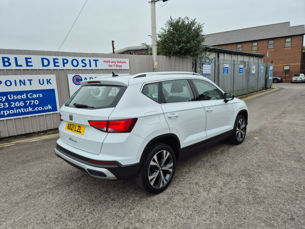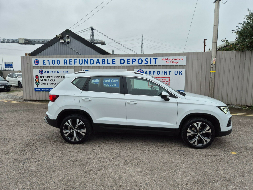 With a full service history and its last oil service completed in October 2025,serviced at 9245/30591/43021/51025 miles - this 2021 SEAT Ateca TSI EVO SE Technology offers excellent provenance. This Euro 6 compliant 1.5 litre petrol model, registered in 2021, has had only one owner and boasts an MOT valid until October 2026. Inside, you'll find a host of convenient features including Dual Zone Climate Control for personalised comfort, a Wireless Phone Charger to keep your devices powered, and KESSY Keyless Entry and Go for effortless access. The SE Technology trim also benefits from Full LED Headlights for superior visibility and Park Assist, complete with front and rear parking sensors, to make manoeuvring a breeze.This SEAT Ateca stands out with its impressive acceleration, reaching 0-62mph in just 8.5 seconds, demonstrating its responsive performance. Its large boot space offers practicality for all your needs, while its low insurance group rating indicates that running costs are kept to a minimum, making it a more economical choice compared to similar vehicles.. 12V Socket in Front, 18in Alloy Wheels - Performance, Alarm - Perimeter and Interior Monitoring, Anti-Lock Braking System - ABS, Cruise Control, Daytime Running Lights, Door Mirrors with Welcome Light Silhouette, Driver and Front Passenger Airbags, Driver and Passenger Seat with Lumbar Adjustment, Drivers Knee Airbag, Dual Zone Climate Control, Dynamic Headlight Range Control with Self-Adjusting whilst Driving, Electric Parking Brake Including Autohold Function, Electrically Adjustable Folding and Heated Door Mirrors, Electronic Differential Lock System - XDS, Electronic Stability Control - ESC, Front Assist - City Emergency Braking and Pedestrian Protection, Front Centre Armrest, Front Grille Frame - Chrome, Front LED Fog Lights with Cornering Function, Front Passenger Airbag De-Activation, Front Seat Back Storage Pockets, Front Side Airbags, Front and Rear Electric Windows, Front and Rear Seatbelt Reminder, Full LED Headlights, Full Link Smartphone Integration, Height Adjustable Passenger Seat, Height-Adjustable Drivers Seat, Hill Hold Control, ISOFIX Points in Outer Rear Seats with Top Tether Anchorage Points, Interior Chrome Detailing, Interior Lighting, KESSY - Keyless Entry and Go, LED Taillights with Dynamic Indicators, Leather Gear Knob, Leather Steering Wheel, Locking Wheel Bolts, Navigation System, Park Assist, Power Steering, Rear Fog Light, Roof Rails - Chrome, SEAT Connect - Safety - Service - Remote - Online, SEAT Drive Profile with Driving Experience Button, Simulated Exhaust Pipes, Split Folding Rear Seats - 60-40, Storage Box Under Drivers Seat, Sunglasses Storage Compartment in Roof Console, Tiredness Recognition System, Traction Control System - ASR, Two Curtain Airbags, Tyre Pressure Monitoring System, Wheel Arch Surrounds - Black, Window Surrounds - Chrome, Wireless Phone Charger. Full service history