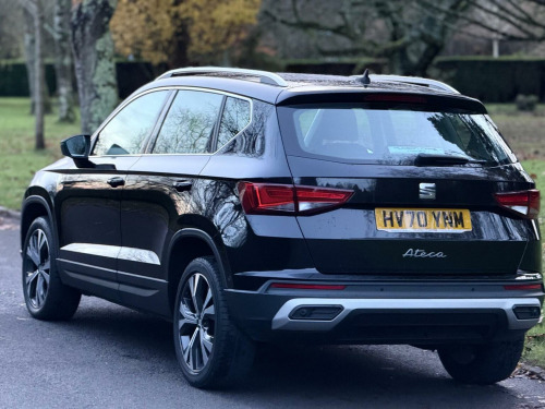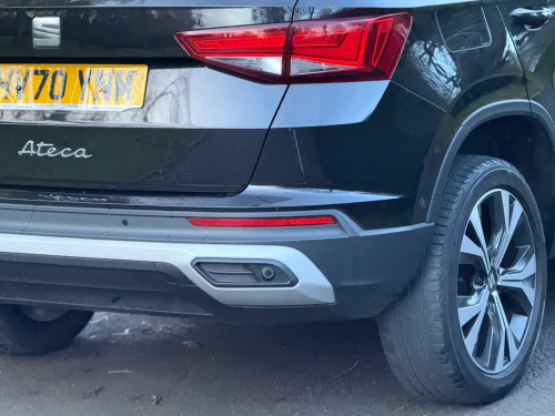 This SEAT Ateca TSI EVO SE Technology from 2020 boasts a clear vehicle history and has had only one owner, offering you peace of mind. Powered by a 1.5 litre petrol engine meeting Euro 6 emissions standards, this model comes in the SE Technology trim. It features KESSY keyless entry and go, allowing you to unlock and start the car without needing your keys, and full LED headlights for excellent visibility. Inside, youll find dual zone climate control to keep everyone comfortable and a wireless phone charger to keep your devices powered up. For convenience, it also includes park assist with front and rear sensors to help you manoeuvre into tight spaces. The SEAT Ateca TSI EVO SE Technology stands out with its impressive acceleration, reaching 0 to 62 miles per hour in just 8.5 seconds, demonstrating its responsive performance. This vehicle also offers a low insurance group, which can help reduce your running costs. Furthermore, its large boot space provides ample room for shopping, luggage, or sports equipment, making it a practical choice for families and individuals alike. These highlights indicate how this Ateca offers a superior combination of performance, economy, and practicality compared to other vehicles in its class.