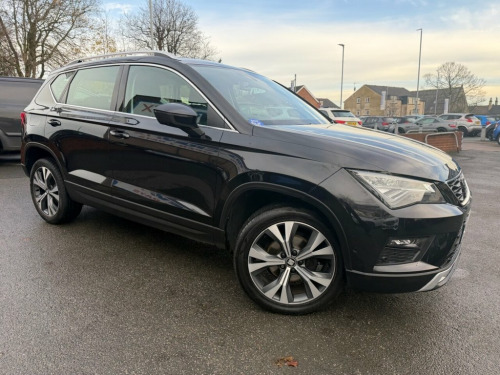 SEAT Ateca 1.5 TSI EVO SE Technology – Apple CarPlay | Park Assist | Excellent History Petrol | Manual | Euro 6 | 150 PS | 60,442 Miles | MOT Until 02-12-2026 This SEAT Ateca 1.5 TSI EVO SE Technology is a well-presented, well-maintained example of SEAT's popular family SUV. With just 60,442 miles from new, only two owners, and an excellent service record with six services up to 60k, it has been cared for to a high standard throughout. Powered by the strong and efficient 1.5 TSI petrol engine producing 150 PS, it delivers smooth, responsive performance with impressive fuel economy. Its Euro 6 compliance makes it ideal for clean-air zones and modern daily driving. Finished in sleek black with a dark cloth interior, this SE Technology model boasts a fantastic specification including satellite navigation, Bluetooth, alloy wheels, park assist, and Apple CarPlay — offering excellent tech, comfort, and convenience. A superbly maintained, high-spec example of the SEAT Ateca — practical, stylish, and great value for family or everyday use. 2019 SEAT ATECA 1.5 TSI EVO SE Technology SUV 5dr is offered to you for sale in Pudsey, Leeds, finished in black this SEAT ATECA 1.5 TSI EVO SE Technology SUV 5dr is one of many handpicked used cars that used car dealer, Catalina of Stanningley, Pudsey, Leeds have available for sale. 12V Socket in Front, 18in Alloy Wheels - Performance, 3.5in Drivers Display, Active Front Head Restraints, Alarm - Perimeter and Interior Monitorin, Ambient Spot Lighting and Front Footwell, Anti-Lock Braking System - ABS, Armrest with Air Outlet in Rear, Automatic Headlight Adjustment, Chrome Dashboard Detailing, Comfort Suspension, Cruise Control, Digital Clock, Door Mirrors and Door Handles in Body Co, Door Mirrors with Welcome Light Silhouet, Driver and Front Passenger Airbags, Driver and Passenger Seat with Lumbar Ad, Driver and Passenger Sunvisor with Card , Driver and Passenger Sunvisor with Cover, Drivers Knee Airbag, Dual Zone Climate Control, Electric Parking Brake Including Autoho