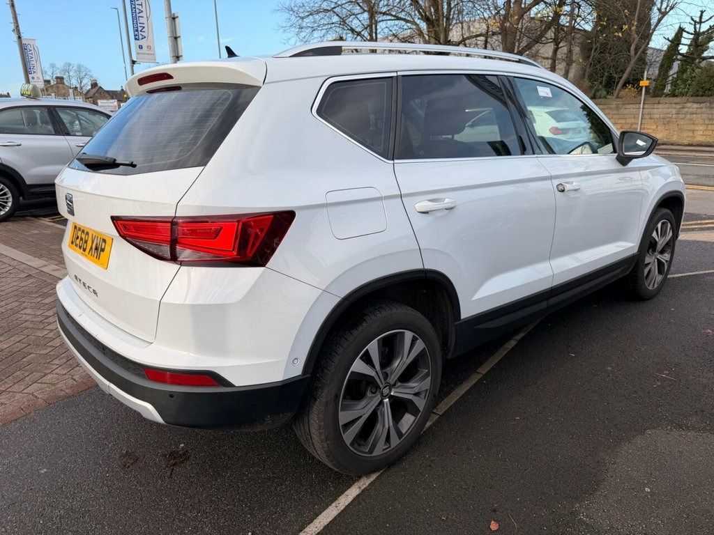 Secure First Refusal – Reserve Today! Don't miss the opportunity to be first in line for this vehicle. By placing a deposit, you can secure first refusal before it goes live to the public. We're currently preparing the vehicle to an exceptional standard. This includes a fresh service, a minimum of 6 months' MOT with all advisories resolved, and our complimentary 3-month warranty for added peace of mind. Once reserved, we can have the car fully prepared and ready for viewing or collection within 48 hours. If you view and test drive the vehicle and decide it's not right for you, your deposit will be fully refunded—no questions asked. Please note: if you choose not to attend your appointment or fail to view the vehicle, the deposit will be non-refundable. 2018 SEAT ATECA 1.5 TSI EVO SE Technology SUV 5dr is offered to you for sale in Pudsey, Leeds, finished in white this SEAT ATECA 1.5 TSI EVO SE Technology SUV 5dr is one of many handpicked used cars that used car dealer, Catalina of Stanningley, Pudsey, Leeds have available for sale. 12V Socket in Front, 18in Alloy Wheels - Performance, 3.5in Drivers Display, Active Front Head Restraints, Alarm - Perimeter and Interior Monitorin, Ambient Spot Lighting and Front Footwell, Anti-Lock Braking System - ABS, Armrest with Air Outlet in Rear, Automatic Headlight Adjustment, Chrome Dashboard Detailing, Comfort Suspension, Cruise Control, Digital Clock, Door Mirrors and Door Handles in Body Co, Door Mirrors with Welcome Light Silhouet, Driver and Front Passenger Airbags, Driver and Passenger Seat with Lumbar Ad, Driver and Passenger Sunvisor with Card , Driver and Passenger Sunvisor with Cover, Drivers Knee Airbag, Dual Zone Climate Control, Electric Parking Brake Including Autoho