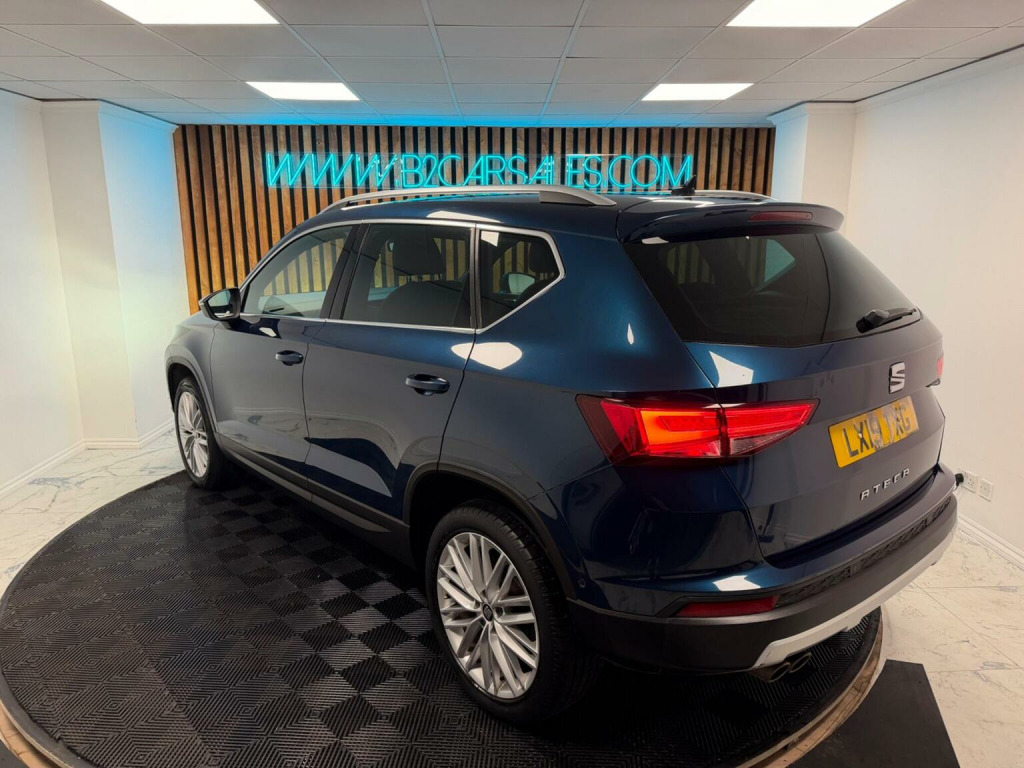 This 2019 SEAT Ateca TSI EVO XCELLENCE boasts a full service history, 2 keys and an MOT valid until August 2026, offering excellent peace of mind. This one previous owner vehicle has a clear vehicle history check and its last service was completed on 17 February 2026 at 56,973 miles. Powered by a 1.5 litre Euro 6 compliant petrol engine, this XCELLENCE trim model is equipped with a Convenience Pack featuring automatic headlights, Adaptive Cruise Control, and Full Link integration for Android Auto and Apple CarPlay. Youll also appreciate the Dual Zone Climate Control and Full LED Headlights. The SEAT Ateca stands out with its impressive acceleration, reaching 0-62mph in just 8.6 seconds, demonstrating its responsive performance. Its low CO2 emissions are a key advantage, making it a more environmentally conscious choice compared to many other vehicles. Furthermore, the Ateca offers substantial boot space, providing ample room for luggage or shopping, and it sits in a low insurance group, which can help to reduce your running costs. A 6 month warranty is also included for added reassurance. Buy with confidence from our garage with our own workshops and service centre. All cars checked and serviced prior to sale, 6 months nationwide warranty included and extended warranty available. Free delivery available. 7 days money back guarantee on all online sales. , We are open 7 days a week, viewings by appointment. All debit and credit cards accepted, finance available, part exchange welcome.