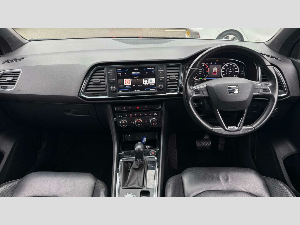 Just Arrived....This 2018 SEAT Ateca TSI EVO XCELLENCE Lux offers a blend of style and practicality, making it an excellent choice for those seeking a reliable and well equipped SUV. Powered by a 1.5 litre petrol engine, this Euro 6 compliant model delivers an impressive 0-62mph acceleration in just 8.6 seconds. The XCELLENCE Lux trim ensures a premium experience, featuring Full LED Headlights for superior visibility and advanced parking assistance systems. These include a Rear View Camera, Front and Rear Parking Sensors, and a Top View Camera providing a 360 degree view, all designed to make manoeuvring effortless. Furthermore, the Advanced Driving Assistance Pack, complete with Blind Spot Assistance, enhances safety on every journey.Beyond its impressive technology, this SEAT Ateca boasts a large boot space, offering ample room for shopping, luggage, or sporting equipment. Its low CO2 emissions also highlight its efficiency, indicating a more economical and environmentally conscious drive compared to similar vehicles. The combination of its dynamic performance, comprehensive safety features, and generous practicality makes this Ateca a standout option in its class.. 12V Socket in Front, 19in Alloy Wheels - Exclusive Machined Bi-Colour, Active Front Head Restraints, Adaptive Cruise Control, Advanced Driving Assistance Pack, Advanced Multi-Colour Interior Ambient Lighting with LED Interior Illumination and LED Illuminated Glovebox, Alarm - Perimeter and Interior Monitoring, Ambient Spot Lighting and Front Footwell Illumination, Anti-Lock Braking System - ABS, Armrest with Air Outlet in Rear, Automatic Headlight Adjustment, Black Interior Roof, Chrome Dashboard Detailing, Chrome Double Exhaust Pipe, Comfort Suspension, Convenience Pack, Dark Tinted Rear Windows, Digital Clock, Digital Cockpit, Door Mirrors and Door Handles in Body Colour, Door Mirrors with Welcome Light Silhouette, Driver and Front Passenger Airbags, Driver and Passenger Seat with Lumbar Adjustment, Driver and Passenger Sunvisor with Card Holder for Driver, Driver and Passenger Sunvisor with Covered and Illuminated Mirrors, Drivers Knee Airbag, Dual Zone Climate Control, Electric Parking Brake Including Autohold Function, Electric Tailgate with Virtual Pedal, Electrically Adjustable Folding and Heated Door Mirrors, Electronic Differential Lock System - XDS, Electronic Stability Control - ESC, Four Cargo Rings in the Boot, Front Armrest - Adjustable with Storage Compartment, Front Assist - City Emergency Braking and Pedestrian Protection, Front Courtesy Light with Front and Rear Reading Lights, Front Cup Holders, Front Grille Frame - Chrome, Front LED Fog Lights with Cornering Function, Front Passenger Airbag De-Activation, Front Seat Back Storage Pockets, Front Side Airbags, Front and Rear Electric Windows, Front and Rear Seatbelt Reminder, Fuel Door Linked to Central Locking, Full LED Headlights, Full Link, Gear Recommendation Indicator, Heated Windscreen, Height Adjustable Front Headrests, Height Adjustable Passenger Seat, Height-Adjustable Drivers Seat, High Gloss Black Grille, Hill Hold Control, ISOFIX Points in Outer Rear Seats with Top Tether Anchorage Points, Illuminated Aluminium Front Door Sill with Trim Logo, Illuminated Boot, Instrument Lighting with Brightness Control, Keyless Entry and Go - KESSY and Wireless Phone Charger, LED Daytime Running Lights, LED Taillights, Leather Gear Knob, Leather Steering Wheel, Lights Left On Warning Buzzer, Locking Wheel Bolts, Low Fuel Warning Light, Navigation System, Outside Temperature Gauge, Park Assist, Power Locking and Remote Control with Two Foldable Keys and Opening Boot Selector - 3 Buttons, Progressive Steering, RPM Counter, Rear Armrest and Easy Back Seat Release Mechanism From Boot, Rear Fog Light, Rear Reading Lights, Rear View Camera, Rear Wash - Wipe, Roof Rails - Chrome, SEAT Drive Profile with Driving Experience Button, Split Folding Rear Seats - 60-40, Steering Wheel-Mounted Audio and Phone Controls, Steering Wheel-Mounted Gearshift Paddles, Storage Box Under Drivers Seat, Sunglasses Storage Compartment in Roof Console, Tinted Windows, Tiredness Recognition System, Top View Camera, Traction Control System - ASR, Trip Computer, Two Curtain Airbags, Tyre Pressure Monitoring System, USB Media Cable, Wheel Arch Surrounds - Black, Window Surrounds - Chrome, Winter Pack, Leather Sports Seats - Black, Towbar - Pre-Installation with Hook, Panoramic Sunroof, Space-Saving Spare Wheel. Full dealership history