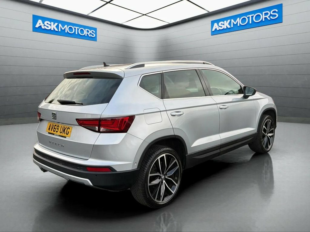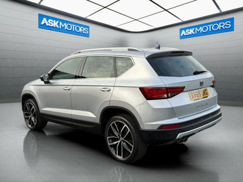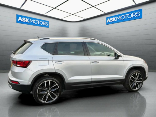 2 reg Keepers, Service History, Spare Key, This 2019 SEAT Ateca TSI EVO XCELLENCE Lux boasts a clear vehicle history, offering peace of mind for its next owner. This Euro 6 compliant 1.5 litre petrol model comes in the well appointed XCELLENCE Lux trim, featuring a suite of advanced technology. Navigate tight spots with ease thanks to the Top View Camera system, which includes a 360 degree view and rear camera functionality, further enhanced by the Adaptive Cruise Control for effortless motorway journeys. Inside, you'll appreciate the comfort provided by Dual Zone Climate Control and the cosy warmth of the heated seats included in the Winter Pack. The SEAT Ateca TSI EVO XCELLENCE Lux offers a compelling blend of performance and practicality. Its impressive acceleration, reaching 0-60mph in just 8.6 seconds, demonstrates its responsive nature. This model also stands out with its low CO2 emissions, making it a more environmentally conscious choice compared to many similar vehicles. Furthermore, the generous boot space ensures you have ample room for luggage, shopping, or any adventure you plan to embark on. 12V Socket in Front, 19in Alloy Wheels - Exclusive Machined B, Active Front Head Restraints, Adaptive Cruise Control, Advanced Driving Assistance Pack, Advanced Multi Colour Interior Ambient L, Alarm - Perimeter and Interior Monitorin, Anti-Lock Braking System - ABS, Armrest with Air Outlet in Rear, Comfort Suspension, Convenience Pack, Dark Tinted Rear Windows, Digital Clock, Digital Cockpit, Door Mirrors with Welcome Light Silhouet, Driver and Front Passenger Airbags, Driver and Passenger Seat with Lumbar Ad, Driver and Passenger Sun Visor with Cove, Drivers Knee Airbag, Dual Zone Climate Control, Electric Parking Brake Including Autohol, Electric Tailgate with Virtual Pedal, Electrically