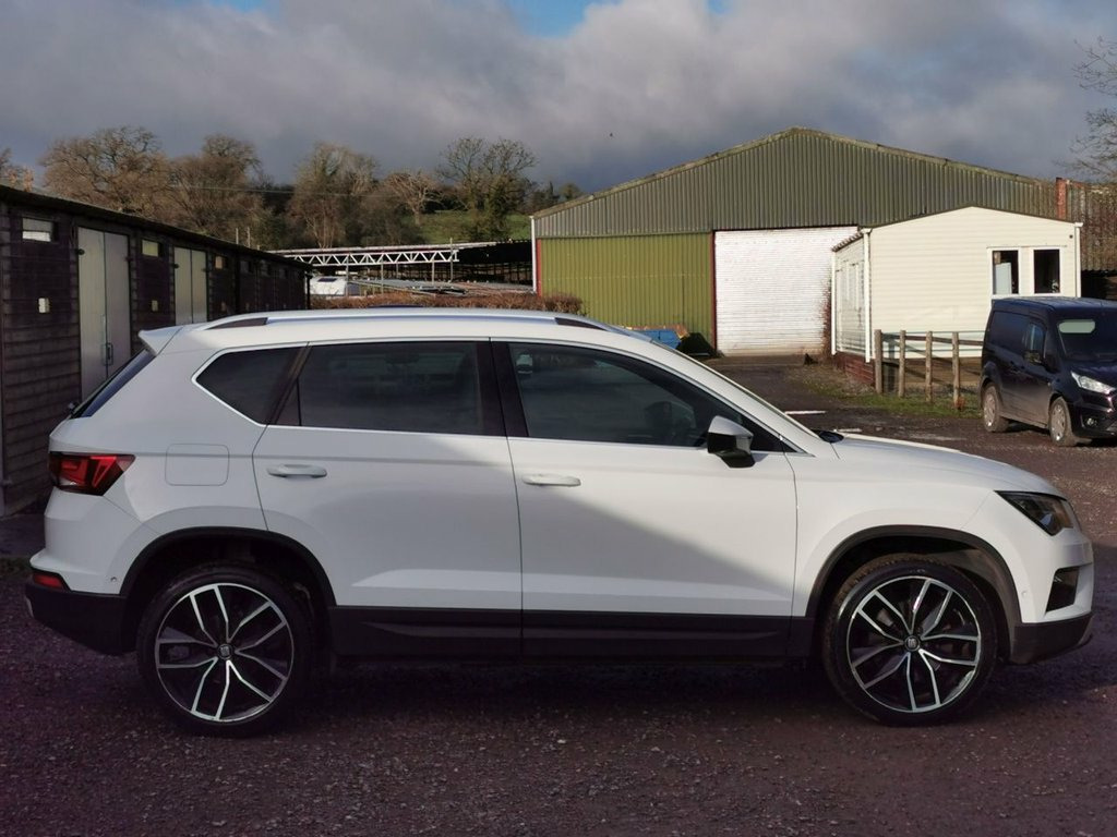 Presented in smart Bila White, this superb family SUV combines style, practicality and a high specification. Having covered just 45,000 miles with only one previous owner, it boasts a conscientious maintenance record with six recorded services, the most recent carried out in May 2025 at 39,476 miles. For complete peace of mind, it also comes with a long MOT valid until December 2026 and is fully ULEZ and CAZ compliant. The desirable Xcellence Lux specification ensures you travel in comfort and convenience. Features include 19-inch alloy wheels, front and rear parking sensors, a practical electric tailgate and a luxurious black full leather interior. The advanced driver environment offers a digital dashboard, a touchscreen infotainment system with DAB radio, Bluetooth, and satellite navigation, complemented by a 360-degree camera. For all-weather comfort, you benefit from automatic dual-zone climate control and heated seats, alongside keyless start, cruise control and automatic headlights. We are ready to help you drive away in this well-equipped Ateca today. It is supplied with two sets of keys and we offer optional extras including an Autoglym Lifeshine treatment and nationwide delivery. To make ownership even more accessible, we provide competitive finance options with rates from 9.9% APR. For added security, we offer RAC extended warranties, with a 12-month policy at £599 or a comprehensive 24-month policy for just £899, which includes 12 months of compliment 12V Socket in Front, 19in Alloy Wheels - Exclusive Machined B, Active Front Head Restraints, Adaptive Cruise Control, Advanced Driving Assistance Pack, Advanced Multi-Colour Interior Ambient L, Alarm - Perimeter and Interior Monitorin, Ambient Spot Lighting and Front Footwell, Anti-Lock Braking System - ABS, Armrest with Air Outlet in Rear, Automatic Headlight Adjustment, Black Interior Roof, Chrome Dashboard Detailing, Chrome Double Exhaust Pipe, Comfort Suspension, Convenience Pack, Dark Tinted Rear Windows, Digital Clock, Digital Cockpit, Door Mirrors and Door Handles in Body Co, Door Mirrors with Welcome Light Silhouet, Driver and Front Passenger Airbags, Driver and Passenger Seat with L