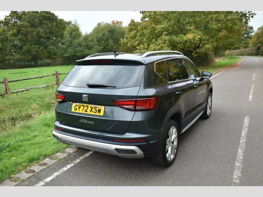 This 2022 SEAT Ateca TSI EVO XPERIENCE Edition is a superb example, having been owned by just one person since new. It boasts a responsive 1.5 litre petrol engine, meeting Euro 6 emissions standards, and comes equipped with the desirable XPERIENCE Edition trim. You'll appreciate the convenience of the Winter Pack, which includes heated seats and a heated steering wheel, perfect for colder mornings. The LED headlamps with cornering function provide excellent visibility, while the Park Assist system, complete with front and rear sensors, makes manoeuvring effortless. Furthermore, the Safety and Driving Pack includes adaptive cruise control for more relaxed journeys, and the wired Full Link system seamlessly integrates your Android Auto or Apple CarPlay.With a generous boot space, this Ateca offers ample room for all your luggage and shopping needs. Its impressive acceleration, reaching 0-62mph in just 9.0 seconds, demonstrates its capable performance. These features, combined with its single owner provenance and comprehensive equipment list, clearly set this SEAT Ateca apart from other vehicles in its class, offering a well rounded and enjoyable driving experience. Finished in Dark Camouflage with cloth interior, chrome roof rails, front and rails, front and rear parking sensors, electric folding mirrors, keyless start, air con, reverse camera with guidelines, park assist, eco start/stop function, sat nav, Android Auto, DAB radio, Bluetooth, 6 speed manual, cruise control, 18'' alloy wheels, privacy glass, one private lady owner from new, service history, HPI clear, finance available with this vehicle.... for further information please contact us on 01483 2136417. v power supply, 19in alloy wheels - exclusive 36-5 machined aerowheels - nuclear grey with 235-40 r19-96y, alarm, ambient lighting - multi-coloured with led interior lighting, anti-lock braking system - abs, climacoat windscreen, convenience pack, cruise control, dark tinted rear windows, daytime running lights, digital cockpit - 8in, drawer under drivers seat, driver and front passenger airbags, driver and passenger seats with manual height and lumbar adjustment, drivers knee airbag, dual zone climate control, dynamic headlight range control with self-adjusting whilst driving, electric parking brake including autohold function, electric tailgate with trunk lid power closing, electrically adjustable folding and heated door mirrors, electronic differential lock system - xds, electronic stability control - esc, emergency tyre repair kit, front centre armrest, front grille frame - chrome, front passenger airbag de-activation, front seat back storage pockets, front side airbags, front and rear electric windows, front and rear seatbelt reminder, hill hold control, isofix points in outer rear seats with top tether anchorage points, illuminated aluminium front door sill, interior chrome detailing, interior lighting, keyless entry, led headlamps with lens and led front lamps with cornering function, led taillights with dynamic indicators, leather sports steering wheel and gear knob, locking wheel bolts, media system plus, multi-function display - on-board computer - colour, park assist, power steering, rear exhaust tailpipe, rear view camera, roof rails - chrome, seat connect - safety - service - remote, seat drive profile with driving experience button, safety and driving pack - medium, split folding rear seats - 60-40, tiredness recognition system, traction control system - asr, two curtain airbags, tyre pressure monitoring system, wheel arch surrounds - black, window surrounds - chrome, winter pack, wired full link, wireless phone charger