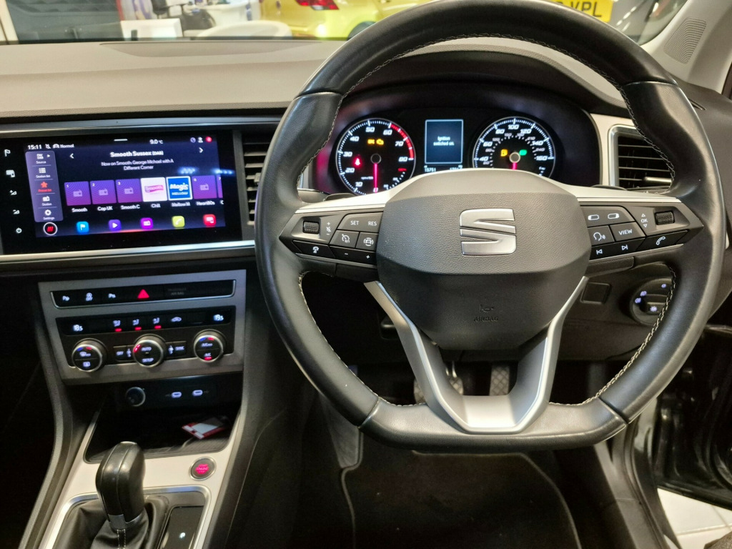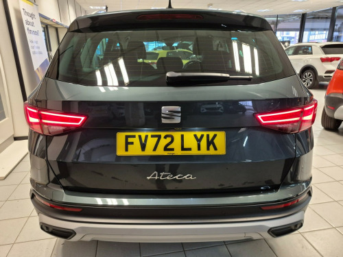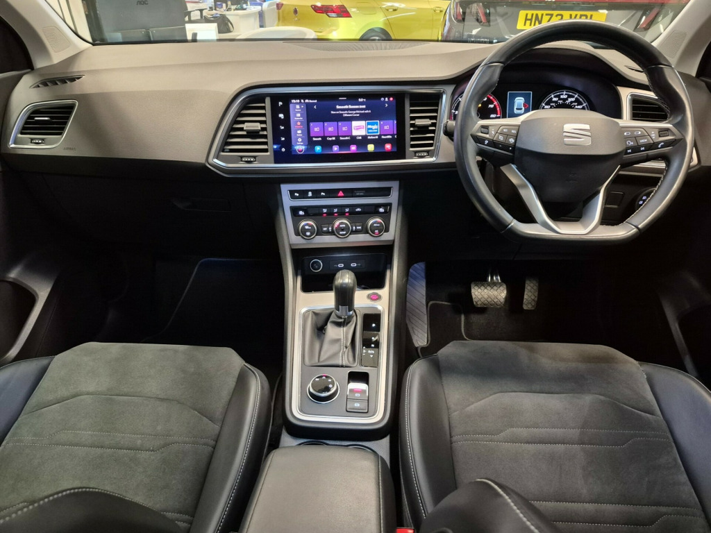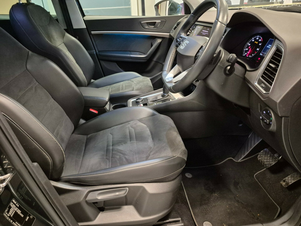 This 2022 SEAT Ateca 1.5 TSI EVO XPERIENCE SUV, with just 15751 miles on the clock, runs on petrol and is ULEZ compliant, ensuring it meets the latest emission standards. The MOT is valid until 16/12/2026, giving you peace of mind for years to come. With 5 seats and 5 doors, this SUV offers ample space for passengers and cargo. The automatic DSG transmission and powerful 150 ps engine deliver a smooth and thrilling driving experience, while the 12V Power Supply, Navigation System, SEAT Connect, Wireless Full Link, and Wireless Phone Charger provide modern convenience and connectivity on the go. This versatile and stylish SUV is ready to take you on any adventure, combining practicality with cutting-edge technology. v power supply, navigation system, seat connect - safety - service - remote - online, wireless full link, wireless phone charger, 18in alloy wheels - brilliant silver, climacoat windscreen, dark tinted rear windows, electrically adjustable folding and heated door mirrors, emergency tyre repair kit, front grille frame - chrome, front and rear electric windows, locking wheel bolts, rear exhaust tailpipe, roof rails - chrome, wheel arch surrounds - black, window surrounds - chrome, alarm, anti-lock braking system - abs, driver and front passenger airbags, drivers knee airbag, electric parking brake including autohold function, electronic stability control - esc, front passenger airbag de-activation, front side airbags, front and rear seatbelt reminder, hill hold control, isofix points in outer rear seats with top tether anchorage points, keyless entry, safety and driving pack - medium, traction control system - asr, two curtain airbags, ambient lighting - multi-coloured with led interior lighting, convenience pack, digital cockpit - 8in, drawer under drivers seat, driver and passenger seats with manual height and lumbar adjustment, dual zone climate control, front centre armrest, front seat back storage pockets, illuminated aluminium front door sill, interior chrome detailing, interior lighting, leather sports steering wheel and gear knob, split folding rear seats - 60-40, steering wheel-mounted gearshift paddles, cruise control, electronic differential lock system - xds, park assist, power steering, rear view camera, seat drive profile with driving experience button, tiredness recognition system, tyre pressure monitoring system, daytime running lights, dynamic headlight range control with self-adjusting whilst driving, led headlamps with lens and led front lamps with cornering function, led taillights with dynamic indicators