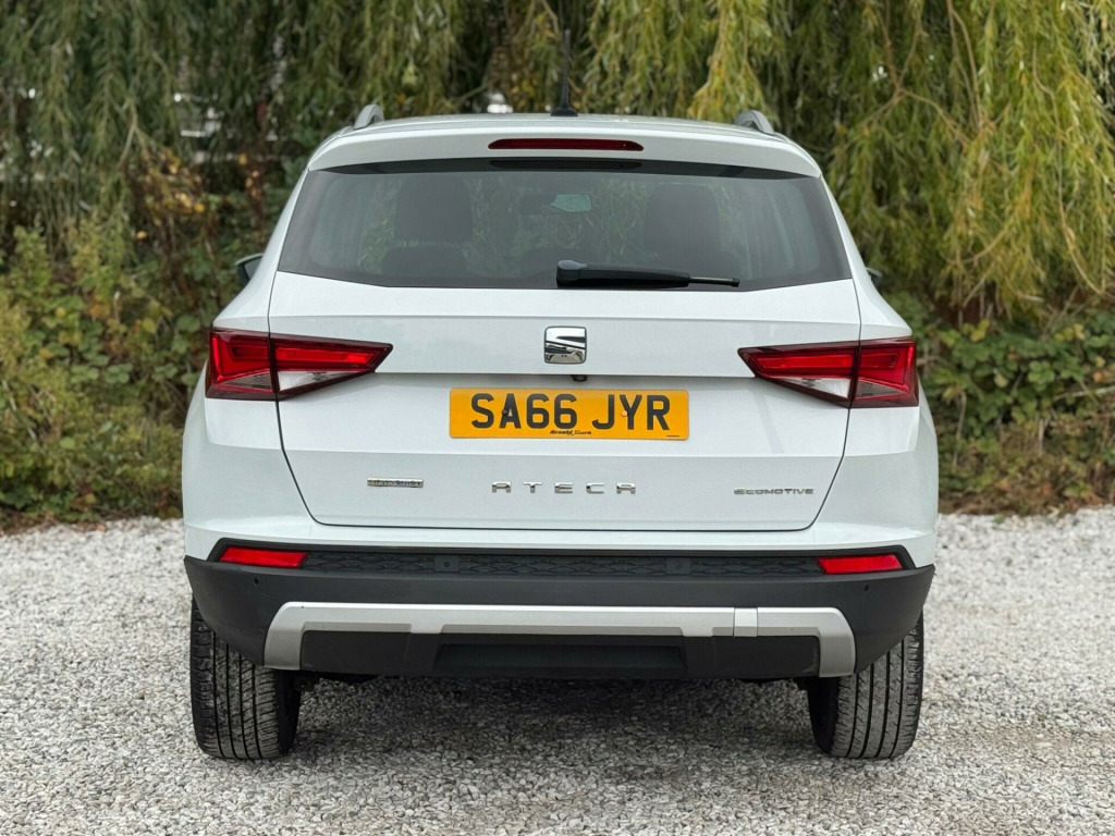 2 FORMER KEEPERS2 KEYSSERVICE HISTORY - 5 SERVICES - 1 MAIN DEALER SERVICEEURO 6ULEZ COMPLIANTThis 2016 SEAT Ateca TDI First Edition is a superb example, having had only two owners from new. It boasts a 1.6 litre Euro 6 diesel engine, offering an impressive fuel economy of 64 miles per gallon. This First Edition model comes equipped with a range of convenient features, including rear parking sensors and a rear view camera to aid with parking, alongside full LED headlights for excellent visibility.You'll also appreciate the electric tailgate operated by a virtual pedal, keyless entry, and wireless phone charging for added ease. Inside, the Media System Plus with Bluetooth connectivity keeps you entertained and connected. This Ateca also benefits from a low insurance group, low CO2 emissions, and a large boot space, making it a practical and economical choice that stands out from other vehicles in its class. v socket in front, 18in alloy wheels - bi-colour, 3.5in drivers display, active front head restraints, alarm - perimeter and interior monitoring, ambient spot lighting and front footwell illumination, anti-lock braking system - abs, armrest with air outlet in rear, chrome dashboard detailing, comfort suspension, cruise control, dark tinted rear windows, digital clock, door mirrors and door handles in body colour, driver and front passenger airbags, driver and passenger seat with lumbar adjustment, driver and passenger sunvisor with card holder for driver, driver and passenger sunvisor with covered and illuminated mirrors, drivers knee airbag, dual zone climate control, electric parking brake, electric tailgate with virtual pedal, electrically folding door mirrors, electronic differential lock system - xds, electronic stability control - esc, four cargo rings in the boot, front armrest - adjustable with storage compartment, front assist - city emergency braking and pedestrian protection, front courtesy light with front and rear reading lights, front cup holders, front fog lights with cornering function, front grille frame - chrome, front passenger airbag de-activation, front seat back storage pockets, front side airbags, front and rear electric windows, front and rear seatbelt reminder, fuel filler flap linked to central locking, full led headlights, full link, gear recommendation indicator, height adjustable front headrests, height adjustable passenger seat, height-adjustable drivers seat, hidden exhaust pipe, hill hold control, isofix points in outer rear seats with top tether anchorage points, illuminated boot, illuminated glovebox, instrument lighting with brightness control, led daytime running lights, led taillights, leather gear knob, leather steering wheel, lights left on warning buzzer, locking wheel bolts, low fuel warning light, media system plus, navigation system, outside temperature gauge, power steering - electrically assisted, rpm counter, rear armrest and easy back seat release mechanism from boot, rear fog light, rear parking sensors, rear reading lights, rear view camera, rear wash - wipe, roof rails - black, seat drive profile with driving experience button, seat logo tailgate release, split folding rear seats 60/40 with reclining function, steering wheel-mounted audio and phone controls, storage box under drivers seat, sunglasses storage compartment in roof console, tinted windows, tiredness recognition system, traction control system - asr, trip computer, two curtain airbags, tyre pressure monitoring system, wheel arch surrounds - black