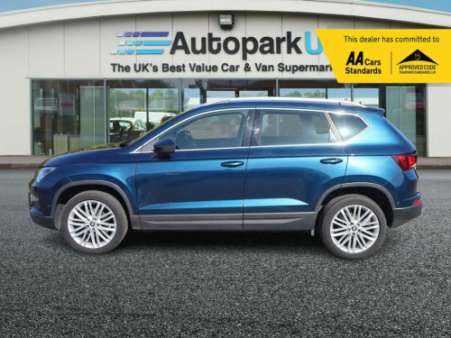 The SEAT Ateca XCELLENCE trim has been cared for by one former keeper. The Ateca is designed to deliver a premium experience with a sporty edge. It features luxuriously upholstered seats, often in Alcantara or leatherette, with contrast stitching and ergonomic shaping for long-distance comfort. The dashboard is clean and modern, with ambient LED lighting that can be customized to suit your mood, and chrome and gloss black accents that elevate the cabin's visual appeal. The 8-inch touchscreen infotainment system includes full smartphone integration via Apple CarPlay and Android Auto, along with satellite navigation, voice control, and Bluetooth connectivity. Dual-zone climate control, a wireless phone charger, and keyless entry with push-button start are standard in the XCELLENCE trim. The multifunction steering wheel is leather-wrapped and includes controls for media, cruise control, and driver assistance features. Practicality is enhanced with a 60/40 split-folding rear seat, generous boot space, and multiple storage compartments throughout the cabin. The overall layout is intuitive and driver-focused, making the Ateca feel both refined and functional. At Autopark UK, we pride ourselves on quality. Each vehicle is meticulously selected by our experienced buying team for its excellent condition and unbeatable value. As part of our commitment, this vehicle has undergone—or will undergo—a thorough multipoint inspection under the AA Dealer Promise. We also prov * AWAITING 110 POINT PDI CHECK BEFORE CO, * FREE 12 MONTH MOT ON DEPOSIT (no advis