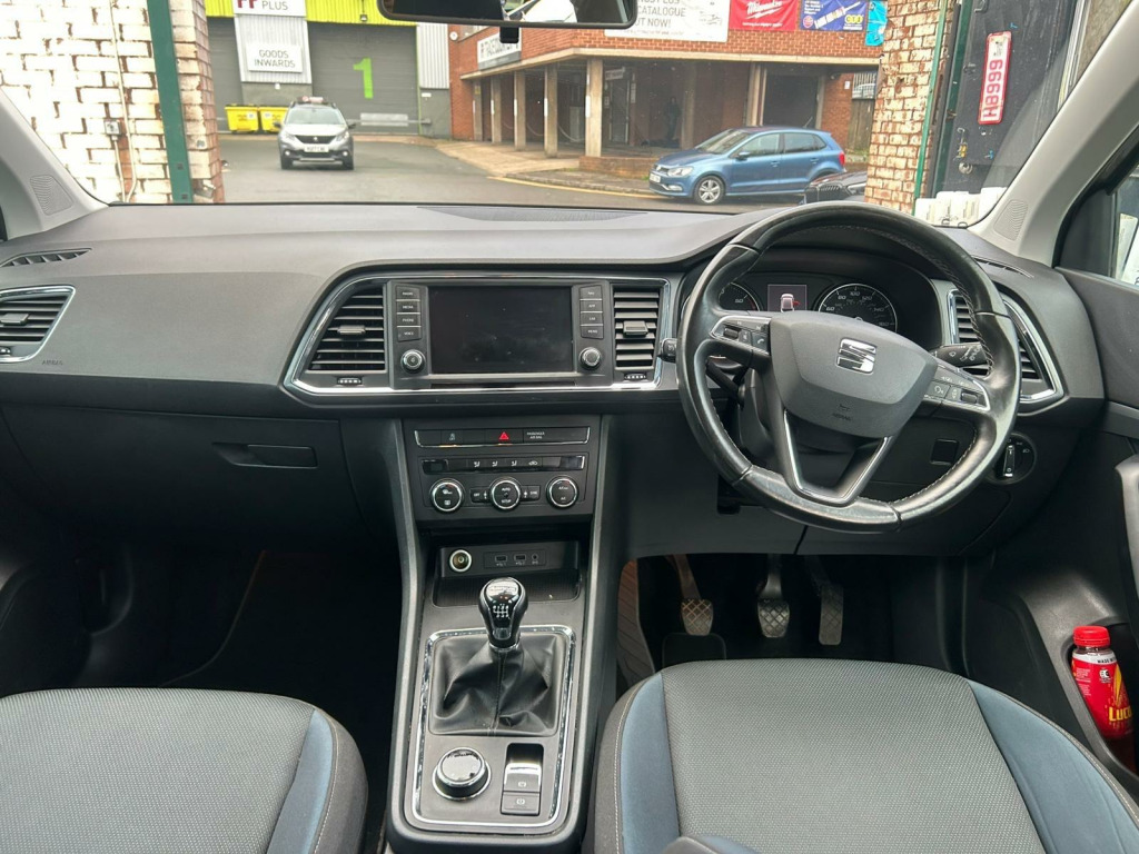 This 2017 SEAT Ateca TDI SE Technology offers exceptional value with its remarkably low mileage of just 66,400 miles for its age. This Four Wheel Drive model is powered by an efficient 2.0L Diesel engine, meeting Euro 6 emissions standards. It comes equipped with desirable features such as Full LED Headlights for superior visibility and Rear Parking Sensors to assist with manoeuvring. The SE Technology trim also includes Dual Zone Climate Control, ensuring comfort for all occupants.You'll appreciate the impressive fuel economy of 55 mpg, which, combined with its low CO2 emissions, makes this Ateca an economical choice. Its low insurance group rating further contributes to lower running costs, making it an attractive option for many drivers. Furthermore, the generous boot space provides ample room for luggage or shopping, and the low mileage for its age indicates it has been well cared for, suggesting it is a better choice than many similar vehicles on the market. On v car cat s. v socket in front, 18in alloy wheels - bi-colour, 3.5in drivers display, active front head restraints, alarm - perimeter and interior monitoring, aluminium roof rails, ambient spot lighting and front footwell illumination, anti-lock braking system - abs, armrest with air outlet in rear, chrome dashboard detailing, comfort suspension, cruise control, digital clock, door mirrors and door handles in body colour, driver and front passenger airbags, driver and passenger seat with lumbar adjustment, driver and passenger sunvisor with card holder for driver, driver and passenger sunvisor with covered and illuminated mirrors, drivers knee airbag, drivers seat lumbar adjustment, dual zone climate control, electric parking brake, electrically folding door mirrors, electronic differential lock system - xds, electronic stability control - esc, four cargo rings in the boot, front armrest - adjustable with storage compartment, front assist - city emergency braking and pedestrian protection, front courtesy light with front and rear reading lights, front cup holders, front fog lights with cornering function, front grille frame - chrome, front passenger airbag de-activation, front seat back storage pockets, front side airbags, front and rear electric windows, front and rear seatbelt reminder, fuel filler flap linked to central locking, full led headlights, full link, gear recommendation indicator, height adjustable front headrests, height adjustable passenger seat, height-adjustable drivers seat, hidden exhaust pipe, hill hold control, isofix points in outer rear seats with top tether anchorage points, illuminated boot, illuminated glovebox, instrument lighting with brightness control, led daytime running lights, led taillights, leather gear knob, leather steering wheel, lights left on warning buzzer, locking wheel bolts, low fuel warning light, media system plus, navigation system, outside temperature gauge, power locking and remote control with two foldable keys and opening boot selector - 3 buttons, power steering - electrically assisted, rpm counter, rear armrest and easy back seat release mechanism from boot, rear fog light, rear parking sensors, rear reading lights, rear wash - wipe, seat drive profile with driving experience button, seat logo tailgate release, split folding rear seats 60/40 with reclining function, steering wheel-mounted audio and phone controls, storage box under drivers seat, sunglasses storage compartment in roof console, tinted windows, tiredness recognition system, traction control system - asr, trip computer, two curtain airbags, tyre pressure monitoring system, wheel arch surrounds - black, window surrounds - chrome