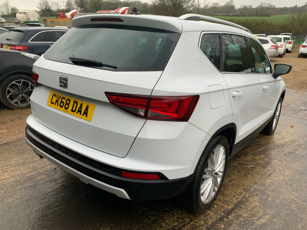 FREE UK DELIVERY - FINANCE AVAILABLE, CONTACT US NOW FOR A NO OBLIGATION QUOTE - CALL NOW TO ARRANGE A TEST DRIVE - PART EXCHANGE WELCOME - ONE YEAR WARRANTY MINIMUM, EXTENDED AVAILABLE, WARRANTY CAN BE REDEEMED AT VAT REGISETERED GARAGE - NO ADMIN FEES - ALL VEHICLES HPI CHECKED - FULL USED CAR INSPECTION MECHANICAL APPRAISAL CARRIED OUT ON ALL VEHICLES BEFORE LEAVING OURSELVES - YOU CAN REST ASSURED YOU'RE MAKING THE RIGHT DECISION WHEN PURCHASING YOUR NEW VEHICLE FROM US - OVER 100 VEHICLES IN STOCK - RIVERSIDE AUTOS LTD FAMILY RUN BUSINESS ESTABLISHED SINCE 2005 -This 2018 SEAT Ateca TDI XCELLENCE boasts exceptionally low mileage for its age, having covered just 51740 miles. This four wheel drive, Euro 6 compliant model features a 2.0 litre diesel engine and comes in the well appointed XCELLENCE trim. You'll appreciate the convenience of rear parking sensors and a rear view camera, making manoeuvring effortless. Inside, dual zone climate control ensures comfort for all occupants, while keyless entry and go, along with a wireless phone charger, add to the modern feel. The car is also equipped with full LED headlights for superior visibility.This SEAT Ateca offers several highlights that set it apart. Its impressive fuel economy of 55 miles per gallon means fewer trips to the petrol station, and its low CO2 emissions are beneficial for the environment. The large boot space provides ample room for shopping, luggage, or sports equipment, making it a practical choice for families and active individuals. Furthermore, its low insurance group rating indicates that running costs will be more affordable compared to similar vehicles.. 12V Socket in Front, 18in Alloy Wheels - Performance 36-1, 3.5in Drivers Display, Active Front Head Restraints, Advanced Multi-Colour Interior Ambient Lighting with LED Interior Illumination and LED Illuminated Glovebox, Alarm - Perimeter and Interior Monitoring, Aluminium Door Step in Front Doors, Aluminium Roof Rails, Ambient Spot Lighting and Front Footwell Illumination, Anti-Lock Braking System - ABS, Armrest with Air Outlet in Rear, Automatic Headlight Adjustment, Black Interior Roof, Chrome Dashboard Detailing, Chrome Double Exhaust Pipe, Comfort Suspension, Convenience Pack, Cruise Control, Dark Tinted Rear Windows, Digital Clock, Door Mirrors and Door Handles in Body Colour, Door Mirrors with Welcome Light Silhouette, Driver and Front Passenger Airbags, Driver and Passenger Seat with Lumbar Adjustment, Driver and Passenger Sunvisor with Card Holder for Driver, Driver and Passenger Sunvisor with Covered and Illuminated Mirrors, Drivers Knee Airbag, Drivers Seat Lumbar Adjustment, Dual Zone Climate Control, Electric Parking Brake Including Autohold Function, Electrically Folding Door Mirrors, Electronic Differential Lock System - XDS, Electronic Stability Control - ESC, Four Cargo Rings in the Boot, Front Armrest - Adjustable with Storage Compartment, Front Assist - City Emergency Braking and Pedestrian Protection, Front Courtesy Light with Front and Rear Reading Lights, Front Cup Holders, Front Grille Frame - Chrome, Front LED Fog Lights with Cornering Function, Front Passenger Airbag De-Activation, Front Seat Back Storage Pockets, Front Side Airbags, Front and Rear Electric Windows, Front and Rear Seatbelt Reminder, Fuel Filler Flap linked to Central Locking, Full LED Headlights, Full Link, Gear Recommendation Indicator, Height Adjustable Front Headrests, Height Adjustable Passenger Seat, Height-Adjustable Drivers Seat, High Gloss Black Grille, Hill Hold Control, ISOFIX Points in Outer Rear Seats with Top Tether Anchorage Points, Illuminated Boot, Instrument Lighting with Brightness Control, Keyless Entry and Go - KESSY and Wireless Phone Charger, LED Daytime Running Lights, LED Taillights, Leather Gear Knob, Leather Steering Wheel, Lights Left On Warning Buzzer, Locking Wheel Bolts, Low Fuel Warning Light, Media System Plus, Navigation System, Outside Temperature Gauge, Progressive Steering, RPM Counter, Rack Electric Power Steering - R-EPS, Rear Armrest and Easy Back Seat Release Mechanism From Boot, Rear Fog Light, Rear Parking Sensors, Rear Reading Lights, Rear View Camera, Rear Wash - Wipe, SEAT Drive Profile with Driving Experience Button, Shark Fin, Split Folding Rear Seats - 60-40, Steering Wheel-Mounted Audio and Phone Controls, Storage Box Under Drivers Seat, Sunglasses Storage Compartment in Roof Console, Tinted Windows, Tiredness Recognition System, Traction Control System - ASR, Trip Computer, Two Curtain Airbags, Tyre Pressure Monitoring System, USB Media Cable, USB in Rear - x2, Wheel Arch Surrounds - Black, Window Surrounds - Chrome, Winter Pack.