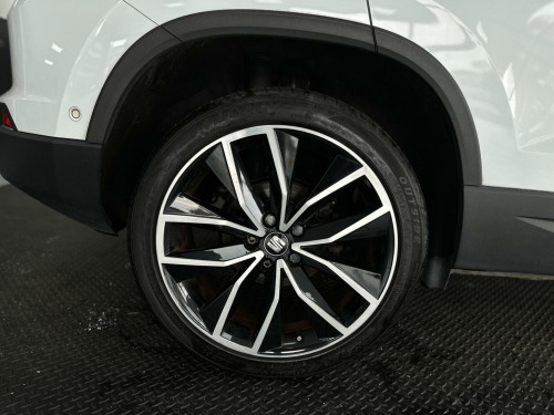 This 2017 SEAT Ateca TDI XCELLENCE presents a remarkable opportunity with its exceptionally low mileage for its age, having covered just 54,572 miles. This Euro 6 compliant, four wheel drive model boasts a powerful 2.0 litre diesel engine and comes with a clear vehicle history check. Its provenance is further supported by partial service history, with the last service completed on 19th May 2023 at 46,357 miles. The XCELLENCE trim level is enhanced by the XCELLENCE Pack, featuring 360 degree parking assistance with front and rear sensors, and a rear view camera. Youll also find 19 inch exclusive bi-colour machined alloy wheels, a Winter Pack including heated seats, and KESSY keyless entry and go with wireless phone charging. A 3 month warranty provides added peace of mind. This SEAT Ateca excels in several key areas, making it a superior choice. Its impressive fuel economy of 51 mpg is a significant advantage, offering greater efficiency on your journeys. The low CO2 emissions are also noteworthy, contributing to a more environmentally conscious drive. For practicality, the large boot space ensures you have ample room for luggage or shopping. Performance is also a strong point, with an acceleration of 0-62mph in just 7.5 seconds, demonstrating its responsive power. Furthermore, its low insurance group rating means lower running costs, making this Ateca an economical and capable option.