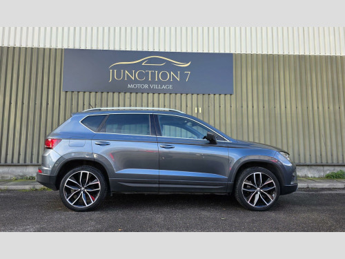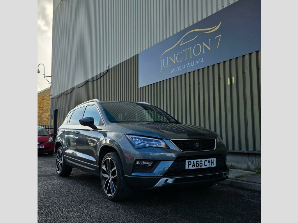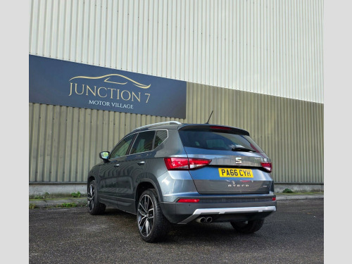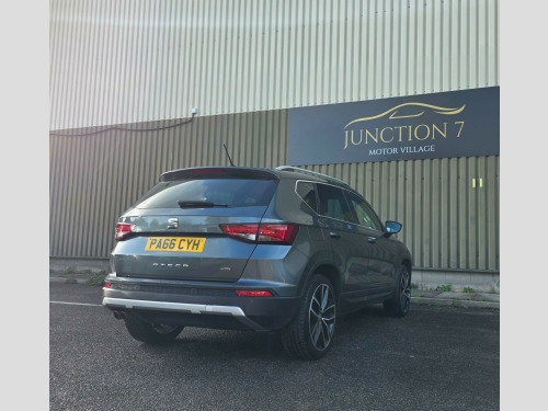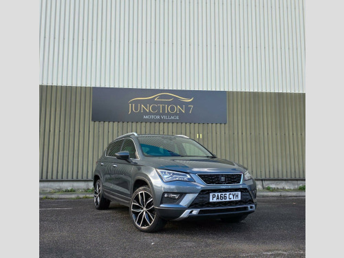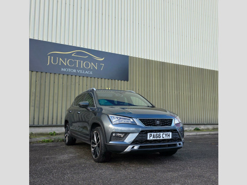 We are proud to present this lovely looking automatic Seat Ateca 4WD from Junction 7 Motor Village based just off Junction 7 of the M65. We are a family run AA Approved dealership prioritizing excellent customer relations and satisfaction. The Ateca is presented with a Metallic Grey exterior and a Black Leather interior. It is a clean example of this popular model from Seat with excellent service history. The bodywork is very good as is the interior however please be aware it may have some light marks commensurate with the age and the mileage of the vehicle. The vehicle is supplied with 2 keys, service history, logbook, mats and locking wheel nut. The full feature list can be found in the features section below and includes a rear parking camera, front and rear parking sensors, Bluetooth phone connectivity, DAB receiver and satellite navigation.The vehicle will come with a comprehensive 3 months warranty covering all major aspects of the vehicle. If the vehicle has less than 6 months MOT remaining, we will have a fresh MOT done on it so it comes with 12 months MOT remaining. We also give a complimentary 12 months of AA breakdown cover with every purchase. We will also service the vehicle to bring it up to date with services if required. We are open 7 days a week for viewings and can deliver up to 50 miles for free (£1.75 per mile thereafter). Please call or message for further info/to arrange a viewing. We have many more vehicles in stock, please visit www.junction7motorvillage.co.uk for more or visit us in person to see the full collection. Thanks for looking! v socket in front, 18in alloy wheels - performance, 3.5in drivers display, active front head restraints, advanced multi colour interior ambient lighting and led interior illumination, alarm - perimeter and interior monitoring, aluminium door step in front doors, aluminium roof rails, ambient spot lighting and front footwell illumination, anti-lock braking system - abs, armrest with air outlet in rear, black interior roof, chrome dashboard detailing, chrome double exhaust pipe, comfort suspension, convenience pack, cruise control, dark tinted rear windows, digital clock, door mirrors and door handles in body colour, door mirrors with welcome light silhouette, driver and front passenger airbags, driver and passenger seat with lumbar adjustment, driver and passenger sunvisor with card holder for driver, driver and passenger sunvisor with covered and illuminated mirrors, drivers knee airbag, drivers seat lumbar adjustment, dual zone climate control, electric parking brake, electrically folding door mirrors, electronic differential lock system - xds, electronic stability control - esc, four cargo rings in the boot, front armrest - adjustable with storage compartment, front assist - city emergency braking and pedestrian protection, front courtesy light with front and rear reading lights, front cup holders, front fog lights with cornering function, front grille frame - chrome, front passenger airbag de-activation, front seat back storage pockets, front side airbags, front and rear electric windows, front and rear seatbelt reminder, fuel filler flap linked to central locking, full led headlights, full link, gear recommendation indicator, height adjustable front headrests, height adjustable passenger seat, height-adjustable drivers seat, hill hold control, isofix points in outer rear seats with top tether anchorage points, illuminated boot, illuminated glovebox, instrument lighting with brightness control, kessy - keyless entry and go, led daytime running lights, led taillights, leather gear knob, leather steering wheel, lights left on warning buzzer, locking wheel bolts, low fuel warning light, media system plus, navigation system, outside temperature gauge, power steering - electrically assisted, rpm counter, rear armrest and easy back seat release mechanism from boot, rear fog light, rear parking sensors, rear reading lights, rear view camera, rear wash - wipe, seat drive profile with driving experience button, seat logo tailgate release, split folding rear seats 60/40 with reclining function, steering wheel-mounted audio and phone controls, steering wheel-mounted gearshift paddles, storage box under drivers seat, sunglasses storage compartment in roof console, tinted windows, tiredness recognition system, traction control system - asr, trip computer, two curtain airbags, tyre pressure monitoring system, wheel arch surrounds - black, window surrounds - chrome, winter pack, space-saving spare wheel, electric tailgate with virtual pedal, leather sports seats - black