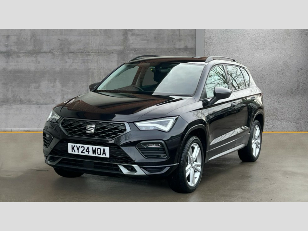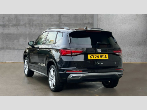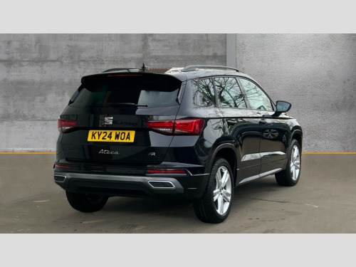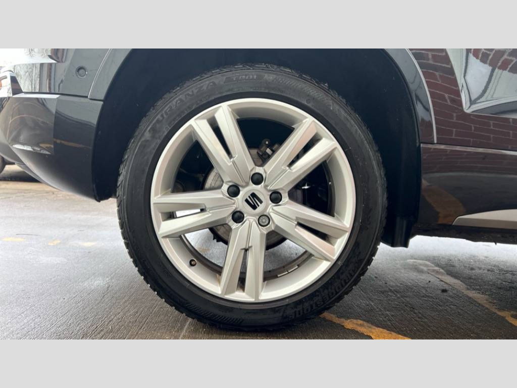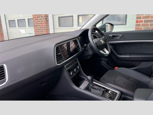 Seat Ateca 1.5 TSI EVO FR 5dr DSG 8" Digital cockpit, Colour multi-function on board computer display, Cruise control system with speed limiter, E-call, Outside temperature gauge, Progressive power assisted steering, SEAT drive profile with driving experience button - Normal, Sport, Eco and Individual mode, gearshift, steering and throttle response, Self parking functionality (includes front and rear parking sensors), Start/stop system, Tailgate, Trip computer, Wireless full link smartphone integration, Wireless phone charger, Steering wheel mounted audio/phone controls, Body colour bumpers, Body coloured wheel arch surrounds, Chrome front grille frame, Chrome roof rails, Chrome side window trim, Dark tinted rear windows, Daytime running lights, Door mirrors with welcome light silhouette, Dynamic headlight range control with self adjusting whilst driving, Electric adjustable/heated/folding door mirrors, Front and rear electric windows, Full LED headlamps with lens and LED front fog lamps with cornering function, Illuminated aluminium front door sill, LED rear tail lights with dynamic indicators, Rear fog lights, Rear side wing doors, Rear wash/wipe, Simulated exhaust pipes in chrome frame, Variable front intermittent wipers, 12v socket in front, 3 seat bench in 2nd row, 60/40 split folding rear seat, Aluminium pedals, Drawer under right front seat, Dual zone climate control, Front and rear head restraints, Front centre armrest, Front seat back storage pockets, Height adjustable driver and passenger seat with lumbar adjustment, ISOFIX points in outer rear seats with top tether anchorage points, Leather steering wheel and gear knob, Microsuede upholstery with front comfort seats, Rear armrest and easy back seat release mechanism from boot, Single front passenger seat, Steering wheel mounted gearshift paddles, Convenience pack - Ateca, Interior lighting pack - Ateca, Navigation system pack with DAB - Ateca, 3x3 point rear seatbelts, ABS, Traction control system (TCS), Electronic stability control (ESC) and Electronic differential lock system (XDS), Airbags - Driver and front passenger airbag with deactivation, front side, two curtain and driver's knee airbags, Electric parking brake with auto hold function, Front and rear seatbelt reminder, Front assist with autonomous emergency braking, Hill hold control, Manual rear child locks, Single tone horn, Tiredness recognition system, Traction control, Tyre pressure monitoring system, Alarm, Keyless entry, Locking wheel bolts, Remote central locking, Chrome interior detailing, 18" Brillaint silver alloy wheels