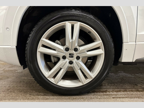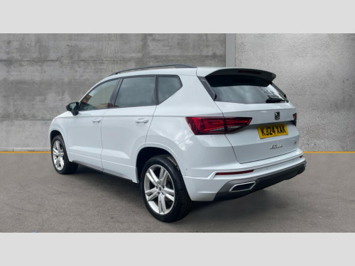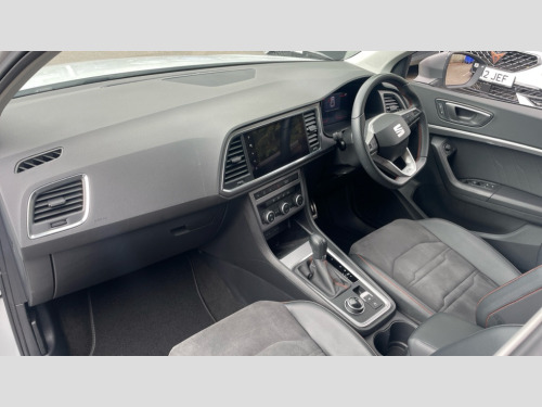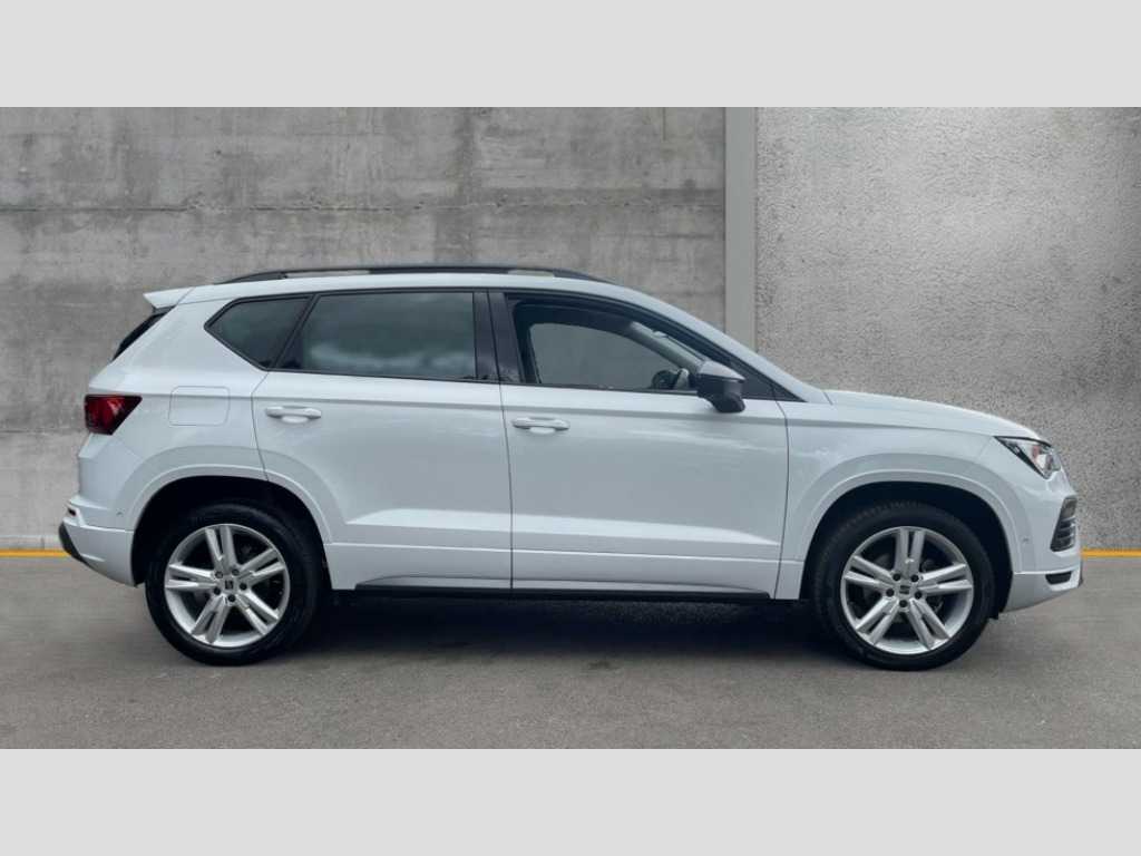 Seat Ateca 1.5 TSI EVO FR 5dr DSG 8" Digital cockpit, Colour multi-function on board computer display, Cruise control system with speed limiter, E-call, Outside temperature gauge, Progressive power assisted steering, SEAT drive profile with driving experience button - Normal, Sport, Eco and Individual mode, gearshift, steering and throttle response, Self parking functionality (includes front and rear parking sensors), Start/stop system, Tailgate, Trip computer, Wireless full link smartphone integration, Wireless phone charger, Steering wheel mounted audio/phone controls, Black roof rails, Black side window trim, Body colour bumpers, Body coloured wheel arch surrounds, Chrome front grille frame, Dark tinted rear windows, Daytime running lights, Door mirrors with welcome light silhouette, Dynamic headlight range control with self adjusting whilst driving, Electric adjustable/heated/folding door mirrors, Front and rear electric windows, Full LED headlamps with lens and LED front fog lamps with cornering function, Illuminated aluminium front door sill, LED 3rd brake light, LED rear tail lights with dynamic indicators, Rear exhaust tailpipe, Rear fog lights, Rear side wing doors, Rear wash/wipe, Roof spoiler, Variable front intermittent wipers, 12v socket in front, 3 seat bench in 2nd row, 60/40 split folding rear seat, Aluminium pedals, Dinamica upholstery with front comfort seats, Drawer under right front seat, Dual zone climate control, Front and rear head restraints, Front centre armrest, Front seat back storage pockets, Height adjustable driver and passenger seat with lumbar adjustment, ISOFIX points in outer rear seats with top tether anchorage points, Leather sports steering wheel and gear knob, Rear armrest and easy back seat release mechanism from boot, Single front passenger seat, Steering wheel mounted gearshift paddles, Convenience pack - Ateca, Interior lighting pack - Ateca, Navigation system pack with DAB - Ateca, Safety and driving pack with attention and drowsiness assist - Ateca, 3x3 point rear seatbelts, ABS, Traction control system (TCS), Electronic stability control (ESC) and Electronic differential lock system (XDS), Airbags - Driver and front passenger airbag with deactivation, front side, two curtain and driver's knee airbags, Electric parking brake with auto hold function, Front and rear seatbelt reminder, Front assist with autonomous emergency braking, Hill hold control, Manual rear child locks, Single tone horn, Tiredness recognition system, Tyre pressure monitoring system, Alarm, Keyless entry, Locking wheel bolts, Remote central locking, Chrome interior detailing, 18" Brillaint silver alloy wheels
