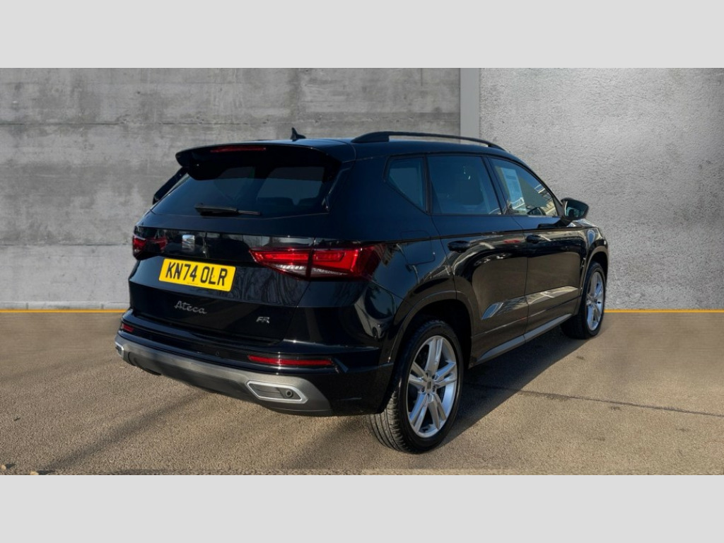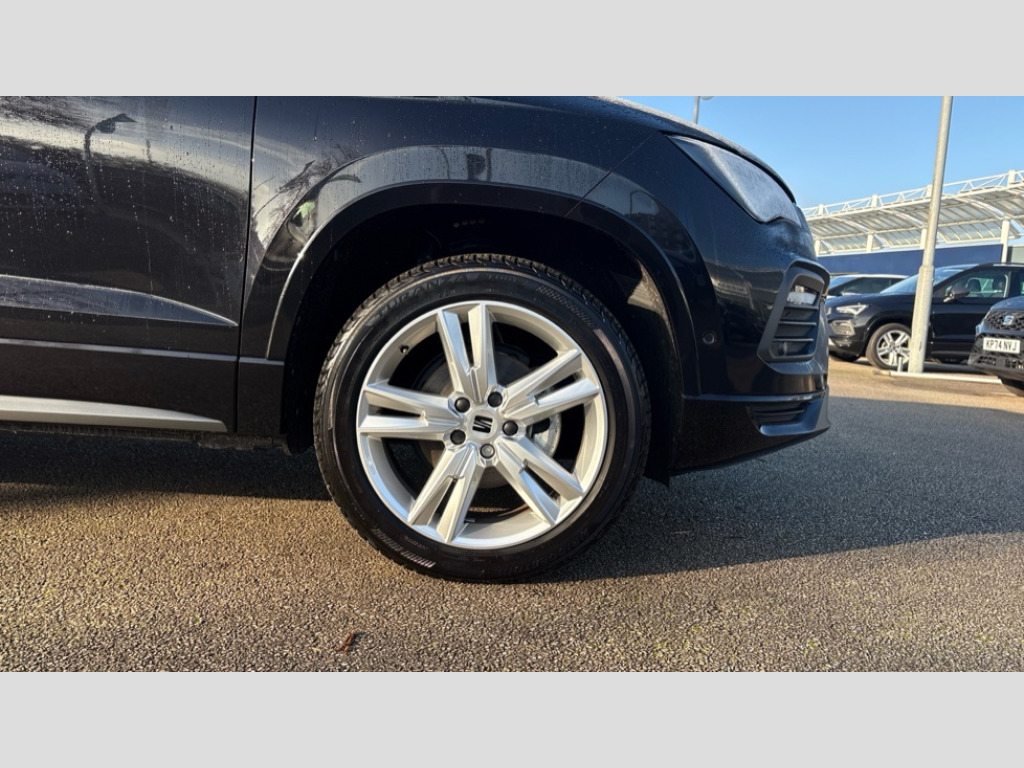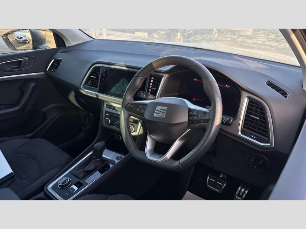 Seat Ateca 1.5 TSI EVO FR 5dr DSG 8" Digital cockpit, Colour multi-function on board computer display, Cruise control system with speed limiter, E-call, Outside temperature gauge, Progressive power assisted steering, SEAT drive profile with driving experience button - Normal, Sport, Eco and Individual mode, gearshift, steering and throttle response, Self parking functionality (includes front and rear parking sensors), Start/stop system, Tailgate, Trip computer, wired and wireless full link smartphone integration, Wireless phone charger, Steering wheel mounted audio/phone controls, Black roof rails, Black side window trim, Body colour bumpers, Body coloured wheel arch surrounds, Chrome front grille frame, Dark tinted rear windows, Daytime running lights, Door mirrors with welcome light silhouette, Dynamic headlight range control with self adjusting whilst driving, Electric adjustable/heated/folding door mirrors, Front and rear electric windows, Full LED headlamps with lens and LED front fog lamps with cornering function, Illuminated aluminium front door sill, LED 3rd brake light, LED rear tail lights with dynamic indicators, Rear exhaust tailpipe, Rear fog lights, Rear side wing doors, Rear wash/wipe, Roof spoiler, Variable front intermittent wipers, 12V socket in front, 3 seat bench in 2nd row, 60/40 split folding rear seat, Aluminium pedals, Dinamica upholstery with front comfort seats, Drawer under right front seat, Dual zone climate control, Front and rear head restraints, Front centre armrest, Front seat back storage pockets, Height adjustable driver and passenger seat with lumbar adjustment, ISOFIX points in outer rear seats with top tether anchorage points, Leather sports steering wheel and gear knob, Rear armrest and easy back seat release mechanism from boot, Single front passenger seat, Steering wheel mounted gearshift paddles, Convenience pack - Ateca, Interior lighting pack - Ateca, Navigation system pack with DAB - Ateca, Safety and driving pack with attention and drowsiness assist - Ateca, 3x3 point rear seatbelts, ABS, Traction control system (TCS), Electronic stability control (ESC) and Electronic differential lock system (XDS), Airbags - Driver and front passenger airbag with deactivation, front side, two curtain and driver's knee airbags, Electric parking brake with auto hold function, Front and rear seatbelt reminder, Front assist with autonomous emergency braking, Hill hold control, Manual rear child locks, Single tone horn, Tiredness recognition system, Tyre pressure monitoring system, Alarm, Keyless entry, Locking wheel bolts, Remote central locking, Chrome interior detailing, 18" Brillaint silver alloy wheels