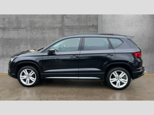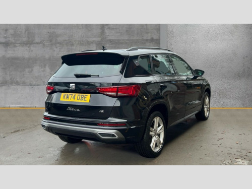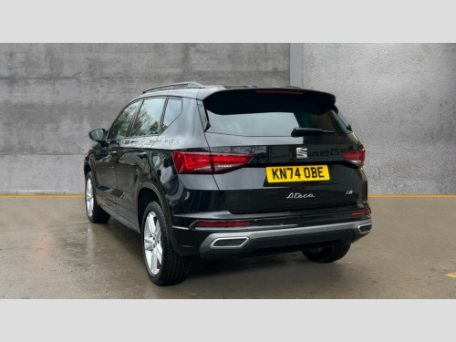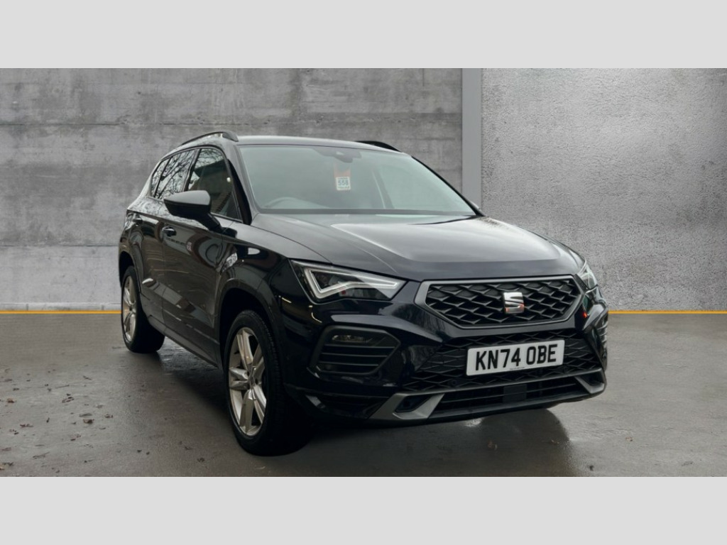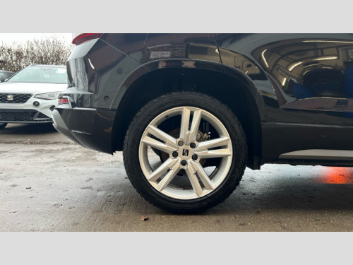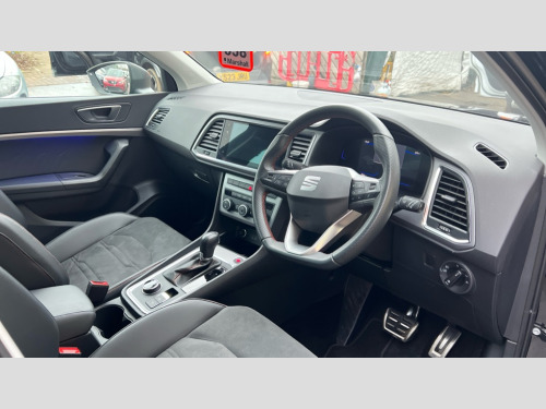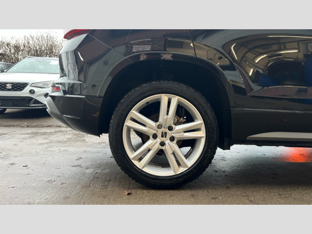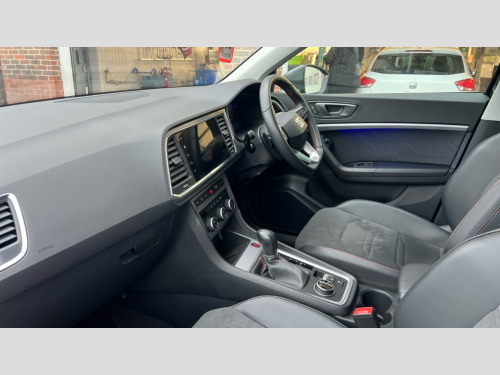 Seat Ateca 1.5 TSI EVO FR 5dr DSG 8" Digital cockpit, Colour multi-function on board computer display, Cruise control system with speed limiter, E-call, Outside temperature gauge, Progressive power assisted steering, SEAT drive profile with driving experience button - Normal, Sport, Eco and Individual mode, gearshift, steering and throttle response, Self parking functionality (includes front and rear parking sensors), Start/stop system, Tailgate, Trip computer, wired and wireless full link smartphone integration, Wireless phone charger, Steering wheel mounted audio/phone controls, Black roof rails, Black side window trim, Body colour bumpers, Body coloured wheel arch surrounds, Chrome front grille frame, Dark tinted rear windows, Daytime running lights, Door mirrors with welcome light silhouette, Dynamic headlight range control with self adjusting whilst driving, Electric adjustable/heated/folding door mirrors, Front and rear electric windows, Full LED headlamps with lens and LED front fog lamps with cornering function, Illuminated aluminium front door sill, LED 3rd brake light, LED rear tail lights with dynamic indicators, Rear exhaust tailpipe, Rear fog lights, Rear side wing doors, Rear wash/wipe, Roof spoiler, Variable front intermittent wipers, 12V socket in front, 3 seat bench in 2nd row, 60/40 split folding rear seat, Aluminium pedals, Dinamica upholstery with front comfort seats, Drawer under right front seat, Dual zone climate control, Front and rear head restraints, Front centre armrest, Front seat back storage pockets, Height adjustable driver and passenger seat with lumbar adjustment, ISOFIX points in outer rear seats with top tether anchorage points, Leather sports steering wheel and gear knob, Rear armrest and easy back seat release mechanism from boot, Single front passenger seat, Steering wheel mounted gearshift paddles, Convenience pack - Ateca, Interior lighting pack - Ateca, Navigation system pack with DAB - Ateca, Safety and driving pack with attention and drowsiness assist - Ateca, 3x3 point rear seatbelts, ABS, Traction control system (TCS), Electronic stability control (ESC) and Electronic differential lock system (XDS), Airbags - Driver and front passenger airbag with deactivation, front side, two curtain and driver's knee airbags, Electric parking brake with auto hold function, Front and rear seatbelt reminder, Front assist with autonomous emergency braking, Hill hold control, Manual rear child locks, Single tone horn, Tiredness recognition system, Tyre pressure monitoring system, Alarm, Keyless entry, Locking wheel bolts, Remote central locking, Chrome interior detailing, 18" Brillaint silver alloy wheels