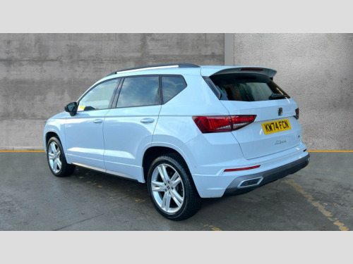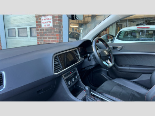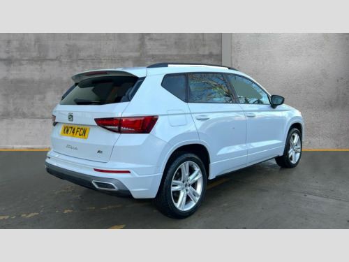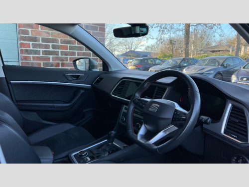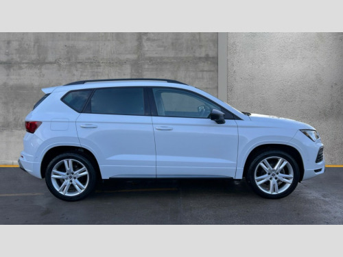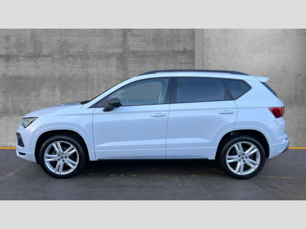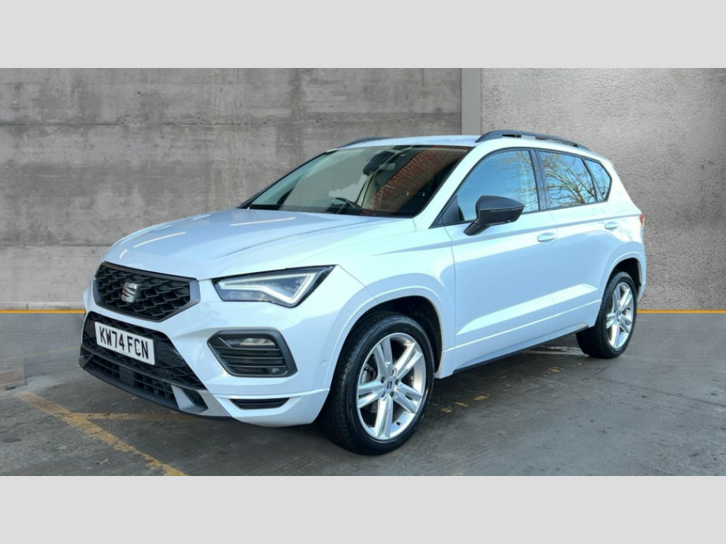 Seat Ateca 1.5 TSI EVO FR 5dr DSG 8" Digital cockpit, Colour multi-function on board computer display, Cruise control system with speed limiter, E-call, Outside temperature gauge, Progressive power assisted steering, SEAT drive profile with driving experience button - Normal, Sport, Eco and Individual mode, gearshift, steering and throttle response, Self parking functionality (includes front and rear parking sensors), Start/stop system, Tailgate, Trip computer, wired and wireless full link smartphone integration, Wireless phone charger, Steering wheel mounted audio/phone controls, Black roof rails, Black side window trim, Body colour bumpers, Body coloured wheel arch surrounds, Chrome front grille frame, Dark tinted rear windows, Daytime running lights, Door mirrors with welcome light silhouette, Dynamic headlight range control with self adjusting whilst driving, Electric adjustable/heated/folding door mirrors, Front and rear electric windows, Full LED headlamps with lens and LED front fog lamps with cornering function, Illuminated aluminium front door sill, LED 3rd brake light, LED rear tail lights with dynamic indicators, Rear exhaust tailpipe, Rear fog lights, Rear side wing doors, Rear wash/wipe, Roof spoiler, Variable front intermittent wipers, 12V socket in front, 3 seat bench in 2nd row, 60/40 split folding rear seat, Aluminium pedals, Dinamica upholstery with front comfort seats, Drawer under right front seat, Dual zone climate control, Front and rear head restraints, Front centre armrest, Front seat back storage pockets, Height adjustable driver and passenger seat with lumbar adjustment, ISOFIX points in outer rear seats with top tether anchorage points, Leather sports steering wheel and gear knob, Rear armrest and easy back seat release mechanism from boot, Single front passenger seat, Steering wheel mounted gearshift paddles, Convenience pack - Ateca, Interior lighting pack - Ateca, Navigation system pack with DAB - Ateca, Safety and driving pack with attention and drowsiness assist - Ateca, 3x3 point rear seatbelts, ABS, Traction control system (TCS), Electronic stability control (ESC) and Electronic differential lock system (XDS), Airbags - Driver and front passenger airbag with deactivation, front side, two curtain and driver's knee airbags, Electric parking brake with auto hold function, Front and rear seatbelt reminder, Front assist with autonomous emergency braking, Hill hold control, Manual rear child locks, Single tone horn, Tiredness recognition system, Tyre pressure monitoring system, Alarm, Keyless entry, Locking wheel bolts, Remote central locking, Chrome interior detailing, 18" Brillaint silver alloy wheels