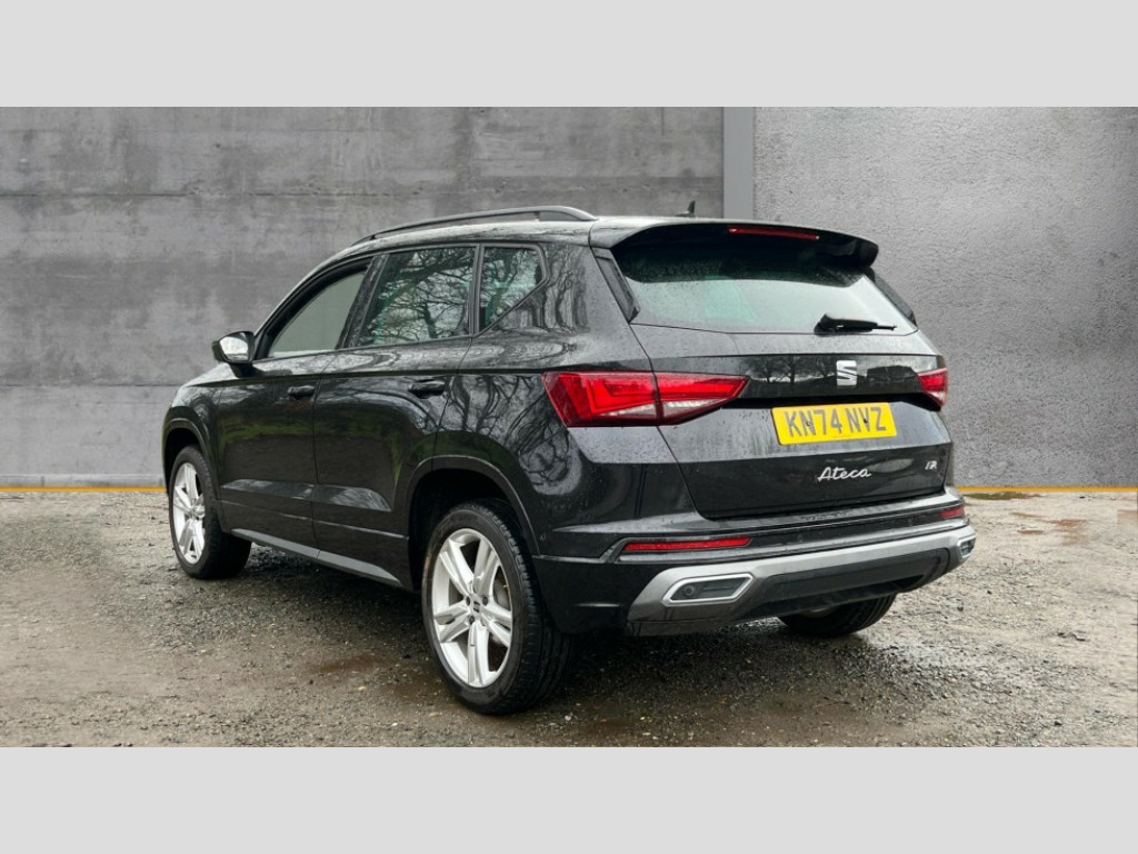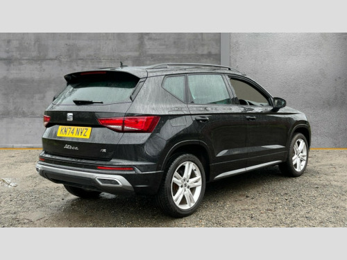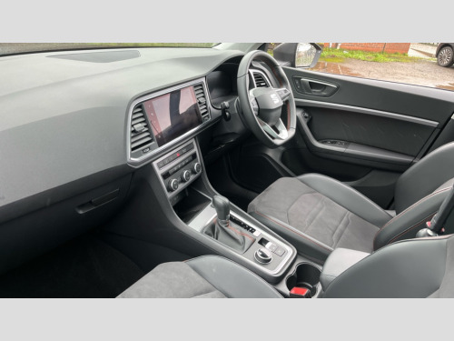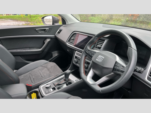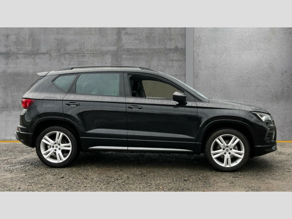 Seat Ateca 1.5 TSI EVO FR 5dr DSG 8" Digital cockpit, Colour multi-function on board computer display, Cruise control system with speed limiter, E-call, Outside temperature gauge, Progressive power assisted steering, SEAT drive profile with driving experience button - Normal, Sport, Eco and Individual mode, gearshift, steering and throttle response, Self parking functionality (includes front and rear parking sensors), Start/stop system, Tailgate, Trip computer, wired and wireless full link smartphone integration, Wireless phone charger, Steering wheel mounted audio/phone controls, Black roof rails, Black side window trim, Body colour bumpers, Body coloured wheel arch surrounds, Chrome front grille frame, Dark tinted rear windows, Daytime running lights, Door mirrors with welcome light silhouette, Dynamic headlight range control with self adjusting whilst driving, Electric adjustable/heated/folding door mirrors, Front and rear electric windows, Full LED headlamps with lens and LED front fog lamps with cornering function, Illuminated aluminium front door sill, LED 3rd brake light, LED rear tail lights with dynamic indicators, Rear exhaust tailpipe, Rear fog lights, Rear side wing doors, Rear wash/wipe, Roof spoiler, Variable front intermittent wipers, 12V socket in front, 3 seat bench in 2nd row, 60/40 split folding rear seat, Aluminium pedals, Dinamica upholstery with front comfort seats, Drawer under right front seat, Dual zone climate control, Front and rear head restraints, Front centre armrest, Front seat back storage pockets, Height adjustable driver and passenger seat with lumbar adjustment, ISOFIX points in outer rear seats with top tether anchorage points, Leather sports steering wheel and gear knob, Rear armrest and easy back seat release mechanism from boot, Single front passenger seat, Steering wheel mounted gearshift paddles, Convenience pack - Ateca, Interior lighting pack - Ateca, Navigation system pack with DAB - Ateca, Safety and driving pack with attention and drowsiness assist - Ateca, 3x3 point rear seatbelts, ABS, Traction control system (TCS), Electronic stability control (ESC) and Electronic differential lock system (XDS), Airbags - Driver and front passenger airbag with deactivation, front side, two curtain and driver's knee airbags, Electric parking brake with auto hold function, Front and rear seatbelt reminder, Front assist with autonomous emergency braking, Hill hold control, Manual rear child locks, Single tone horn, Tiredness recognition system, Tyre pressure monitoring system, Alarm, Keyless entry, Locking wheel bolts, Remote central locking, Chrome interior detailing, 18" Brillaint silver alloy wheels