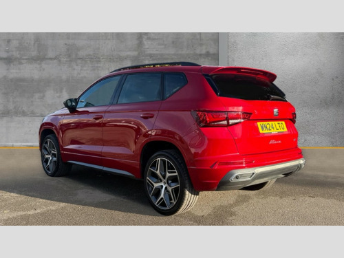 Seat Ateca 1.5 TSI EVO FR Sport 5dr 10" Digital cockpit, Cruise control system with speed limiter, E-call, Outside temperature gauge, Progressive power assisted steering, SEAT drive profile with driving experience button - Normal, Sport, Eco and Individual mode, steering and throttle response, Self parking functionality (includes front and rear parking sensors), Start/stop system, Tailgate, Trip computer, Wireless full link smartphone integration, Wireless phone charger, Steering wheel mounted audio/phone controls, Black roof rails, Black side window trim, Body colour bumpers, Body coloured wheel arch surrounds, Chrome front grille frame, Dark tinted rear windows, Daytime running lights, Door mirrors with welcome light silhouette, Dynamic headlight range control with self adjusting whilst driving, Electric adjustable/heated/folding door mirrors, Front and rear electric windows, Full LED headlamps with lens and LED front fog lamps with cornering function, Illuminated aluminium front door sill, LED rear tail lights with dynamic indicators, Rear fog lights, Rear roof spoiler, Rear side wing doors, Rear wash/wipe, Simulated exhaust pipes in chrome frame, Variable front intermittent wipers, 12v socket in front, 3 seat bench in 2nd row, 60/40 split folding rear seat, Aluminium pedals, Dual zone climate control, Electric adjustable driver seat with lumbar adjustment, Front and rear head restraints, Front centre armrest, Front seat back storage pockets, Heated front seats, Height adjustable passenger seats with lumbar adjustment, ISOFIX points in outer rear seats with top tether anchorage points, Leather steering wheel and gear knob, Leather upholstery with front comfort seats, Rear armrest and easy back seat release mechanism from boot, Single front passenger seat, Convenience pack - Ateca, Interior lighting pack - Ateca, Navigation system pack with DAB - Ateca, 3x3 point rear seatbelts, ABS, Traction control system (TCS), Electronic stability control (ESC) and Electronic differential lock system (XDS), Airbags - Driver and front passenger airbag with deactivation, front side, two curtain and driver's knee airbags, Electric parking brake with auto hold function, Front and rear seatbelt reminder, Front assist with autonomous emergency braking, Hill hold control, Manual rear child locks, Single tone horn, Tiredness recognition system, Traction control, Tyre pressure monitoring system, Alarm, Keyless entry, Locking wheel bolts, Remote central locking, Chrome interior detailing, 19" Exclusive machined alloy wheels with decorative inserts 36/7 in cosmo grey