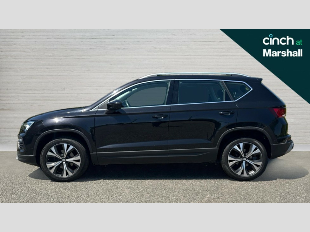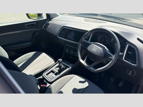 Seat Ateca 1.5 TSI EVO SE Technology 5dr Cruise control system with speed limiter, Outside temperature gauge, PAS, SEAT drive profile with driving experience button - Normal, Sport, Eco and Individual mode, steering and throttle response, Self parking functionality (includes front and rear parking sensors), Trip computer, Wireless full link smartphone integration, Wireless phone charger, Steering wheel mounted audio/phone controls, Black wheel arch surrounds, Body colour bumpers, Chrome front grille frame, Chrome roof rails, Chrome side window trim, Daytime running lights, Door mirrors with welcome light silhouette, Dynamic headlight range control with self adjusting whilst driving, Electric adjustable/heated/folding door mirrors, Front and rear electric windows, Full LED headlamps with lens and LED front fog lamps with cornering function, LED rear tail lights with dynamic indicators, Rear fog lights, Rear wash/wipe, Simulated exhaust pipes, 12v socket in front, 60/40 split folding rear seat, Cloth upholstery with front comfort seats, Dual zone climate control, Front and rear head restraints, Front centre armrest, Front seat back storage pockets, Height adjustable driver and passenger seat with lumbar adjustment, ISOFIX points in outer rear seats with top tether anchorage points, Leather steering wheel and gear knob, Rear armrest and easy back seat release mechanism from boot, Storage compartment in roof console for sunglass, Storage compartment under driver's seat, Interior lighting pack - Ateca, Navigation system pack with DAB - Ateca, 3x3 point rear seatbelts, ABS, Traction control system (TCS), Electronic stability control (ESC) and Electronic differential lock system (XDS), Airbags - Driver and front passenger airbag with deactivation, front side, two curtain and driver's knee airbags, Electric parking brake with auto hold function, Front and rear seatbelt reminder, Front assist with autonomous emergency braking, Hill hold control, Tiredness recognition system, Traction control, Tyre pressure monitoring system, Alarm, Keyless entry, Locking wheel bolts, Chrome interior detailing, 18" Performance machined alloy wheels 36/2 in nuclear grey