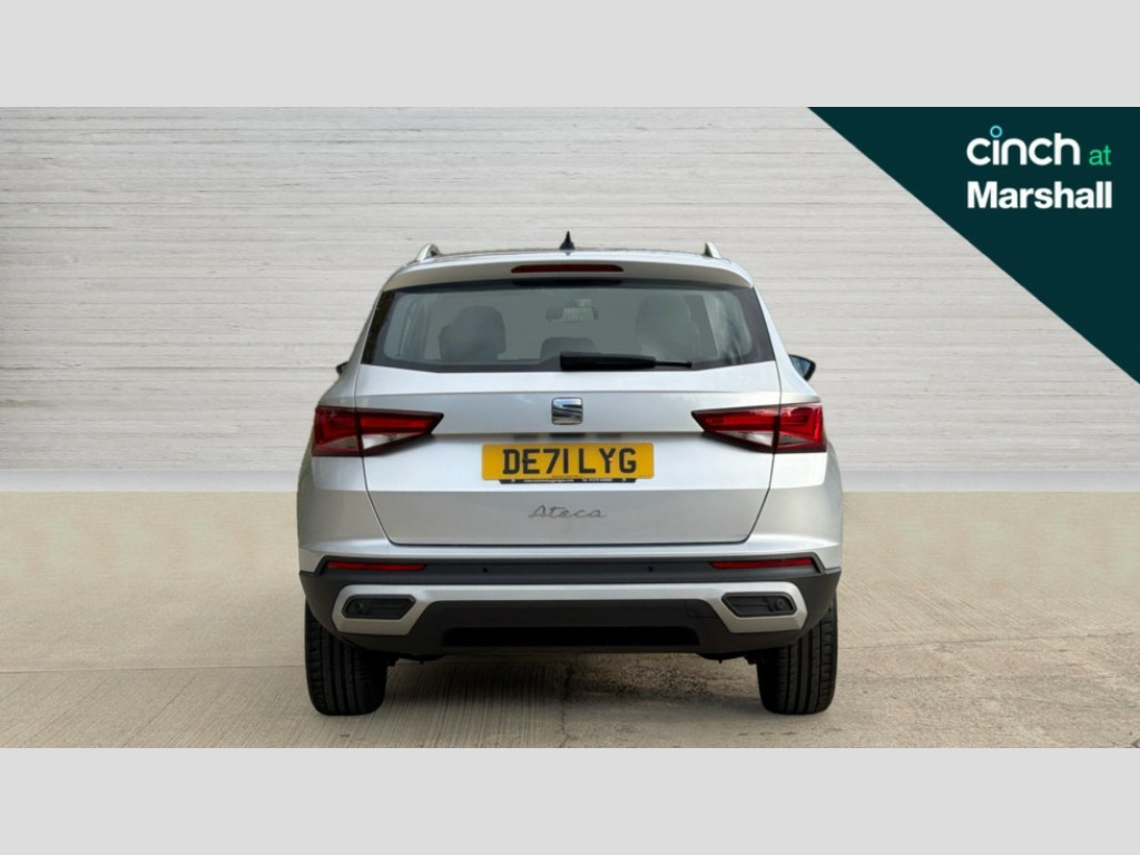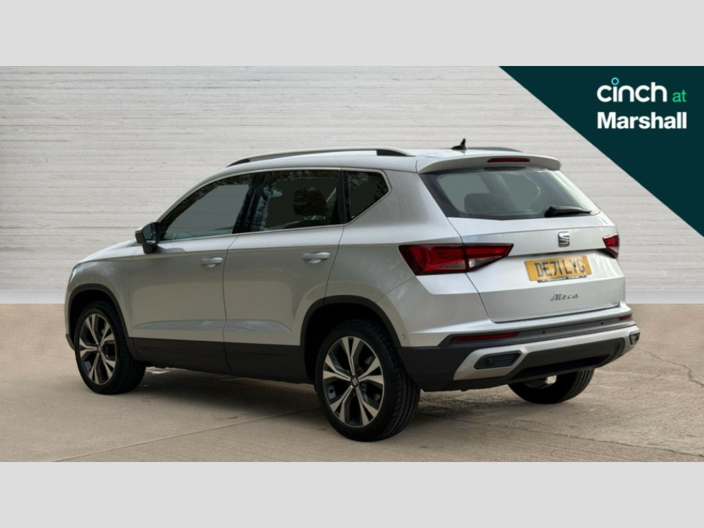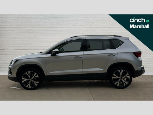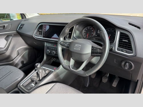 Seat Ateca 1.5 TSI EVO SE Technology 5dr Cruise control system with speed limiter, Outside temperature gauge, PAS, SEAT drive profile with driving experience button - Normal, Sport, Eco and Individual mode, steering and throttle response, Self parking functionality (includes front and rear parking sensors), Trip computer, Wireless full link smartphone integration, Wireless phone charger, Steering wheel mounted audio/phone controls, Black wheel arch surrounds, Body colour bumpers, Chrome front grille frame, Chrome roof rails, Chrome side window trim, Daytime running lights, Door mirrors with welcome light silhouette, Dynamic headlight range control with self adjusting whilst driving, Electric adjustable/heated/folding door mirrors, Front and rear electric windows, Full LED headlamps with lens and LED front fog lamps with cornering function, LED rear tail lights with dynamic indicators, Rear fog lights, Rear wash/wipe, Simulated exhaust pipes, 12V socket in front, 60/40 split folding rear seat, Cloth upholstery with front comfort seats, Dual zone climate control, Front and rear head restraints, Front centre armrest, Front seat back storage pockets, Height adjustable driver and passenger seat with lumbar adjustment, ISOFIX points in outer rear seats with top tether anchorage points, Leather steering wheel and gear knob, Rear armrest and easy back seat release mechanism from boot, Storage compartment under driver's seat, Interior lighting pack - Ateca, Navigation system pack with DAB - Ateca, 3x3 point rear seatbelts, ABS, Traction control system (TCS), Electronic stability control (ESC) and Electronic differential lock system (XDS), Airbags - Driver and front passenger airbag with deactivation, front side, two curtain and driver's knee airbags, Electric parking brake with auto hold function, Front and rear seatbelt reminder, Front assist with autonomous emergency braking, Hill hold control, Tiredness recognition system, Traction control, Tyre pressure monitoring system, Alarm, Keyless entry, Locking wheel bolts, Chrome interior detailing, 18" Performance machined alloy wheels 36/2 in nuclear grey