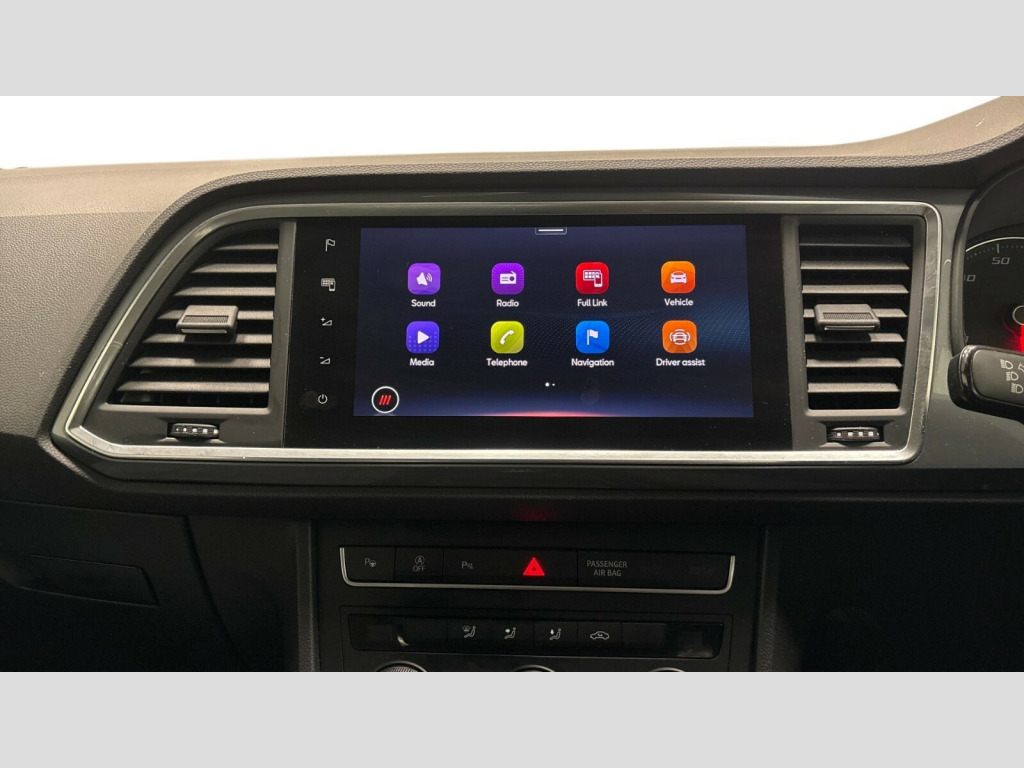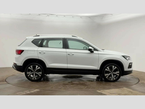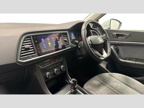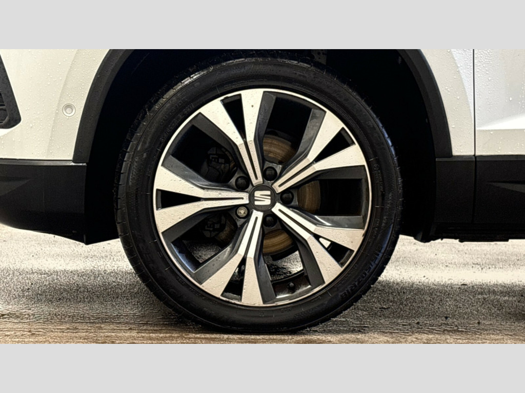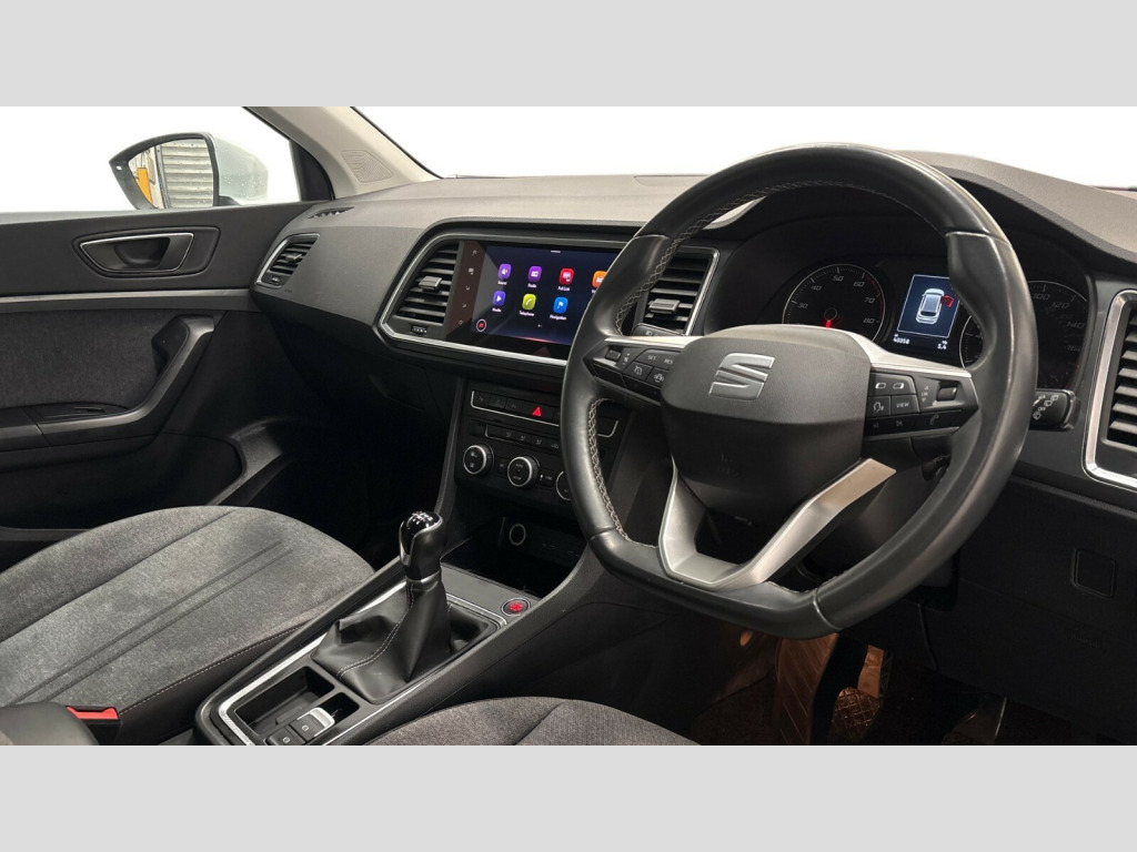 Seat Ateca 1.5 TSI EVO SE Technology 5dr Cruise control system with speed limiter, E-call, Outside temperature gauge, PAS, SEAT drive profile with driving experience button - Normal, Sport, Eco and Individual mode, steering and throttle response, Self parking functionality (includes front and rear parking sensors), Trip computer, Wireless full link smartphone integration, Wireless phone charger, Steering wheel mounted audio/phone controls, Black wheel arch surrounds, Body colour bumpers, Chrome front grille frame, Chrome roof rails, Chrome side window trim, Daytime running lights, Door mirrors with welcome light silhouette, Dynamic headlight range control with self adjusting whilst driving, Electric adjustable/heated/folding door mirrors, Front and rear electric windows, Full LED headlamps with lens and LED front fog lamps with cornering function, LED rear tail lights with dynamic indicators, Rear fog lights, Rear side wing doors, Rear wash/wipe, Simulated exhaust pipes, 12V socket in front, 3 seat bench in 2nd row, 60/40 split folding rear seat, Cloth upholstery with front comfort seats, Dual zone climate control, Front and rear head restraints, Front centre armrest, Front seat back storage pockets, Height adjustable driver and passenger seat with lumbar adjustment, ISOFIX points in outer rear seats with top tether anchorage points, Leather steering wheel and gear knob, Rear armrest and easy back seat release mechanism from boot, Single front passenger seat, Storage compartment under driver's seat, Interior lighting pack - Ateca, Navigation system pack with DAB - Ateca, 3x3 point rear seatbelts, ABS, Traction control system (TCS), Electronic stability control (ESC) and Electronic differential lock system (XDS), Airbags - Driver and front passenger airbag with deactivation, front side, two curtain and driver's knee airbags, Electric parking brake with auto hold function, Front and rear seatbelt reminder, Front assist with autonomous emergency braking, Hill hold control, Manual rear child locks, Tiredness recognition system, Traction control, Tyre pressure monitoring system, Alarm, Keyless entry, Locking wheel bolts, Chrome interior detailing, 18" Performance machined alloy wheels 36/2 in nuclear grey