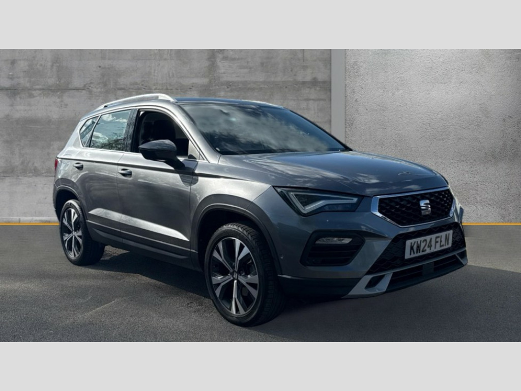 Seat Ateca 1.5 TSI EVO SE Technology 5dr DSG 8" Digital cockpit, Colour multi-function on board computer display, Cruise control system with speed limiter, E-call, Outside temperature gauge, PAS, SEAT drive profile with driving experience button - Normal, Sport, Eco and Individual mode, gearshift, steering and throttle response, Self parking functionality (includes front and rear parking sensors), Start/stop system, Tailgate, Trip computer, Wireless full link smartphone integration, Wireless phone charger, Steering wheel mounted audio/phone controls, Black wheel arch surrounds, Body colour bumpers, Chrome front grille frame, Chrome roof rails, Chrome side window trim, Daytime running lights, Door mirrors with welcome light silhouette, Dynamic headlight range control with self adjusting whilst driving, Electric adjustable/heated/folding door mirrors, Front and rear electric windows, Full LED headlamps with lens and LED front fog lamps with cornering function, LED 3rd brake light, LED rear tail lights, Rear exhaust tailpipe, Rear fog lights, Rear side wing doors, Rear wash/wipe, Variable front intermittent wipers, 12v socket in front, 3 seat bench in 2nd row, 60/40 split folding rear seat, Cloth upholstery with front comfort seats, Drawer under right front seat, Dual zone climate control, Front and rear head restraints, Front centre armrest, Front seat back storage pockets, Height adjustable driver and passenger seat with lumbar adjustment, ISOFIX points in outer rear seats with top tether anchorage points, Leather sports steering wheel and gear knob, Rear armrest and easy back seat release mechanism from boot, Single front passenger seat, Steering wheel mounted gearshift paddles, Convenience pack - Ateca, Interior lighting pack - Ateca, Navigation system pack with DAB - Ateca, Safety and driving pack with attention and drowsiness assist - Ateca, 3x3 point rear seatbelts, ABS, Traction control system (TCS), Electronic stability control (ESC) and Electronic differential lock system (XDS), Airbags - Driver and front passenger airbag with deactivation, front side, two curtain and driver's knee airbags, Electric parking brake with auto hold function, Front and rear seatbelt reminder, Front assist with autonomous emergency braking, Hill hold control, Manual rear child locks, Single tone horn, Tiredness recognition system, Tyre pressure monitoring system, Alarm, Keyless entry, Locking wheel bolts, Remote central locking, Chrome interior detailing, 18" Performance machined alloy wheels 36/2 in nuclear grey