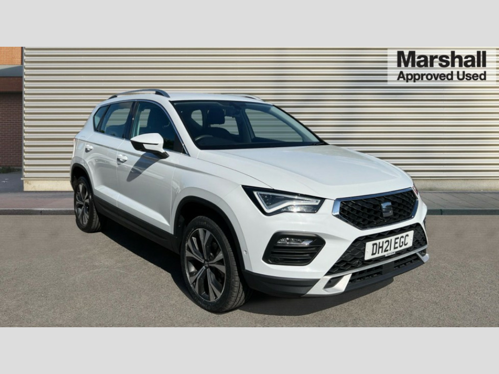 Seat Ateca 1.5 TSI EVO SE Technology 5dr DSG Cruise control system with speed limiter, Outside temperature gauge, PAS, SEAT drive profile with driving experience button - Normal, Sport, Eco and Individual mode, gearshift, steering and throttle response, Self parking functionality (includes front and rear parking sensors), Trip computer, Wireless full link smartphone integration, Wireless phone charger, Steering wheel mounted audio/phone controls, Black wheel arch surrounds, Body colour bumpers, Chrome front grille frame, Chrome roof rails, Chrome side window trim, Daytime running lights, Door mirrors with welcome light silhouette, Dynamic headlight range control with self adjusting whilst driving, Electric adjustable/heated/folding door mirrors, Front and rear electric windows, Full LED headlamps with lens and LED front fog lamps with cornering function, LED rear tail lights with dynamic indicators, Rear fog lights, Rear wash/wipe, Simulated exhaust pipes, 12v socket in front, 60/40 split folding rear seat, Cloth upholstery with front comfort seats, Dual zone climate control, Front and rear head restraints, Front centre armrest, Front seat back storage pockets, Height adjustable driver and passenger seat with lumbar adjustment, ISOFIX points in outer rear seats with top tether anchorage points, Leather steering wheel and gear knob, Rear armrest and easy back seat release mechanism from boot, Storage compartment under driver's seat, Interior lighting pack - Ateca, Navigation system pack with DAB - Ateca, 3x3 point rear seatbelts, ABS, Traction control system (TCS), Electronic stability control (ESC) and Electronic differential lock system (XDS), Airbags - Driver and front passenger airbag with deactivation, front side, two curtain and driver's knee airbags, Electric parking brake with auto hold function, Front and rear seatbelt reminder, Front assist with autonomous emergency braking, Hill hold control, Tiredness recognition system, Traction control, Tyre pressure monitoring system, Alarm, Keyless entry, Locking wheel bolts, Chrome interior detailing, 18" Performance machined alloy wheels 36/2 in nuclear grey