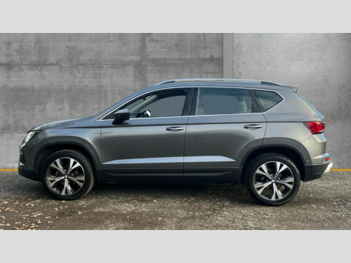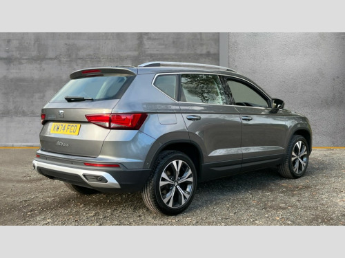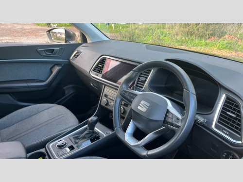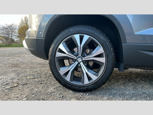 Seat Ateca 1.5 TSI EVO SE Technology 5dr DSG 8" Digital cockpit, Colour multi-function on board computer display, Cruise control system with speed limiter, E-call, Outside temperature gauge, PAS, SEAT drive profile with driving experience button - Normal, Sport, Eco and Individual mode, gearshift, steering and throttle response, Self parking functionality (includes front and rear parking sensors), Start/stop system, Tailgate, Trip computer, wired and wireless full link smartphone integration, Wireless phone charger, Steering wheel mounted audio/phone controls, Black wheel arch surrounds, Body colour bumpers, Chrome front grille frame, Chrome roof rails, Chrome side window trim, Daytime running lights, Door mirrors with welcome light silhouette, Dynamic headlight range control with self adjusting whilst driving, Electric adjustable/heated/folding door mirrors, Front and rear electric windows, Full LED headlamps with lens and LED front fog lamps with cornering function, LED 3rd brake light, LED rear tail lights, Rear exhaust tailpipe, Rear fog lights, Rear side wing doors, Rear wash/wipe, Variable front intermittent wipers, 12V socket in front, 3 seat bench in 2nd row, 60/40 split folding rear seat, Cloth upholstery with front comfort seats, Drawer under right front seat, Dual zone climate control, Front and rear head restraints, Front centre armrest, Front seat back storage pockets, Height adjustable driver and passenger seat with lumbar adjustment, ISOFIX points in outer rear seats with top tether anchorage points, Leather sports steering wheel and gear knob, Rear armrest and easy back seat release mechanism from boot, Single front passenger seat, Steering wheel mounted gearshift paddles, Convenience pack - Ateca, Interior lighting pack - Ateca, Navigation system pack with DAB - Ateca, Safety and driving pack with attention and drowsiness assist - Ateca, 3x3 point rear seatbelts, ABS, Traction control system (TCS), Electronic stability control (ESC) and Electronic differential lock system (XDS), Airbags - Driver and front passenger airbag with deactivation, front side, two curtain and driver's knee airbags, Electric parking brake with auto hold function, Front and rear seatbelt reminder, Front assist with autonomous emergency braking, Hill hold control, Manual rear child locks, Single tone horn, Tiredness recognition system, Tyre pressure monitoring system, Alarm, Keyless entry, Locking wheel bolts, Remote central locking, Chrome interior detailing, 18" Performance machined alloy wheels 36/2 in nuclear grey