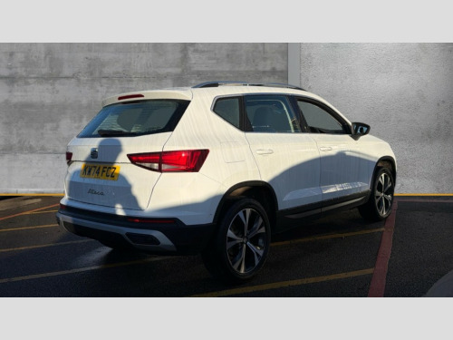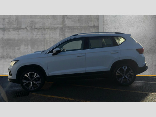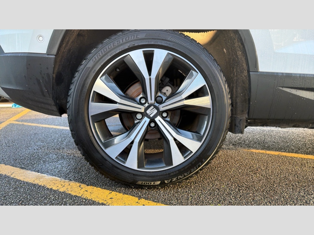 Seat Ateca 1.5 TSI EVO SE Technology 5dr DSG 8" Digital cockpit, Colour multi-function on board computer display, Cruise control system with speed limiter, E-call, Outside temperature gauge, PAS, SEAT drive profile with driving experience button - Normal, Sport, Eco and Individual mode, gearshift, steering and throttle response, Self parking functionality (includes front and rear parking sensors), Start/stop system, Tailgate, Trip computer, wired and wireless full link smartphone integration, Wireless phone charger, Steering wheel mounted audio/phone controls, Black wheel arch surrounds, Body colour bumpers, Chrome front grille frame, Chrome roof rails, Chrome side window trim, Daytime running lights, Door mirrors with welcome light silhouette, Dynamic headlight range control with self adjusting whilst driving, Electric adjustable/heated/folding door mirrors, Front and rear electric windows, Full LED headlamps with lens and LED front fog lamps with cornering function, LED 3rd brake light, LED rear tail lights, Rear exhaust tailpipe, Rear fog lights, Rear side wing doors, Rear wash/wipe, Variable front intermittent wipers, 12V socket in front, 3 seat bench in 2nd row, 60/40 split folding rear seat, Cloth upholstery with front comfort seats, Drawer under right front seat, Dual zone climate control, Front and rear head restraints, Front centre armrest, Front seat back storage pockets, Height adjustable driver and passenger seat with lumbar adjustment, ISOFIX points in outer rear seats with top tether anchorage points, Leather sports steering wheel and gear knob, Rear armrest and easy back seat release mechanism from boot, Single front passenger seat, Steering wheel mounted gearshift paddles, Convenience pack - Ateca, Interior lighting pack - Ateca, Navigation system pack with DAB - Ateca, Safety and driving pack with attention and drowsiness assist - Ateca, 3x3 point rear seatbelts, ABS, Traction control system (TCS), Electronic stability control (ESC) and Electronic differential lock system (XDS), Airbags - Driver and front passenger airbag with deactivation, front side, two curtain and driver's knee airbags, Electric parking brake with auto hold function, Front and rear seatbelt reminder, Front assist with autonomous emergency braking, Hill hold control, Manual rear child locks, Single tone horn, Tiredness recognition system, Tyre pressure monitoring system, Alarm, Keyless entry, Locking wheel bolts, Remote central locking, Chrome interior detailing, 18" Performance machined alloy wheels 36/2 in nuclear grey