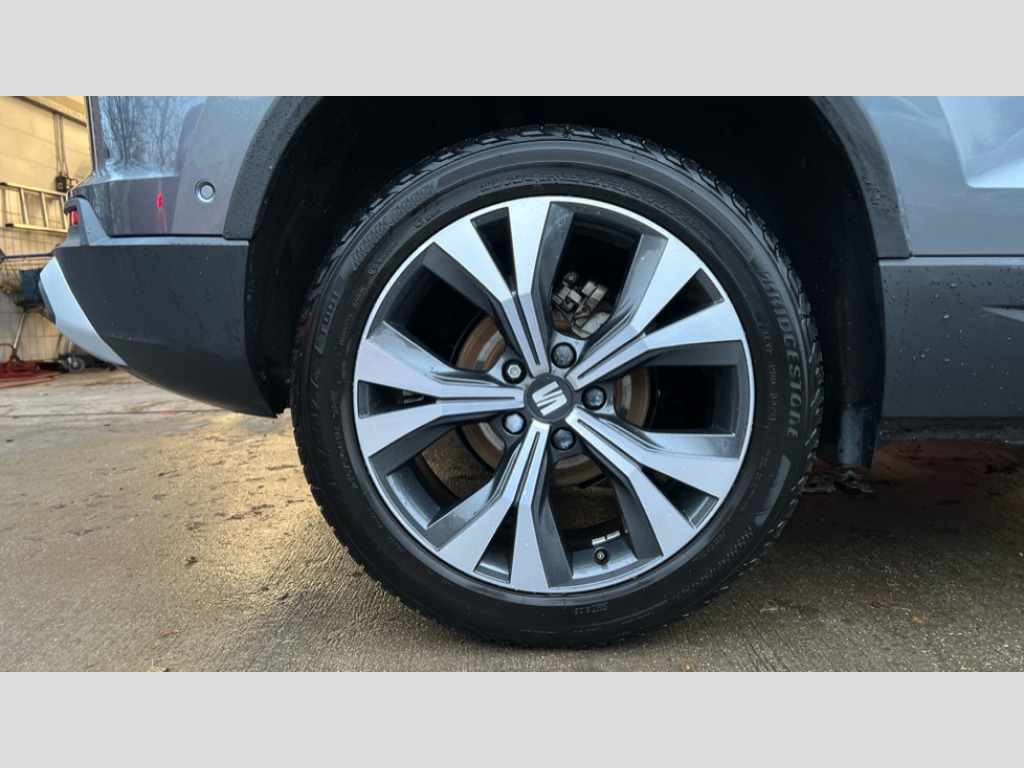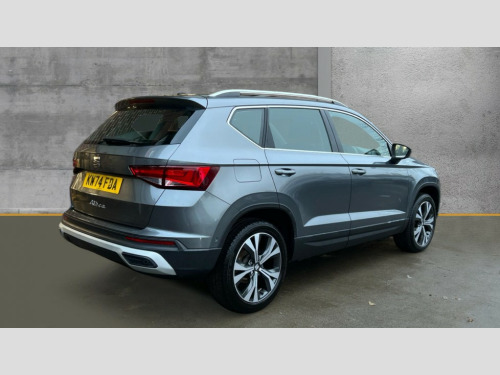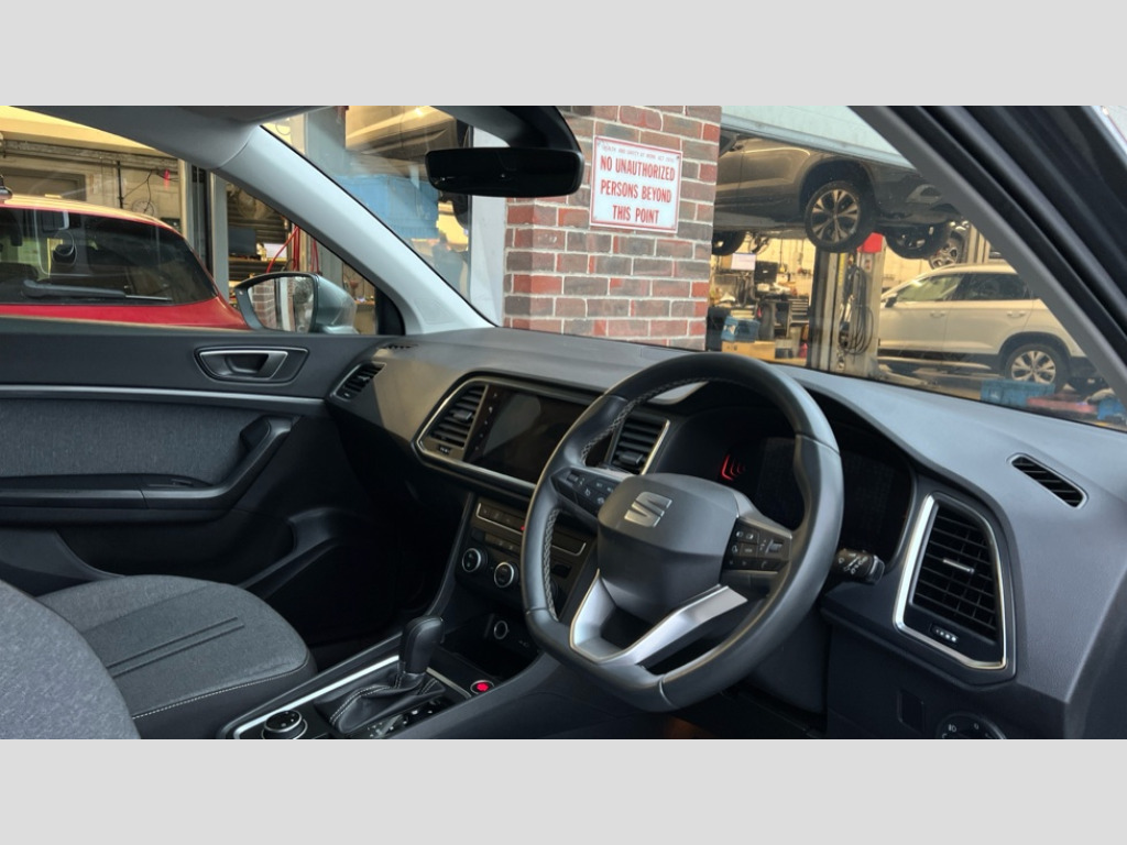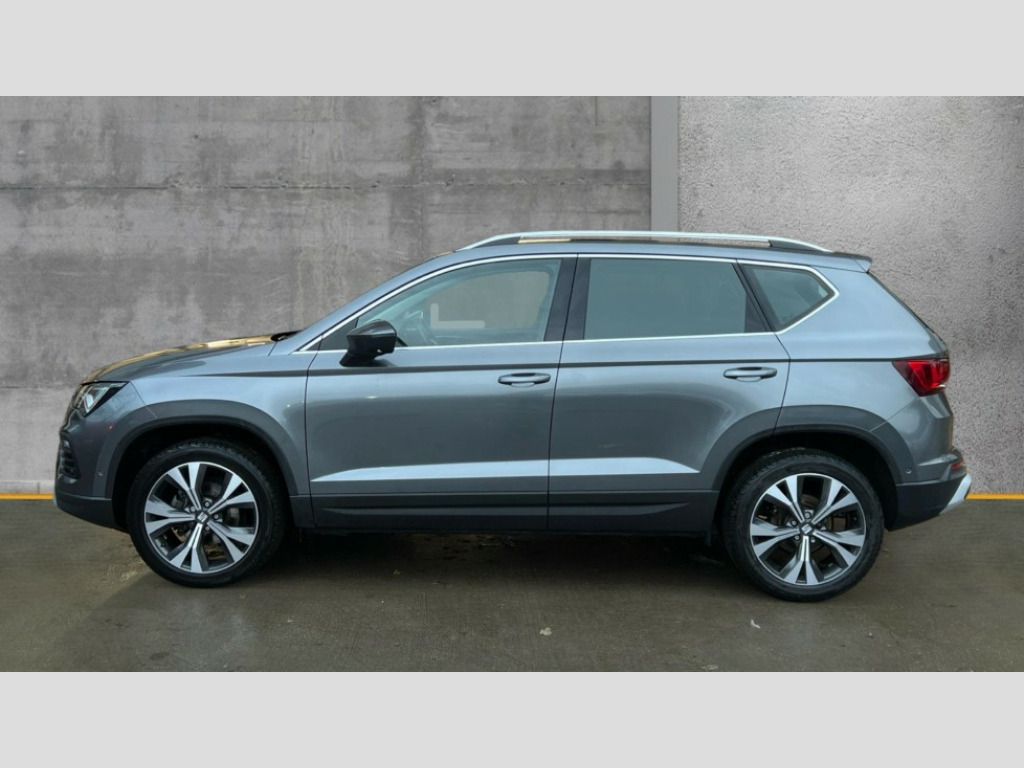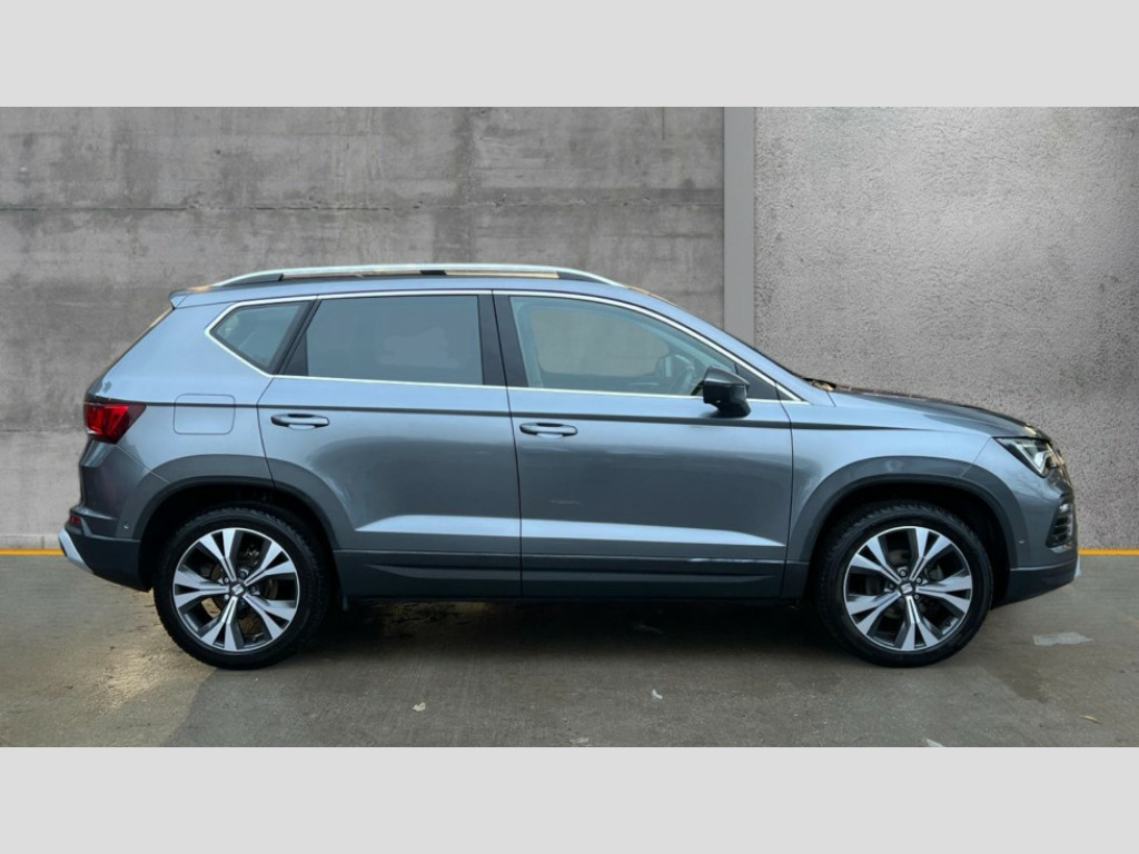 Seat Ateca 1.5 TSI EVO SE Technology 5dr DSG 8" Digital cockpit, Colour multi-function on board computer display, Cruise control system with speed limiter, E-call, Outside temperature gauge, PAS, SEAT drive profile with driving experience button - Normal, Sport, Eco and Individual mode, gearshift, steering and throttle response, Self parking functionality (includes front and rear parking sensors), Start/stop system, Tailgate, Trip computer, wired and wireless full link smartphone integration, Wireless phone charger, Steering wheel mounted audio/phone controls, Black wheel arch surrounds, Body colour bumpers, Chrome front grille frame, Chrome roof rails, Chrome side window trim, Daytime running lights, Door mirrors with welcome light silhouette, Dynamic headlight range control with self adjusting whilst driving, Electric adjustable/heated/folding door mirrors, Front and rear electric windows, Full LED headlamps with lens and LED front fog lamps with cornering function, LED 3rd brake light, LED rear tail lights, Rear exhaust tailpipe, Rear fog lights, Rear side wing doors, Rear wash/wipe, Variable front intermittent wipers, 12V socket in front, 3 seat bench in 2nd row, 60/40 split folding rear seat, Cloth upholstery with front comfort seats, Drawer under right front seat, Dual zone climate control, Front and rear head restraints, Front centre armrest, Front seat back storage pockets, Height adjustable driver and passenger seat with lumbar adjustment, ISOFIX points in outer rear seats with top tether anchorage points, Leather sports steering wheel and gear knob, Rear armrest and easy back seat release mechanism from boot, Single front passenger seat, Steering wheel mounted gearshift paddles, Convenience pack - Ateca, Interior lighting pack - Ateca, Navigation system pack with DAB - Ateca, Safety and driving pack with attention and drowsiness assist - Ateca, 3x3 point rear seatbelts, ABS, Traction control system (TCS), Electronic stability control (ESC) and Electronic differential lock system (XDS), Airbags - Driver and front passenger airbag with deactivation, front side, two curtain and driver's knee airbags, Electric parking brake with auto hold function, Front and rear seatbelt reminder, Front assist with autonomous emergency braking, Hill hold control, Manual rear child locks, Single tone horn, Tiredness recognition system, Tyre pressure monitoring system, Alarm, Keyless entry, Locking wheel bolts, Remote central locking, Chrome interior detailing, 18" Performance machined alloy wheels 36/2 in nuclear grey