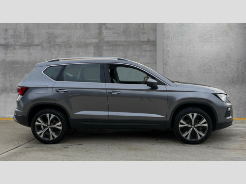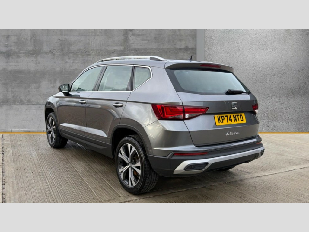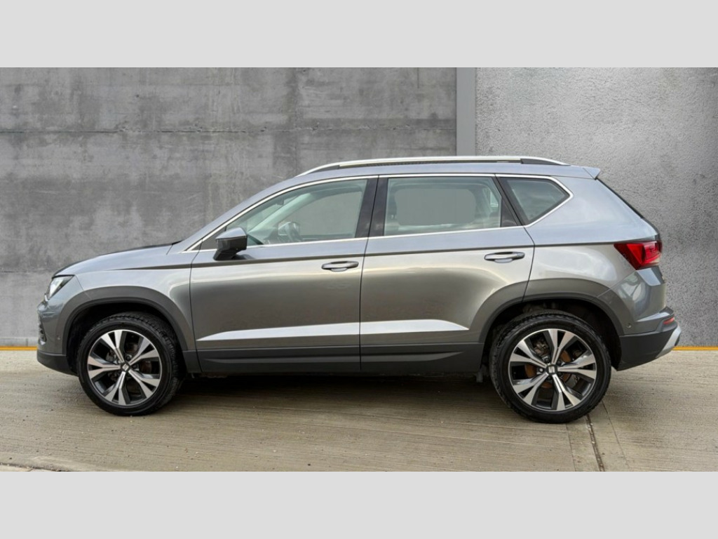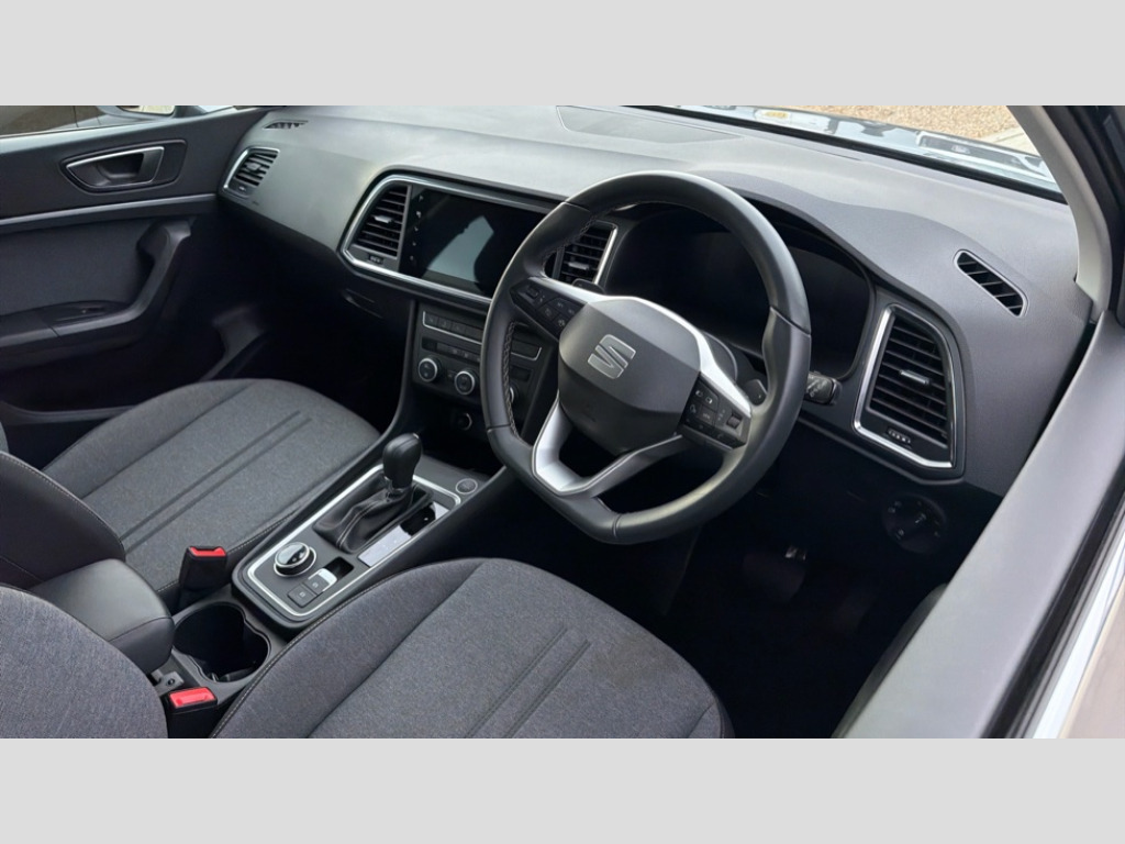 Seat Ateca 1.5 TSI EVO SE Technology 5dr DSG 8" Digital cockpit, Colour multi-function on board computer display, Cruise control system with speed limiter, E-call, Outside temperature gauge, PAS, SEAT drive profile with driving experience button - Normal, Sport, Eco and Individual mode, gearshift, steering and throttle response, Self parking functionality (includes front and rear parking sensors), Start/stop system, Tailgate, Trip computer, wired and wireless full link smartphone integration, Wireless phone charger, Steering wheel mounted audio/phone controls, Black wheel arch surrounds, Body colour bumpers, Chrome front grille frame, Chrome roof rails, Chrome side window trim, Daytime running lights, Door mirrors with welcome light silhouette, Dynamic headlight range control with self adjusting whilst driving, Electric adjustable/heated/folding door mirrors, Front and rear electric windows, Full LED headlamps with lens and LED front fog lamps with cornering function, LED 3rd brake light, LED rear tail lights, Rear exhaust tailpipe, Rear fog lights, Rear side wing doors, Rear wash/wipe, Variable front intermittent wipers, 12V socket in front, 3 seat bench in 2nd row, 60/40 split folding rear seat, Cloth upholstery with front comfort seats, Drawer under right front seat, Dual zone climate control, Front and rear head restraints, Front centre armrest, Front seat back storage pockets, Height adjustable driver and passenger seat with lumbar adjustment, ISOFIX points in outer rear seats with top tether anchorage points, Leather sports steering wheel and gear knob, Rear armrest and easy back seat release mechanism from boot, Single front passenger seat, Steering wheel mounted gearshift paddles, Convenience pack - Ateca, Interior lighting pack - Ateca, Navigation system pack with DAB - Ateca, Safety and driving pack with attention and drowsiness assist - Ateca, 3x3 point rear seatbelts, ABS, Traction control system (TCS), Electronic stability control (ESC) and Electronic differential lock system (XDS), Airbags - Driver and front passenger airbag with deactivation, front side, two curtain and driver's knee airbags, Electric parking brake with auto hold function, Front and rear seatbelt reminder, Front assist with autonomous emergency braking, Hill hold control, Manual rear child locks, Single tone horn, Tiredness recognition system, Tyre pressure monitoring system, Alarm, Keyless entry, Locking wheel bolts, Remote central locking, Chrome interior detailing, 18" Performance machined alloy wheels 36/2 in nuclear grey