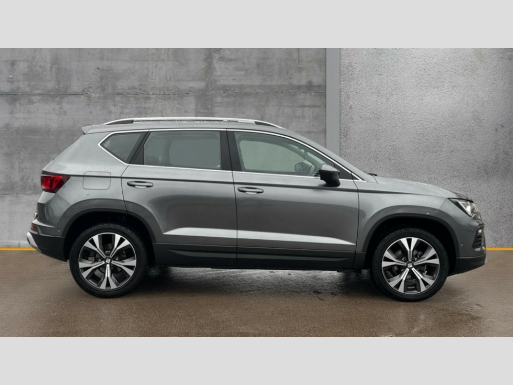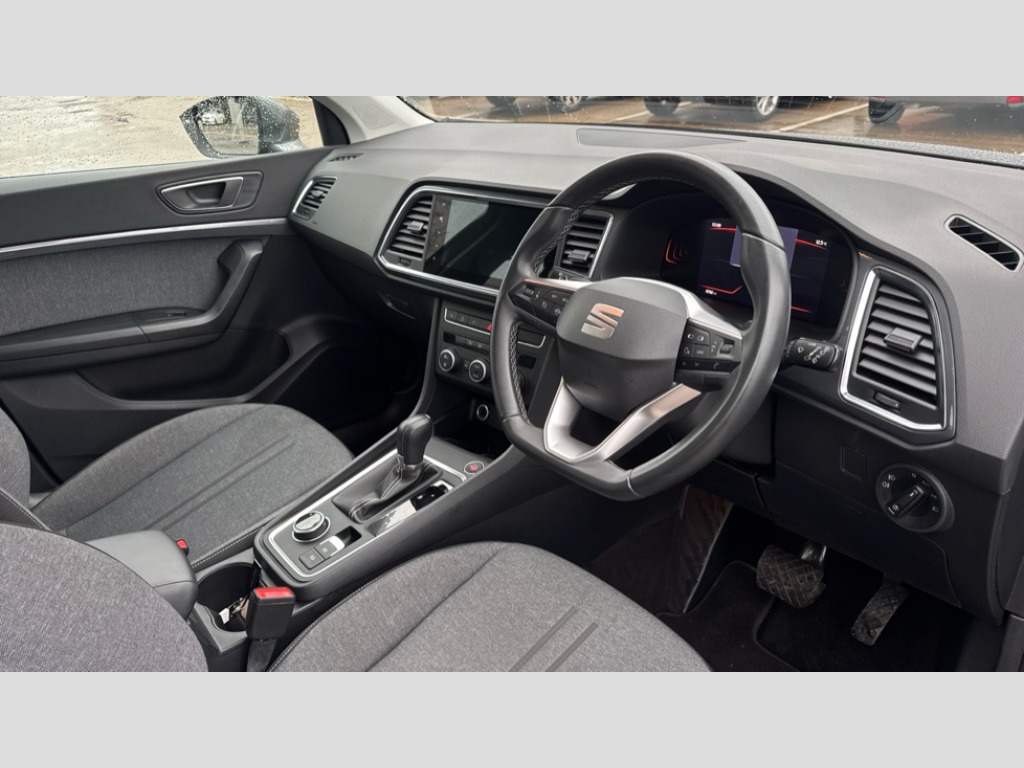 Seat Ateca 1.5 TSI EVO SE Technology 5dr DSG 8" Digital cockpit, Colour multi-function on board computer display, Cruise control system with speed limiter, E-call, Outside temperature gauge, PAS, SEAT drive profile with driving experience button - Normal, Sport, Eco and Individual mode, gearshift, steering and throttle response, Self parking functionality (includes front and rear parking sensors), Start/stop system, Tailgate, Trip computer, wired and wireless full link smartphone integration, Wireless phone charger, Steering wheel mounted audio/phone controls, Black wheel arch surrounds, Body colour bumpers, Chrome front grille frame, Chrome roof rails, Chrome side window trim, Daytime running lights, Door mirrors with welcome light silhouette, Dynamic headlight range control with self adjusting whilst driving, Electric adjustable/heated/folding door mirrors, Front and rear electric windows, Full LED headlamps with lens and LED front fog lamps with cornering function, LED 3rd brake light, LED rear tail lights, Rear exhaust tailpipe, Rear fog lights, Rear side wing doors, Rear wash/wipe, Variable front intermittent wipers, 12V socket in front, 3 seat bench in 2nd row, 60/40 split folding rear seat, Cloth upholstery with front comfort seats, Drawer under right front seat, Dual zone climate control, Front and rear head restraints, Front centre armrest, Front seat back storage pockets, Height adjustable driver and passenger seat with lumbar adjustment, ISOFIX points in outer rear seats with top tether anchorage points, Leather sports steering wheel and gear knob, Rear armrest and easy back seat release mechanism from boot, Single front passenger seat, Steering wheel mounted gearshift paddles, Convenience pack - Ateca, Interior lighting pack - Ateca, Navigation system pack with DAB - Ateca, Safety and driving pack with attention and drowsiness assist - Ateca, 3x3 point rear seatbelts, ABS, Traction control system (TCS), Electronic stability control (ESC) and Electronic differential lock system (XDS), Airbags - Driver and front passenger airbag with deactivation, front side, two curtain and driver's knee airbags, Electric parking brake with auto hold function, Front and rear seatbelt reminder, Front assist with autonomous emergency braking, Hill hold control, Manual rear child locks, Single tone horn, Tiredness recognition system, Tyre pressure monitoring system, Alarm, Keyless entry, Locking wheel bolts, Remote central locking, Chrome interior detailing, 18" Performance machined alloy wheels 36/2 in nuclear grey