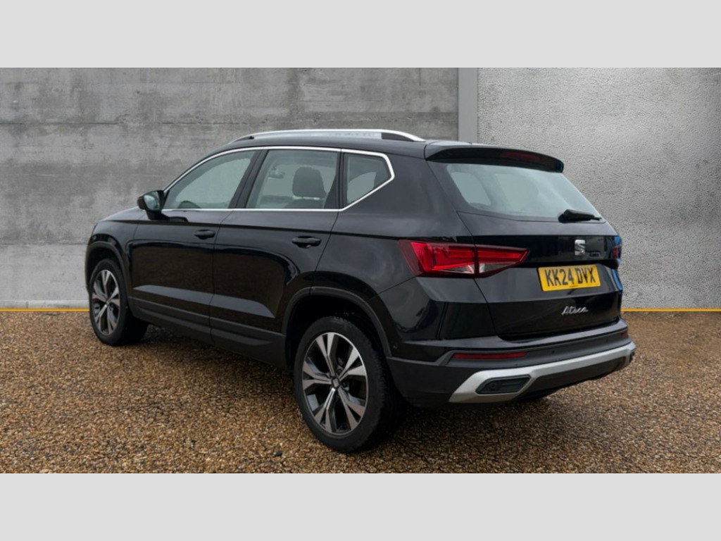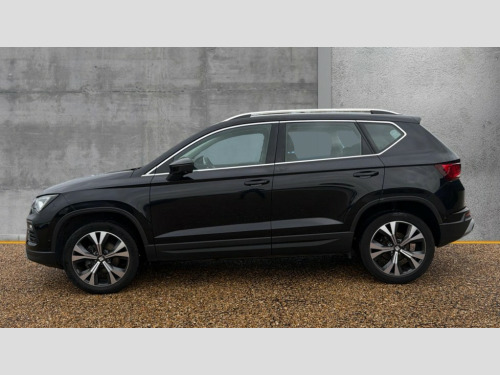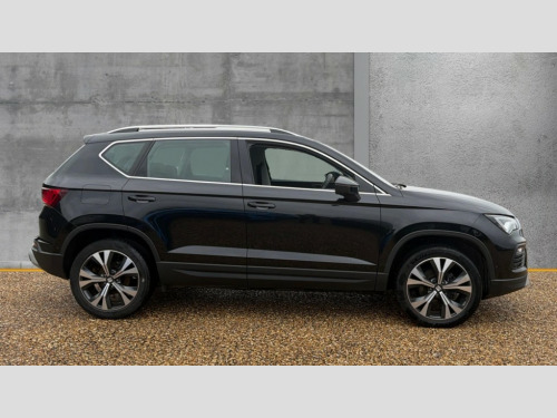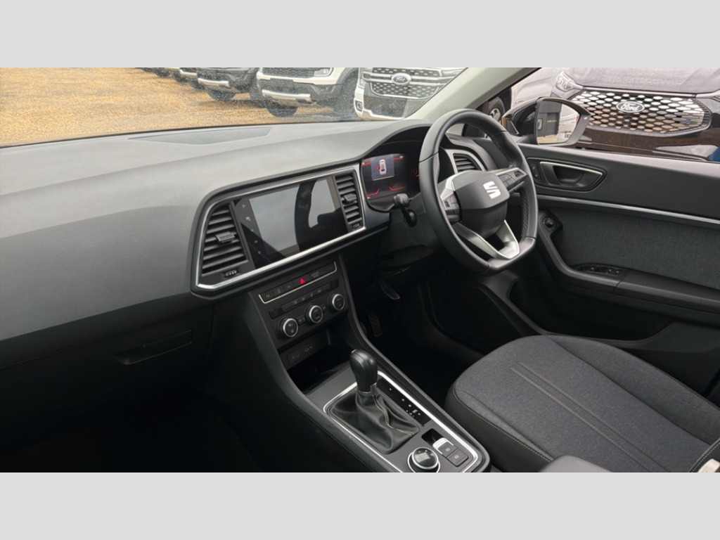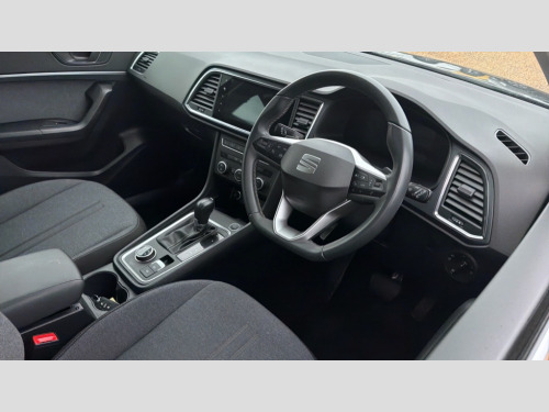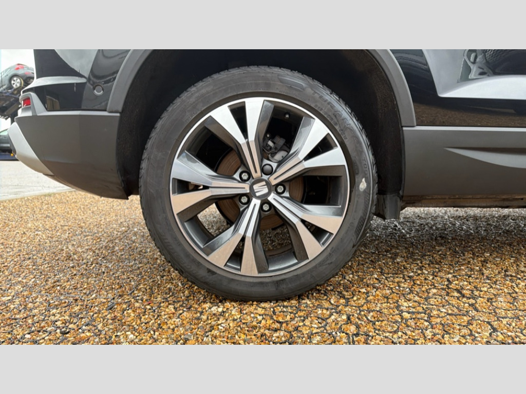 Seat Ateca 1.5 TSI EVO SE Technology 5dr DSG 8" Digital cockpit, Colour multi-function on board computer display, Cruise control system with speed limiter, E-call, Outside temperature gauge, PAS, SEAT drive profile with driving experience button - Normal, Sport, Eco and Individual mode, gearshift, steering and throttle response, Self parking functionality (includes front and rear parking sensors), Start/stop system, Tailgate, Trip computer, wired and wireless full link smartphone integration, Wireless phone charger, Steering wheel mounted audio/phone controls, Black wheel arch surrounds, Body colour bumpers, Chrome front grille frame, Chrome roof rails, Chrome side window trim, Daytime running lights, Door mirrors with welcome light silhouette, Dynamic headlight range control with self adjusting whilst driving, Electric adjustable/heated/folding door mirrors, Front and rear electric windows, Full LED headlamps with lens and LED front fog lamps with cornering function, LED 3rd brake light, LED rear tail lights, Rear exhaust tailpipe, Rear fog lights, Rear side wing doors, Rear wash/wipe, Variable front intermittent wipers, 12V socket in front, 3 seat bench in 2nd row, 60/40 split folding rear seat, Cloth upholstery with front comfort seats, Drawer under right front seat, Dual zone climate control, Front and rear head restraints, Front centre armrest, Front seat back storage pockets, Height adjustable driver and passenger seat with lumbar adjustment, ISOFIX points in outer rear seats with top tether anchorage points, Leather sports steering wheel and gear knob, Rear armrest and easy back seat release mechanism from boot, Single front passenger seat, Steering wheel mounted gearshift paddles, Convenience pack - Ateca, Interior lighting pack - Ateca, Navigation system pack with DAB - Ateca, Safety and driving pack with attention and drowsiness assist - Ateca, 3x3 point rear seatbelts, ABS, Traction control system (TCS), Electronic stability control (ESC) and Electronic differential lock system (XDS), Airbags - Driver and front passenger airbag with deactivation, front side, two curtain and driver's knee airbags, Electric parking brake with auto hold function, Front and rear seatbelt reminder, Front assist with autonomous emergency braking, Hill hold control, Manual rear child locks, Single tone horn, Tiredness recognition system, Tyre pressure monitoring system, Alarm, Keyless entry, Locking wheel bolts, Remote central locking, Chrome interior detailing, 18" Performance machined alloy wheels 36/2 in nuclear grey