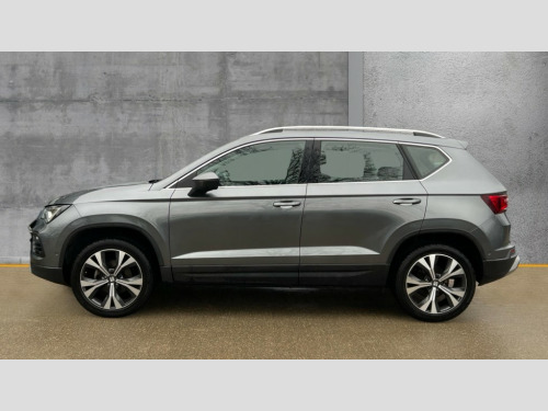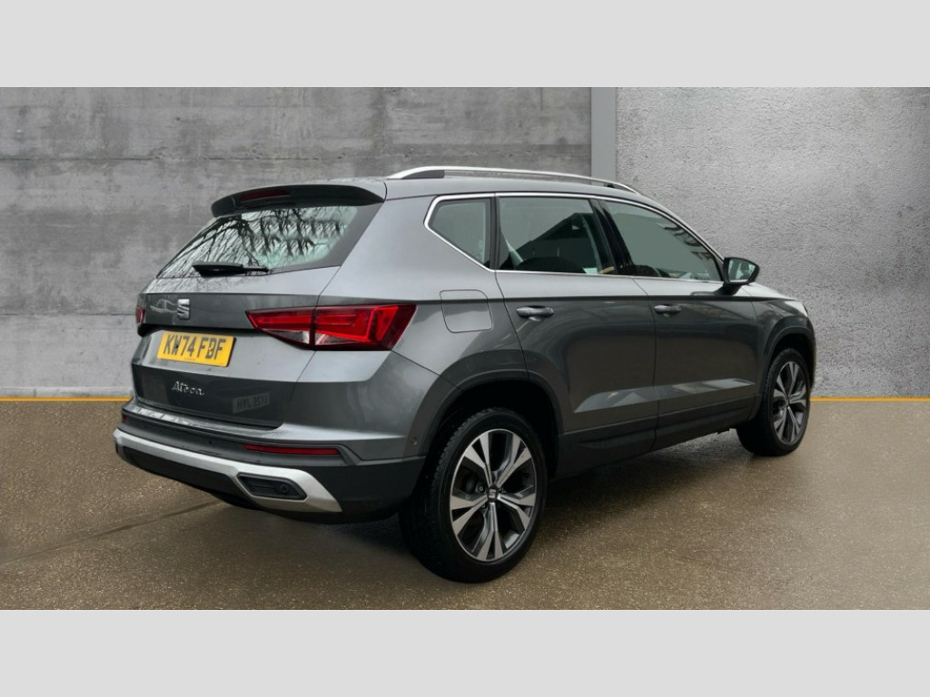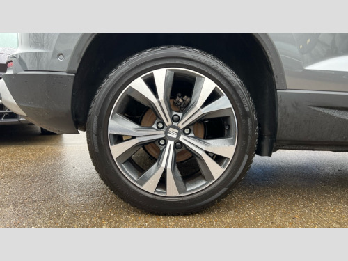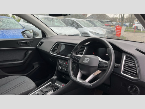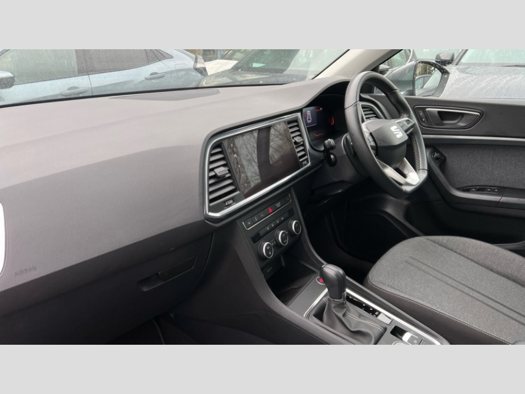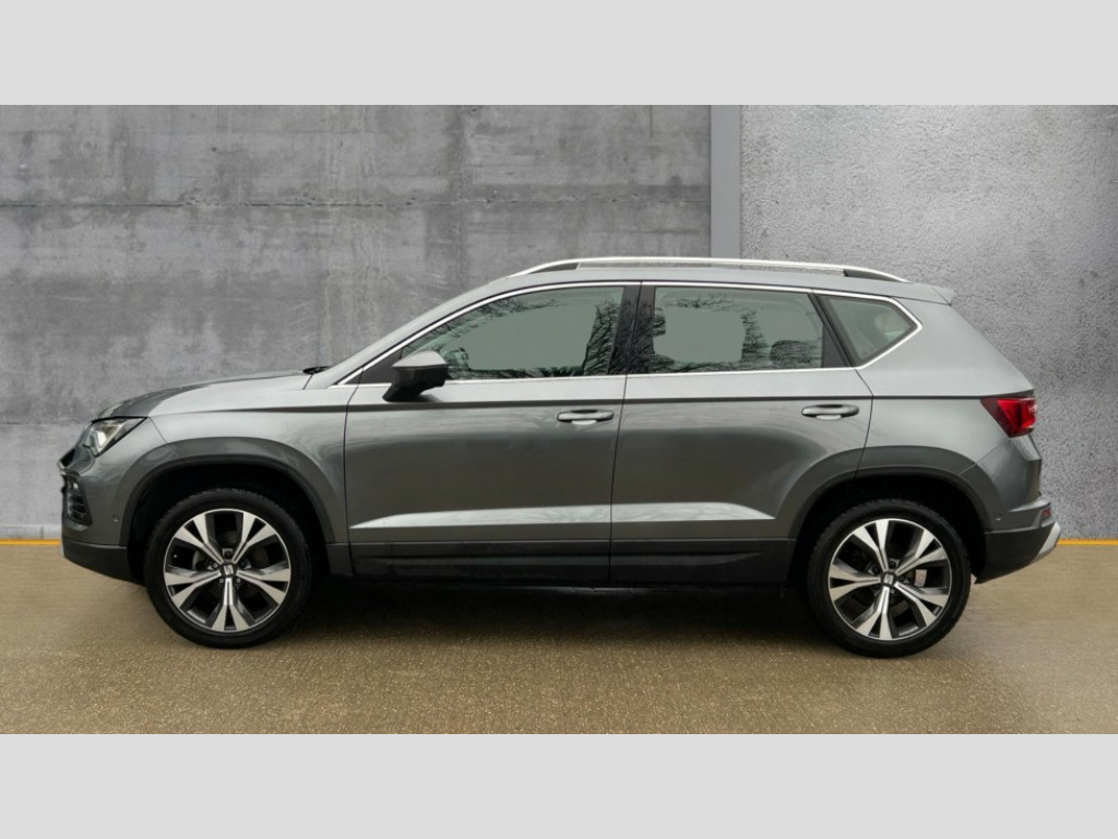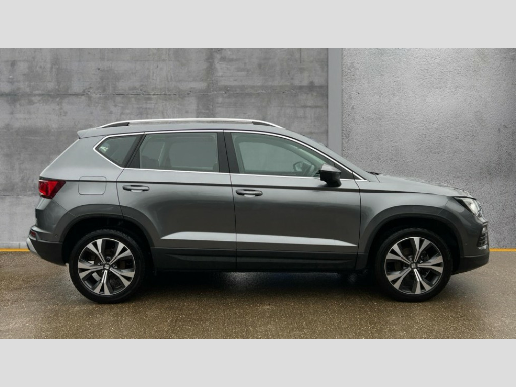Seat Ateca 1.5 TSI EVO SE Technology 5dr DSG 8" Digital cockpit, Colour multi-function on board computer display, Cruise control system with speed limiter, E-call, Outside temperature gauge, PAS, SEAT drive profile with driving experience button - Normal, Sport, Eco and Individual mode, gearshift, steering and throttle response, Self parking functionality (includes front and rear parking sensors), Start/stop system, Tailgate, Trip computer, wired and wireless full link smartphone integration, Wireless phone charger, Steering wheel mounted audio/phone controls, Black wheel arch surrounds, Body colour bumpers, Chrome front grille frame, Chrome roof rails, Chrome side window trim, Daytime running lights, Door mirrors with welcome light silhouette, Dynamic headlight range control with self adjusting whilst driving, Electric adjustable/heated/folding door mirrors, Front and rear electric windows, Full LED headlamps with lens and LED front fog lamps with cornering function, LED 3rd brake light, LED rear tail lights, Rear exhaust tailpipe, Rear fog lights, Rear side wing doors, Rear wash/wipe, Variable front intermittent wipers, 12V socket in front, 3 seat bench in 2nd row, 60/40 split folding rear seat, Cloth upholstery with front comfort seats, Drawer under right front seat, Dual zone climate control, Front and rear head restraints, Front centre armrest, Front seat back storage pockets, Height adjustable driver and passenger seat with lumbar adjustment, ISOFIX points in outer rear seats with top tether anchorage points, Leather sports steering wheel and gear knob, Rear armrest and easy back seat release mechanism from boot, Single front passenger seat, Steering wheel mounted gearshift paddles, Convenience pack - Ateca, Interior lighting pack - Ateca, Navigation system pack with DAB - Ateca, Safety and driving pack with attention and drowsiness assist - Ateca, 3x3 point rear seatbelts, ABS, Traction control system (TCS), Electronic stability control (ESC) and Electronic differential lock system (XDS), Airbags - Driver and front passenger airbag with deactivation, front side, two curtain and driver's knee airbags, Electric parking brake with auto hold function, Front and rear seatbelt reminder, Front assist with autonomous emergency braking, Hill hold control, Manual rear child locks, Single tone horn, Tiredness recognition system, Tyre pressure monitoring system, Alarm, Keyless entry, Locking wheel bolts, Remote central locking, Chrome interior detailing, 18" Performance machined alloy wheels 36/2 in nuclear grey