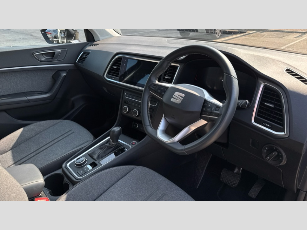Seat Ateca 1.5 TSI EVO SE Technology 5dr DSG 8" Digital cockpit, Colour multi-function on board computer display, Cruise control system with speed limiter, E-call, Outside temperature gauge, PAS, SEAT drive profile with driving experience button - Normal, Sport, Eco and Individual mode, gearshift, steering and throttle response, Self parking functionality (includes front and rear parking sensors), Start/stop system, Tailgate, Trip computer, Wireless full link smartphone integration, Wireless phone charger, Steering wheel mounted audio/phone controls, Black wheel arch surrounds, Body colour bumpers, Chrome front grille frame, Chrome roof rails, Chrome side window trim, Daytime running lights, Door mirrors with welcome light silhouette, Dynamic headlight range control with self adjusting whilst driving, Electric adjustable/heated/folding door mirrors, Front and rear electric windows, Full LED headlamps with lens and LED front fog lamps with cornering function, LED 3rd brake light, LED rear tail lights, Rear exhaust tailpipe, Rear fog lights, Rear side wing doors, Rear wash/wipe, Variable front intermittent wipers, 12v socket in front, 3 seat bench in 2nd row, 60/40 split folding rear seat, Cloth upholstery with front comfort seats, Drawer under right front seat, Dual zone climate control, Front and rear head restraints, Front centre armrest, Front seat back storage pockets, Height adjustable driver and passenger seat with lumbar adjustment, ISOFIX points in outer rear seats with top tether anchorage points, Leather sports steering wheel and gear knob, Rear armrest and easy back seat release mechanism from boot, Single front passenger seat, Steering wheel mounted gearshift paddles, Convenience pack - Ateca, Interior lighting pack - Ateca, Navigation system pack with DAB - Ateca, Safety and driving pack with attention and drowsiness assist - Ateca, 3x3 point rear seatbelts, ABS, Traction control system (TCS), Electronic stability control (ESC) and Electronic differential lock system (XDS), Airbags - Driver and front passenger airbag with deactivation, front side, two curtain and driver's knee airbags, Electric parking brake with auto hold function, Front and rear seatbelt reminder, Front assist with autonomous emergency braking, Hill hold control, Manual rear child locks, Single tone horn, Tiredness recognition system, Tyre pressure monitoring system, Alarm, Keyless entry, Locking wheel bolts, Remote central locking, Chrome interior detailing, 18" Performance machined alloy wheels 36/2 in nuclear grey