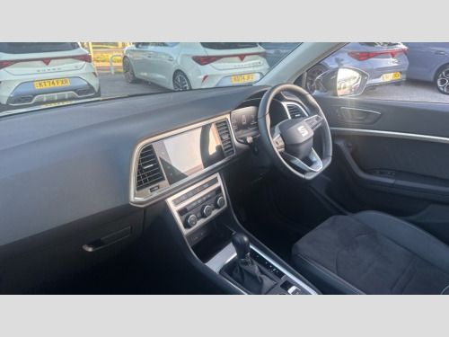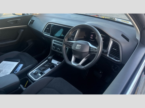 Seat Ateca 1.5 TSI EVO Xperience 5dr DSG 8" Digital cockpit, Colour multi-function on board computer display, E-call, Outside temperature gauge, Progressive power assisted steering, Rear view camera, SEAT drive profile with driving experience button - Normal, Sport, Eco and Individual mode, gearshift, steering and throttle response, Self parking functionality (includes front and rear parking sensors), Start/stop system, Tailgate, Trip computer, Wireless full link smartphone integration, Wireless phone charger, Steering wheel mounted audio/phone controls, Black wheel arch surrounds, Body colour bumpers, Chrome front grille frame, Chrome roof rails, Chrome side window trim, Climacoat windscreen, Dark tinted rear windows, Daytime running lights, Door mirrors with welcome light silhouette, Dynamic headlight range control with self adjusting whilst driving, Electric adjustable/heated/folding door mirrors, Front and rear electric windows, Front grille hot stamping, Full LED headlamps with lens and LED front fog lamps with cornering function, Illuminated aluminium front door sill, LED 3rd brake light, LED rear tail lights with dynamic indicators, Rear exhaust tailpipe, Rear fog lights, Rear side wing doors, Rear wash/wipe, Reflex silver side mouldings, Variable front intermittent wipers, 12v socket in front, 3 seat bench in 2nd row, 60/40 split folding rear seat, Dinamica upholstery with front comfort seats, Drawer under right front seat, Dual zone climate control, Front and rear head restraints, Front centre armrest, Front seat back storage pockets, Height adjustable driver and passenger seat with lumbar adjustment, ISOFIX points in outer rear seats with top tether anchorage points, Leather sports steering wheel and gear knob, Rear armrest and easy back seat release mechanism from boot, Single front passenger seat, Steering wheel mounted gearshift paddles, Convenience pack - Ateca, Interior lighting pack - Ateca, Navigation system pack with DAB - Ateca, Safety and driving pack (M) - Ateca, Safety and driving pack with attention and drowsiness assist - Ateca, 3x3 point rear seatbelts, ABS, Traction control system (TCS), Electronic stability control (ESC) and Electronic differential lock system (XDS), Airbags - Driver and front passenger airbag with deactivation, front side, two curtain and driver's knee airbags, Electric parking brake with auto hold function, Front and rear seatbelt reminder, Hill hold control, Manual rear child locks, Single tone horn, Tiredness recognition system, Tyre pressure monitoring system, Alarm, Keyless entry, Locking wheel bolts, Remote central locking, Chrome interior detailing, 18" Brillaint silver alloy wheels