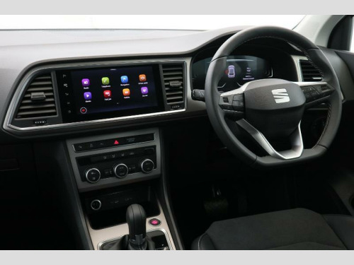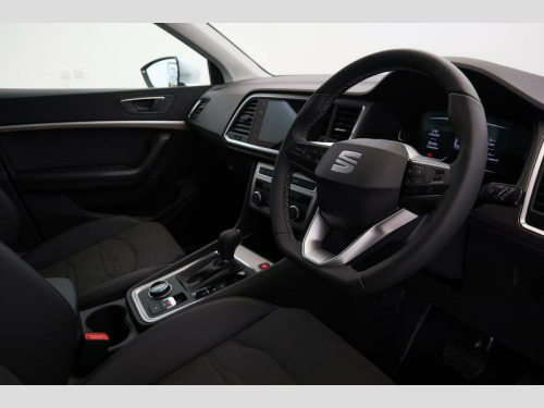 Seat Ateca 1.5 TSI EVO Xperience 5dr DSG 8" Digital cockpit, Colour multi-function on board computer display, E-call, Electric tailgate, Outside temperature gauge, Progressive power assisted steering, Rear view camera, SEAT drive profile with driving experience button - Normal, Sport, Eco and Individual mode, gearshift, steering and throttle response, Self parking functionality (includes front and rear parking sensors), Start/stop system, Trip computer, wired and wireless full link smartphone integration, Wireless phone charger, Steering wheel mounted audio/phone controls, Black wheel arch surrounds, Body colour bumpers, Chrome front grille frame, Chrome roof rails, Chrome side window trim, Dark tinted rear windows, Daytime running lights, Door mirrors with welcome light silhouette, Dynamic headlight range control with self adjusting whilst driving, Electric adjustable/heated/folding door mirrors, Front and rear electric windows, Front grille hot stamping, Full LED headlamps with lens and LED front fog lamps with cornering function, Heat reflecting windscreen, Illuminated aluminium front door sill, LED 3rd brake light, LED rear tail lights with dynamic indicators, Rear exhaust tailpipe, Rear fog lights, Rear side wing doors, Rear wash/wipe, Reflex silver side mouldings, Variable front intermittent wipers, 12V socket in front, 3 seat bench in 2nd row, 60/40 split folding rear seat, Dinamica upholstery with front comfort seats, Drawer under right front seat, Dual zone climate control, Front and rear head restraints, Front centre armrest, Front seat back storage pockets, Height adjustable driver and passenger seat with lumbar adjustment, ISOFIX points in outer rear seats with top tether anchorage points, Leather sports steering wheel and gear knob, Rear armrest and easy back seat release mechanism from boot, Single front passenger seat, Steering wheel mounted gearshift paddles, Convenience pack - Ateca, Interior lighting pack - Ateca, Navigation system pack with DAB - Ateca, Safety and driving pack (M) - Ateca, Safety and driving pack with attention and drowsiness assist - Ateca, 3x3 point rear seatbelts, ABS, Traction control system (TCS), Electronic stability control (ESC) and Electronic differential lock system (XDS), Airbags - Driver and front passenger airbag with deactivation, front side, two curtain and driver's knee airbags, Electric parking brake with auto hold function, Front and rear seatbelt reminder, Hill hold control, Manual rear child locks, Single tone horn, Tiredness recognition system, Tyre pressure monitoring system, Alarm, Keyless entry, Locking wheel bolts, Remote central locking, Chrome interior detailing, 18" Brillaint silver alloy wheels