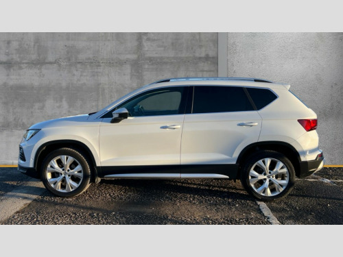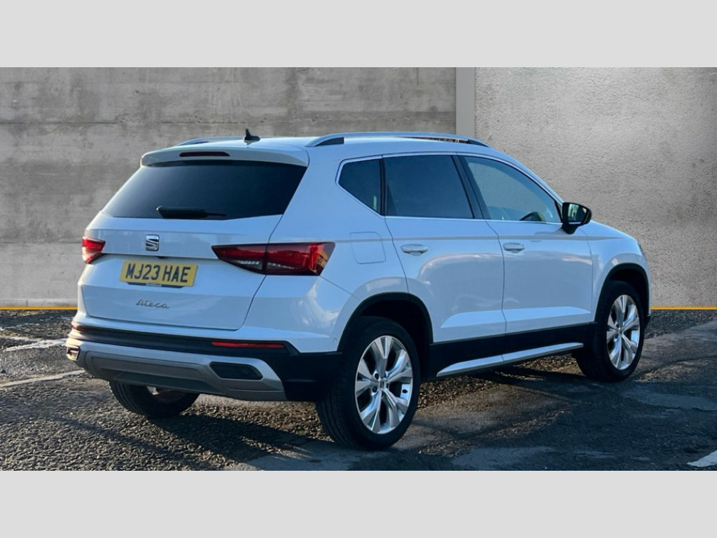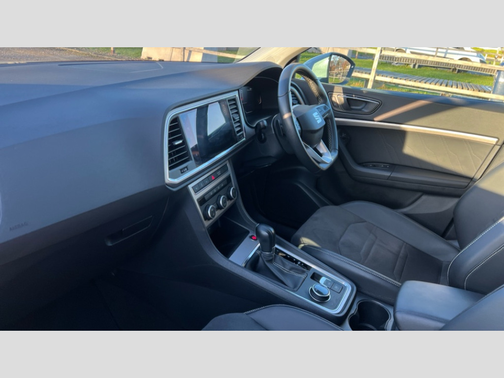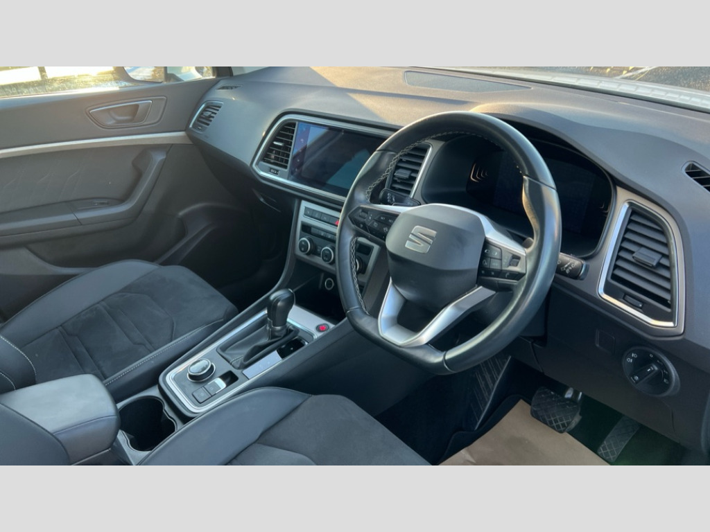 Seat Ateca 1.5 TSI EVO Xperience 5dr DSG 8" Digital cockpit, Colour multi-function on board computer display, E-call, Outside temperature gauge, Progressive power assisted steering, Rear view camera, SEAT drive profile with driving experience button - Normal, Sport, Eco and Individual mode, gearshift, steering and throttle response, Self parking functionality (includes front and rear parking sensors), Start/stop system, Tailgate, Trip computer, Wireless full link smartphone integration, Wireless phone charger, Steering wheel mounted audio/phone controls, Black simulated exhaust pipes, Black wheel arch surrounds, Body colour bumpers, Chrome front grille frame, Chrome roof rails, Chrome side window trim, Dark tinted rear windows, Daytime running lights, Door mirrors with welcome light silhouette, Dynamic headlight range control with self adjusting whilst driving, Electric adjustable/heated/folding door mirrors, Front and rear electric windows, Front grille hot stamping, Full LED headlamps with lens and LED front fog lamps with cornering function, Illuminated aluminium front door sill, LED rear tail lights with dynamic indicators, Rear fog lights, Rear side wing doors, Rear wash/wipe, Reflex silver side mouldings, Roof spoiler, Variable front intermittent wipers, 12V socket in front, 3 seat bench in 2nd row, 60/40 split folding rear seat, Drawer under right front seat, Dual zone climate control, Front and rear head restraints, Front centre armrest, Front seat back storage pockets, Height adjustable driver and passenger seat with lumbar adjustment, ISOFIX points in outer rear seats with top tether anchorage points, Leather steering wheel and gear knob, Microsuede upholstery with front comfort seats, Rear armrest and easy back seat release mechanism from boot, Single front passenger seat, Steering wheel mounted gearshift paddles, Convenience pack - Ateca, Interior lighting pack - Ateca, Navigation system pack with DAB - Ateca, Safe and driving pack with lane assist - Ateca, 3x3 point rear seatbelts, ABS, Traction control system (TCS), Electronic stability control (ESC) and Electronic differential lock system (XDS), Airbags - Driver and front passenger airbag with deactivation, front side, two curtain and driver's knee airbags, Electric parking brake with auto hold function, Front and rear seatbelt reminder, Hill hold control, Manual rear child locks, Single tone horn, Tiredness recognition system, Traction control, Tyre pressure monitoring system, Alarm, Keyless entry, Locking wheel bolts, Remote central locking, Chrome interior detailing, 18" Brillaint silver alloy wheels