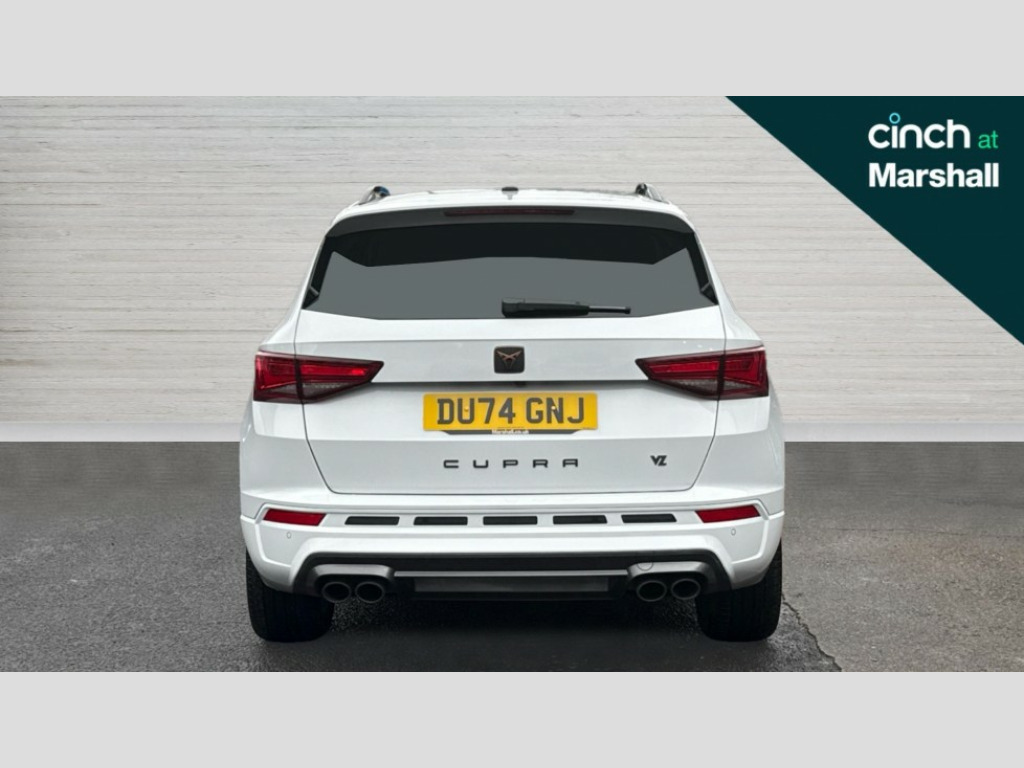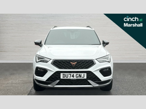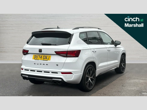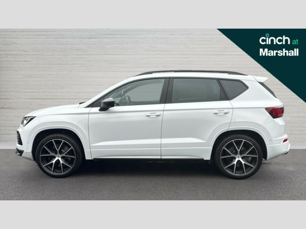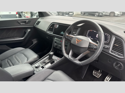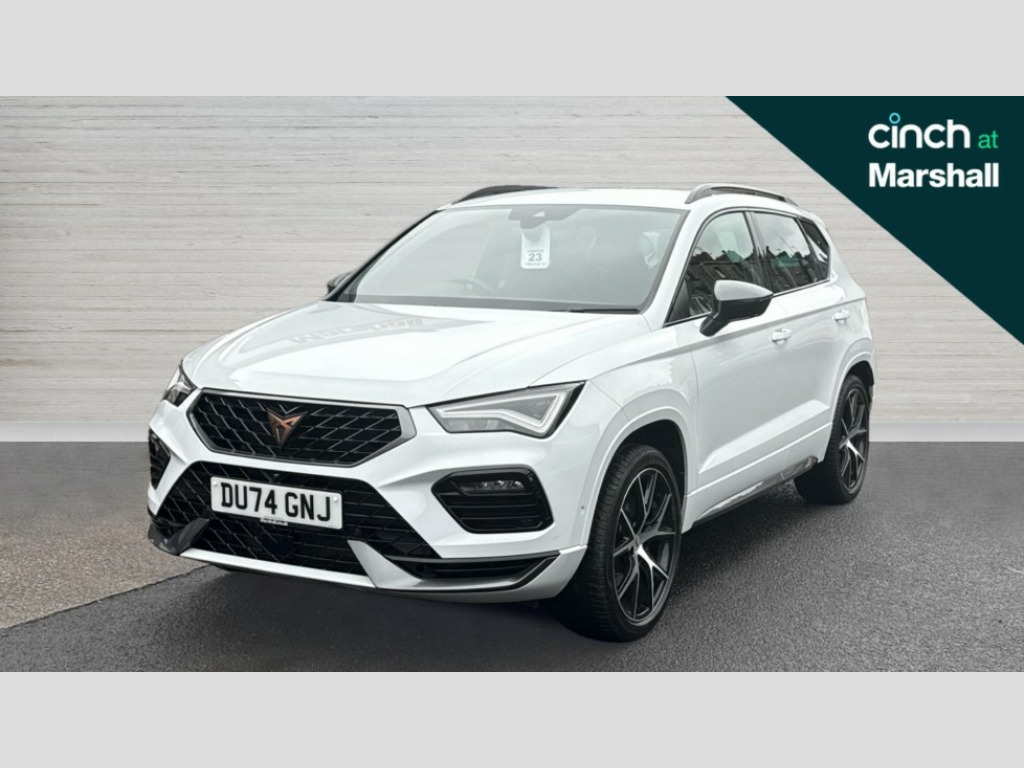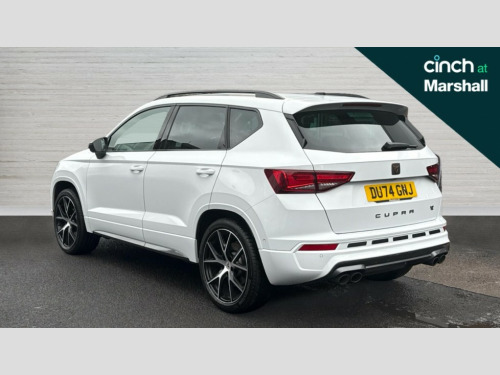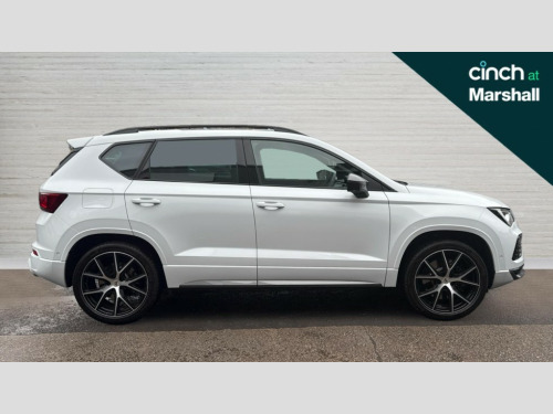 Cupra Ateca 2.0 TSI VZ2 5dr DSG 4Drive CUPRA drive profile - Normal, sport, CUPRA and individual modes and Hydraulic damper control (DCC), Digital cockpit, E-call, Electric tailgate with virtual pedal, Front and rear view camera, Outside temperature gauge, Progressive power assisted steering, Self parking functionality (includes front and rear parking sensors), Top view camera, Trip computer, Wireless full link smartphone integration, Wireless phone charger, CUPRA sport suspension, Steering wheel mounted audio/phone controls, Body colour bumpers with dark aluminium diffusor, Body coloured wheel arch surrounds, Dark tinted rear windows, Daytime running lights, Door mirrors with welcome CUPRA light silhouette, Dynamic headlight range control with self adjusting whilst driving, Electric adjustable/heated/folding door mirrors, Front and rear electric windows, Front grille frame in chrome, Full LED headlamps with lens and LED front fog lamps with cornering function, Gloss black door mirrors, Gloss black roof rails, Gloss black side mouldings, Gloss black side window trim, Illuminated aluminium front door sill, LED rear tail lights with dynamic indicators, Rear fog lights, Rear side wing doors, Rear spoiler, Rear wash/wipe, Specific CUPRA design front bumper, Third brake light, Visible twin black exhaust pipes in both sides with dark aluminium diffuser, 12v socket in front, 3 seat bench in 2nd row, 60/40 split folding rear seat, Aluminium pedals, Black roof lining, Cupra steering wheel emblem, Dual zone climate control, Electric driver seat with memory function, Front and rear head restraints, Front centre armrest, Front seat back storage pockets, Heated front seats, Heated steering wheel, Height adjustable driver and passenger seat with lumbar adjustment, ISOFIX points in outer rear seats with top tether anchorage points, Leather sport bucket seats, Leather steering wheel and gear knob, Multicoloured ambient lighting with LED interior illumination, Pedal cluster, Rear armrest and easy back seat release mechanism from boot, Single front passenger seat, Sports steering wheel, Steering wheel mounted gearshift paddles, Storage compartment in roof console for sunglass, Storage compartment under driver's seat, Convenience pack - Ateca, Interior lighting pack - Ateca, Navigation system plus pack with DAB - Ateca, Safe and driving pack with High beam control - Ateca, 3x3 point rear seatbelts, ABS, Traction control system (TCS), Electronic stability control (ESC) and Electronic differential lock system (XDS), Airbags - Driver and front passenger airbag with deactivation, front side, two curtain and driver's knee airbags, Attention and drowsiness assist, Black brake callipers with CUPRA logo, Electric parking brake with auto hold function, Front and rear seatbelt reminder, Front assist with autonomous emergency braking, Hill hold control, Manual rear child locks, Single tone horn, Tiredness recognition system, Tyre pressure monitoring system, Tyre pressure warning light, Alarm, Keyless entry, Locking wheel bolts