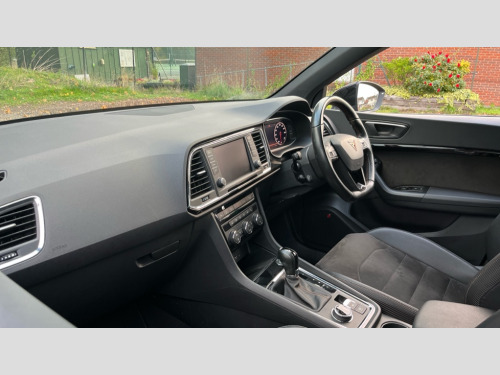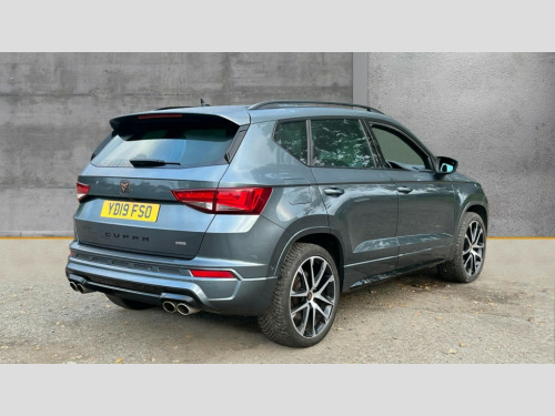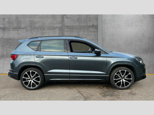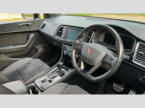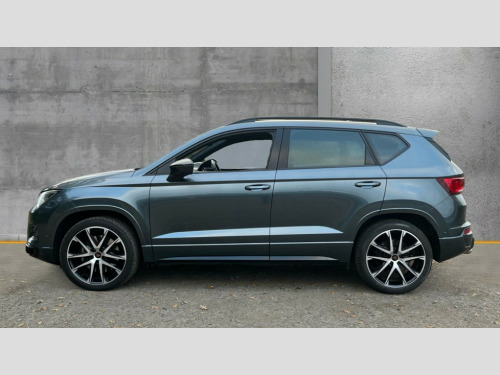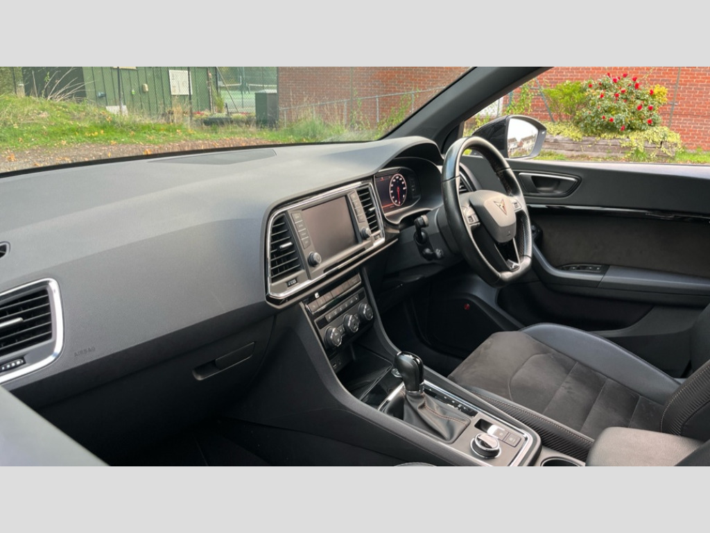 Seat Cupra Ateca 2.0 TSI 5dr DSG 4Drive 'Lights On' Reminder warning buzzer, 8.0" colour touchscreen with proximity sensor, Cruise control, Digital clock, Digital cockpit, Front assist city emergency braking and pedestrian protection, Full Link Smartphone Integration with Mirror Link, Apple Car Play, Google Android Auto, Low fuel warning light, Navigation system (incl. media system plus) - Dynamic route guidance feature with 3D Map display and 3D emblematic buildings, Outside temperature gauge, Park assist system with steering assist, Progressive power assisted steering, Rear view camera, RPM counter, SEAT Drive profile CUPRA, Self parking functionality (includes front and rear parking sensors), Top view camera, Trip computer, Wireless Smartphone charger, CUPRA sport suspension, XDS electronic differential lock, 10 GB hard disk, 2 additional USB ports in rear with storage net, 2 USB ports, 2x SD card slot, 8 Speakers, AM/FM radio, Aux-in socket, CD player, DAB digital audio broadcast, High resolution colour driver display, SEAT USB media cable, Steering wheel mounted audio/phone controls, Armrest with air outlet in rear, Automatic headlight adjustment, Black roof rails, Body colour door mirrors and handles, Body coloured wheel arch extensions, Dark tinted rear windows, Door mirrors with welcome CUPRA light silhouette, Electric adjustable/heated/folding door mirrors, Front and rear electric windows, Full LED headlights, Gloss black side window surrounds, High gloss black grille, Illuminated aluminium front door sill with CUPRA logo, LED daytime running lights, LED tail lights, Rear fog lights, Rear spoiler, Rear wash/wipe, Visible dual exhaust pipes, 12V power point front, 60/40 split folding rear seat, Adjustable front armrest with storage compartment, Advanced multicolour ambient light with LED interior light and LED illuminated glovebox, Alcantara upholstery + sports seats, Aluminium pedals, Ambient spot lighting and front footwell illumination, Black roof lining, Child seat ISOFIX attachment with rear outer seats includes top tether, Chrome dashboard detailing, Driver and passenger sun visor, covered and illuminated mirror, driver sun visor with card holder, Dual zone climate control, Four cargo rings in the boot, Front courtesy reading lights, Front cupholders, Front seat back storage pockets, Gear shift indicator, Height adjustable driver's seat, Height adjustable front headrests, Height adjustable passenger seat, Illuminated boot, Instrument lighting with brightness control, Rear armrest and easy back seat release mechanism from boot, Rear reading lights, Sports leather steering wheel + gearshift, Steering wheel gearshift paddles, Storage box under drivers seat, Convenience pack - Ateca, ABS, Active front headrests, Black brake callipers with CUPRA logo, Driver/Front Passenger airbags, Drivers knee airbag, Electronic parking brake with auto hold, Electronic stability control, Front and rear seatbelt reminder, Front passenger airbag deactivation, Front side airbags, Hill hold control, Tiredness recognition system, Traction control, Twin curtain airbags, Tyre pressure monitoring system, Central locking fuel filler cap, Keyless entry and go, Locking wheel bolts, Perimeter alarm with interior monitoring, Power locking and remote control with two foldable keys and opening boot selector, 19" Exclusive diamond cut alloy wheel