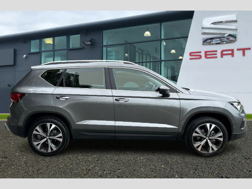8" Digital cockpit, Colour multi-function on board computer display, Cruise control system with speed limiter, E-call, Outside temperature gauge, PAS, SEAT drive profile with driving experience button - Normal, Sport, Eco and Individual mode, gearshift, steering and throttle response, Self parking functionality (includes front and rear parking sensors), Start/stop system, Tailgate, Trip computer, wired and wireless full link smartphone integration, Wireless phone charger, Steering wheel mounted audio/phone controls, Black wheel arch surrounds, Body colour bumpers, Chrome front grille frame, Chrome roof rails, Chrome side window trim, Daytime running lights, Door mirrors with welcome light silhouette, Dynamic headlight range control with self adjusting whilst driving, Electric adjustable/heated/folding door mirrors, Front and rear electric windows, Full LED headlamps with lens and LED front fog lamps with cornering function, LED 3rd brake light, LED rear tail lights, Rear exhaust tailpipe, Rear fog lights, Rear side wing doors, Rear wash/wipe, Variable front intermittent wipers, 12v socket in front, 3 seat bench in 2nd row, 60/40 split folding rear seat, Cloth upholstery with front comfort seats, Drawer under right front seat, Dual zone climate control, Front and rear head restraints, Front centre armrest, Front seat back storage pockets, Height adjustable driver and passenger seat with lumbar adjustment, ISOFIX points in outer rear seats with top tether anchorage points, Leather sports steering wheel and gear knob, Rear armrest and easy back seat release mechanism from boot, Single front passenger seat, Steering wheel mounted gearshift paddles, Convenience pack - Ateca, Interior lighting pack - Ateca, Navigation system pack with DAB - Ateca, Safety and driving pack with attention and drowsiness assist - Ateca, 3x3 point rear seatbelts, ABS, Traction control system (TCS), Electronic stability control (ESC) and Electronic differential lock system (XDS), Airbags - Driver and front passenger airbag with deactivation, front side, two curtain and driver's knee airbags, Electric parking brake with auto hold function, Front and rear seatbelt reminder, Front assist with autonomous emergency braking, Hill hold control, Manual rear child locks, Single tone horn, Tiredness recognition system, Tyre pressure monitoring system, Alarm, Keyless entry, Locking wheel bolts, Remote central locking, Chrome interior detailing, 18" Performance machined alloy wheels 36/2 in nuclear grey