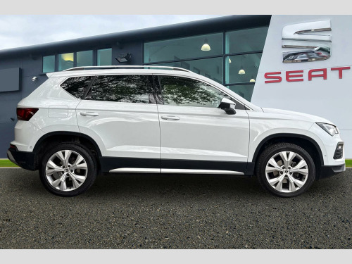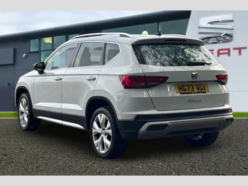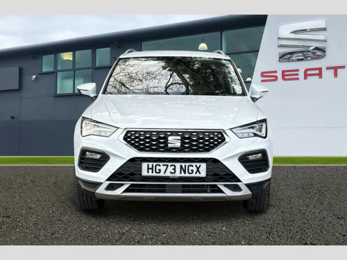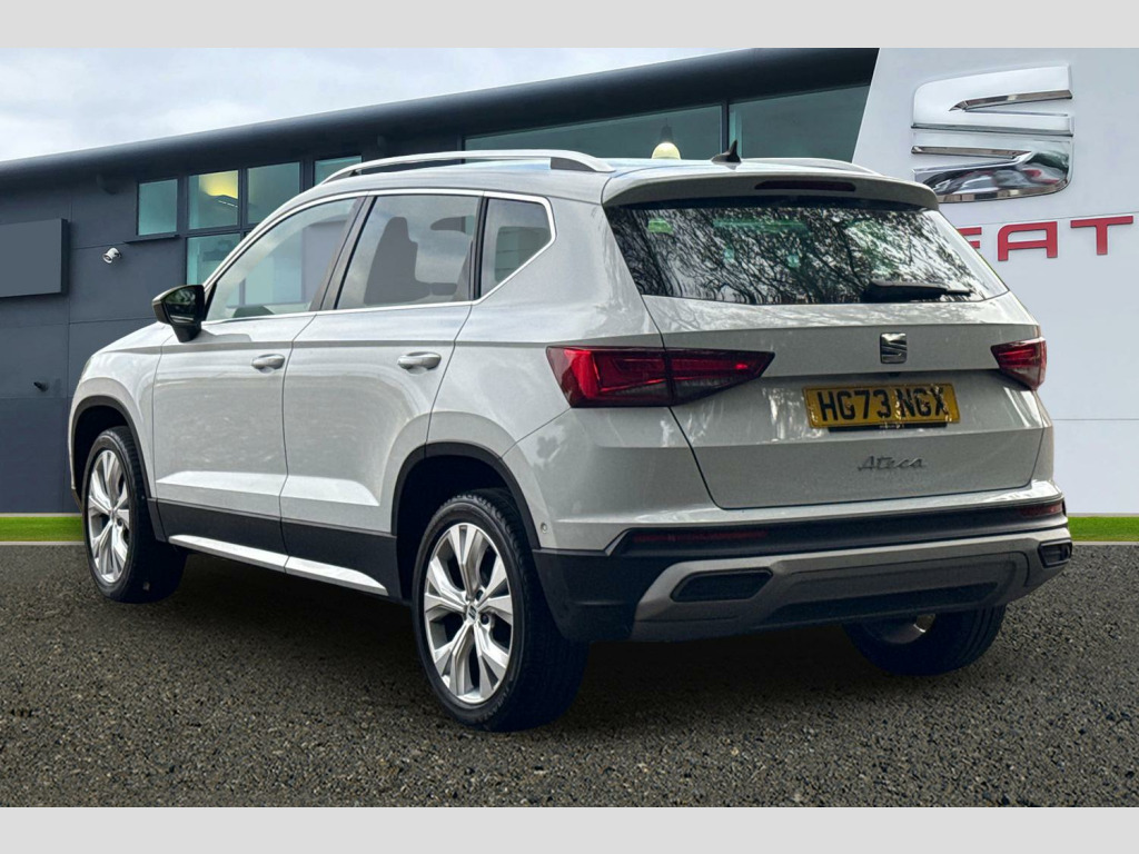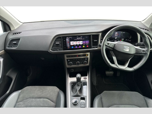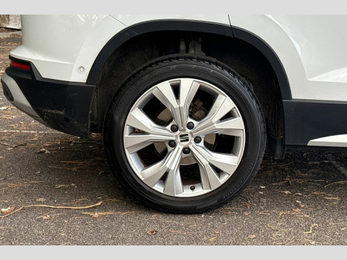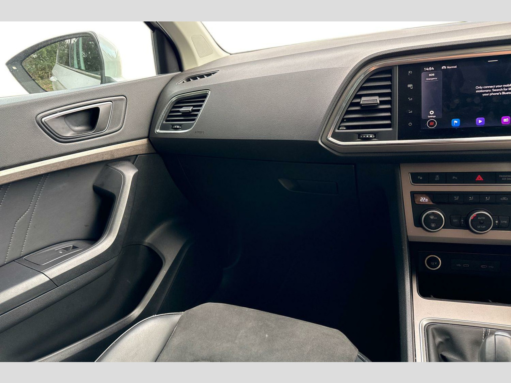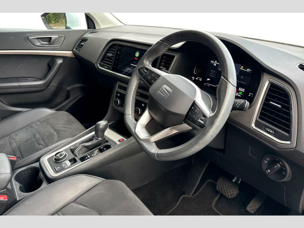 8" Digital cockpit, Colour multi-function on board computer display, E-call, Outside temperature gauge, Progressive power assisted steering, Rear view camera, SEAT drive profile with driving experience button - Normal, Sport, Eco and Individual mode, gearshift, steering and throttle response, Self parking functionality (includes front and rear parking sensors), Start/stop system, Tailgate, Trip computer, Wireless full link smartphone integration, Wireless phone charger, Steering wheel mounted audio/phone controls, Black simulated exhaust pipes, Black wheel arch surrounds, Body colour bumpers, Chrome front grille frame, Chrome roof rails, Chrome side window trim, Dark tinted rear windows, Daytime running lights, Door mirrors with welcome light silhouette, Dynamic headlight range control with self adjusting whilst driving, Electric adjustable/heated/folding door mirrors, Front and rear electric windows, Front grille hot stamping, Full LED headlamps with lens and LED front fog lamps with cornering function, Illuminated aluminium front door sill, LED rear tail lights with dynamic indicators, Rear fog lights, Rear side wing doors, Rear wash/wipe, Reflex silver side mouldings, Variable front intermittent wipers, 12v socket in front, 3 seat bench in 2nd row, 60/40 split folding rear seat, Drawer under right front seat, Dual zone climate control, Front and rear head restraints, Front centre armrest, Front seat back storage pockets, Height adjustable driver and passenger seat with lumbar adjustment, ISOFIX points in outer rear seats with top tether anchorage points, Leather steering wheel and gear knob, Microsuede upholstery with front comfort seats, Rear armrest and easy back seat release mechanism from boot, Single front passenger seat, Steering wheel mounted gearshift paddles, Convenience pack - Ateca, Interior lighting pack - Ateca, Navigation system pack with DAB - Ateca, Safe and driving pack with lane assist - Ateca, 3x3 point rear seatbelts, ABS, Traction control system (TCS), Electronic stability control (ESC) and Electronic differential lock system (XDS), Airbags - Driver and front passenger airbag with deactivation, front side, two curtain and driver's knee airbags, Electric parking brake with auto hold function, Front and rear seatbelt reminder, Hill hold control, Manual rear child locks, Single tone horn, Tiredness recognition system, Traction control, Tyre pressure monitoring system, Alarm, Keyless entry, Locking wheel bolts, Remote central locking, Chrome interior detailing, 18" Brillaint silver alloy wheels
