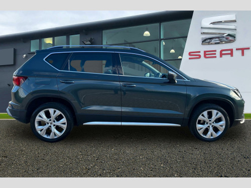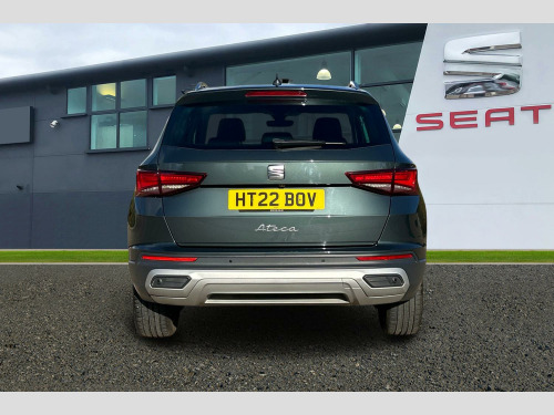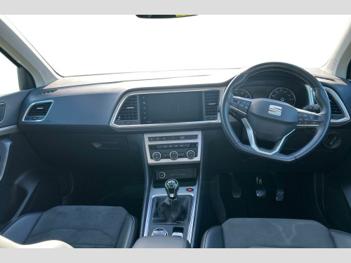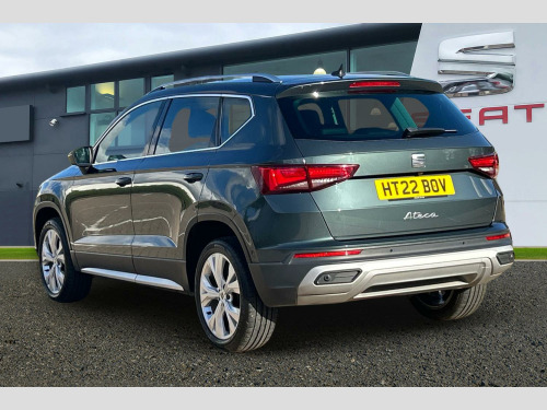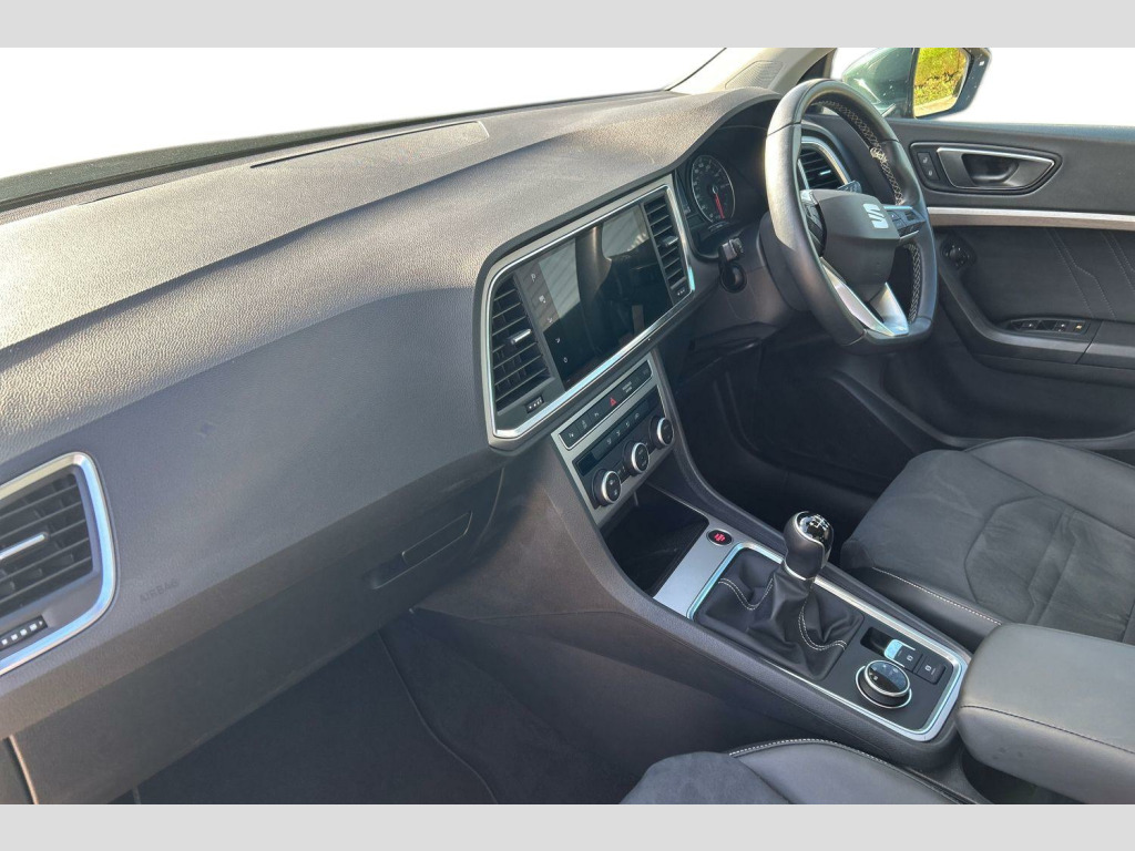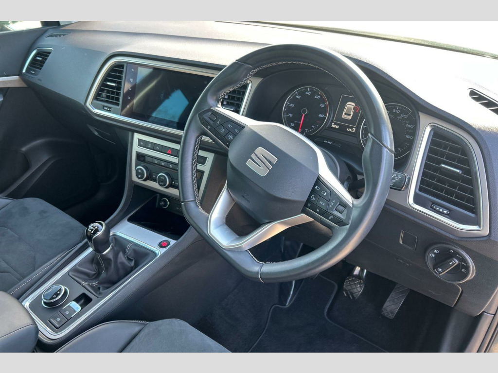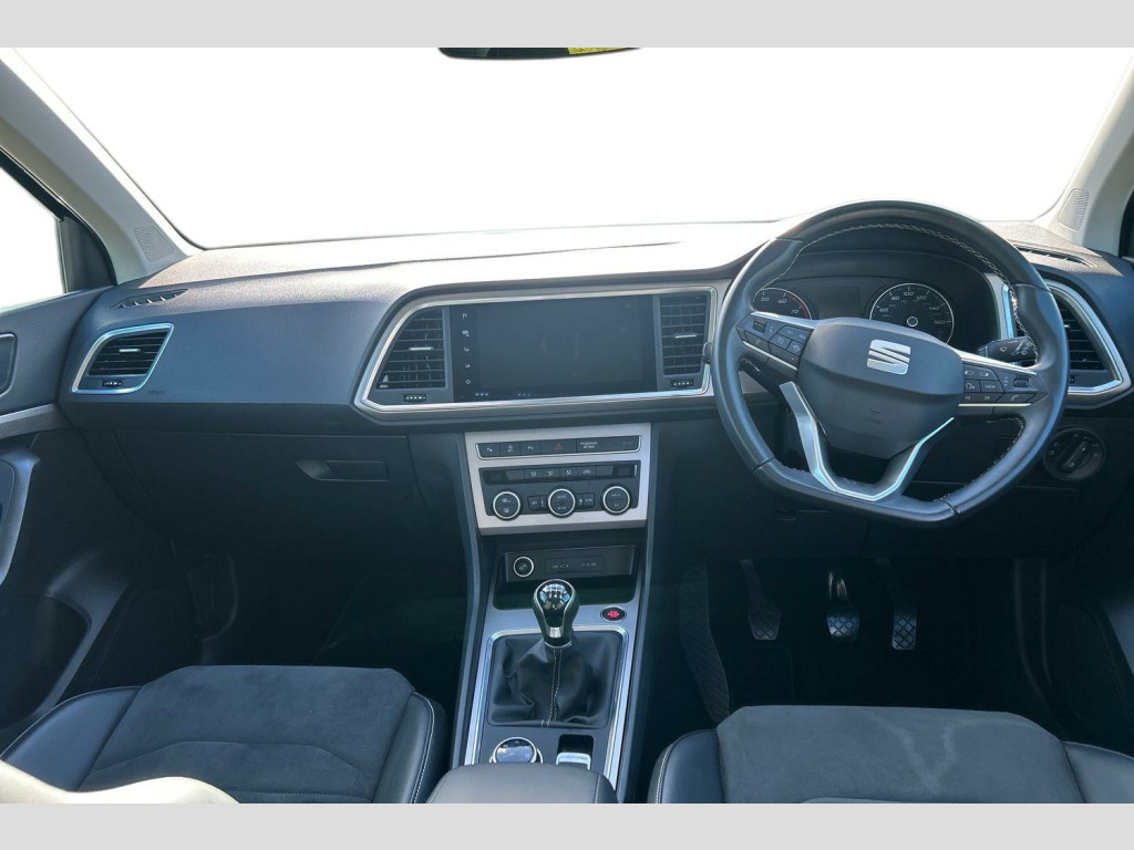 Colour multi-function on board computer display, E-call, Outside temperature gauge, Progressive power assisted steering, Rear view camera, SEAT drive profile with driving experience button - Normal, Sport, Eco and Individual mode, steering and throttle response, Self parking functionality (includes front and rear parking sensors), Trip computer, Wireless full link smartphone integration, Wireless phone charger, Steering wheel mounted audio/phone controls, Black simulated exhaust pipes, Black wheel arch surrounds, Body colour bumpers, Chrome front grille frame, Chrome roof rails, Chrome side window trim, Dark tinted rear windows, Daytime running lights, Door mirrors with welcome light silhouette, Dynamic headlight range control with self adjusting whilst driving, Electric adjustable/heated/folding door mirrors, Front and rear electric windows, Front grille hot stamping, Full LED headlamps with lens and LED front fog lamps with cornering function, Illuminated aluminium front door sill, LED rear tail lights with dynamic indicators, Rear fog lights, Rear side wing doors, Rear wash/wipe, Reflex silver side mouldings, 12v socket in front, 3 seat bench in 2nd row, 60/40 split folding rear seat, Dual zone climate control, Front and rear head restraints, Front centre armrest, Front seat back storage pockets, Height adjustable driver and passenger seat with lumbar adjustment, ISOFIX points in outer rear seats with top tether anchorage points, Leather steering wheel and gear knob, Microsuede upholstery with front comfort seats, Rear armrest and easy back seat release mechanism from boot, Single front passenger seat, Storage compartment under driver's seat, Convenience pack - Ateca, Interior lighting pack - Ateca, Navigation system pack with DAB - Ateca, Safe and driving pack with lane assist - Ateca, 3x3 point rear seatbelts, ABS, Traction control system (TCS), Electronic stability control (ESC) and Electronic differential lock system (XDS), Airbags - Driver and front passenger airbag with deactivation, front side, two curtain and driver's knee airbags, Electric parking brake with auto hold function, Front and rear seatbelt reminder, Hill hold control, Manual rear child locks, Tiredness recognition system, Traction control, Tyre pressure monitoring system, Alarm, Keyless entry, Locking wheel bolts, Chrome interior detailing, 18" Brillaint silver alloy wheels