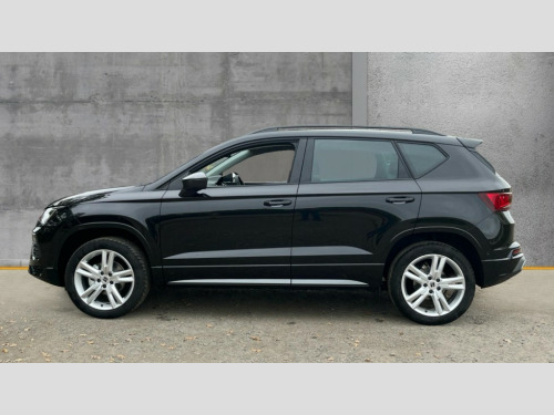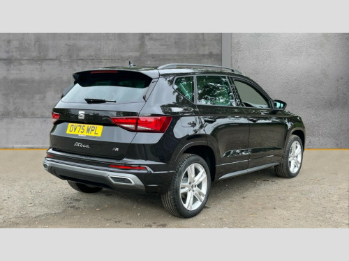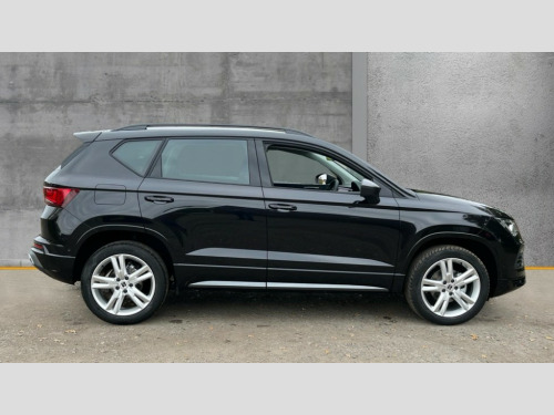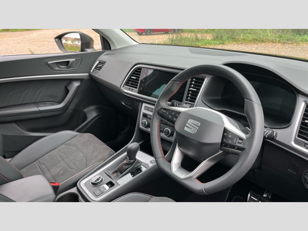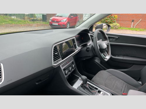 Seat Ateca 1.5 TSI EVO FR Line 5dr DSG 8" Digital cockpit, Bluetooth audio streaming with handsfree system, Cruise control system with speed limiter, E-call, Electric tailgate with virtual pedal, Outside temperature gauge, Progressive power assisted steering, Rear view camera, SEAT drive profile with driving experience button - Normal, Sport, Eco and Individual mode, gearshift, steering and throttle response, Self parking functionality (includes front and rear parking sensors), Start/stop system, Trip computer, wired and wireless full link smartphone integration, Wireless phone charger, Steering wheel mounted audio/phone controls, Black roof rails, Black side window trim, Body colour bumpers, Body coloured wheel arch surrounds, Chrome front grille frame, Dark tinted rear windows, Daytime running lights, Door mirrors with welcome light silhouette, Dynamic headlight range control with self adjusting whilst driving, Electric adjustable/heated/folding door mirrors, Front and rear electric windows, Illuminated aluminium front door sill, LED 3rd brake light, LED headlamps with lens and LED front fog lamps with cornering function, LED rear tail lights with dynamic indicators, Rear exhaust tailpipe, Rear fog lights, Rear side wing doors, Rear spoiler, Rear wash/wipe, Variable front intermittent wipers, 12v socket in front, 3 seat bench in 2nd row, 60/40 split folding rear seat, Aluminium pedals, Dinamica upholstery with front comfort seats, Drawer under right front seat, Dual zone climate control, Front and rear head restraints, Front centre armrest, Front seat back storage pockets, Height adjustable driver and passenger seat with lumbar adjustment, ISOFIX points in outer rear seats with top tether anchorage points, Leather sports steering wheel and gear knob, Rear armrest and easy back seat release mechanism from boot, Single front passenger seat, Steering wheel mounted gearshift paddles, Convenience pack - Ateca, Interior lighting pack - Ateca, Navigation system pack with DAB - Ateca, Safety and driving pack with attention and drowsiness assist - Ateca, 3x3 point rear seatbelts, ABS, Traction control system (TCS), Electronic stability control (ESC) and Electronic differential lock system (XDS), Airbags - Driver and front passenger airbag with deactivation, front side, two curtain and driver's knee airbags, Electric parking brake with auto hold function, Front and rear seatbelt reminder, Front assist with autonomous emergency braking, Hill hold control, Manual rear child locks, Single tone horn, Tyre pressure monitoring system, Alarm, Keyless entry, Locking wheel bolts, Remote central locking, Chrome interior detailing, 18" Brillaint silver alloy wheels, Tool kit