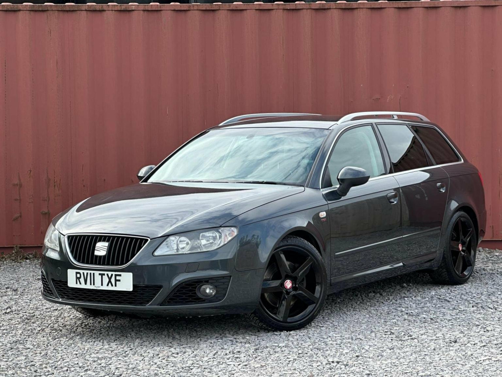 Specialist Cars are delighted to offer this well cared for Seat Exeo 2.0 CR TDI Sport Tech Sport Tourer 5dr. This lovely Exeo is finished in Track Grey Metallic with a complimenting Black Leather Interior in fantastic condition. Our Exeo is a genuine 1 owner car and is backed by a great service history, we have Seat Main Dealer servicing from 18,792 Miles to 78,524 Miles, of which there were 4 and after that there are 5 independent services up to 123,819 Miles. We will also have this Exeo serviced and replace the timing belt for total peace of mind. Being the Sport Tech model, this Exeo comes very well equipped as standard, its spec includes Satellite Navigation, BOSE Surround Sound, Rear Parking Sensors, Factory Rear Privacy Glass, Cruise Control, Multi-function Leather Steering Wheel, Auto Lights, Piano Black Dash Trim, Heated Black Leather Front Seats, Electric Heated and Electrically Folding Door Mirrors and Much More. To give this Exeo a little bit of a lift, we have had the 18†Sport Alloys Powder Coated in Gloss Black, which against the Track Grey paintwork, do really gives this estate car a bit more attitude and presence, it certainly stands out from the crowd. This Exeo is true testament to its sole owner who has been a great custodian to this car during his ownership, its 2.0 TDI 170 engine is punchy, gearbox is smooth and clutch bites well, it is in very good mechanical condition as well as aesthetically.